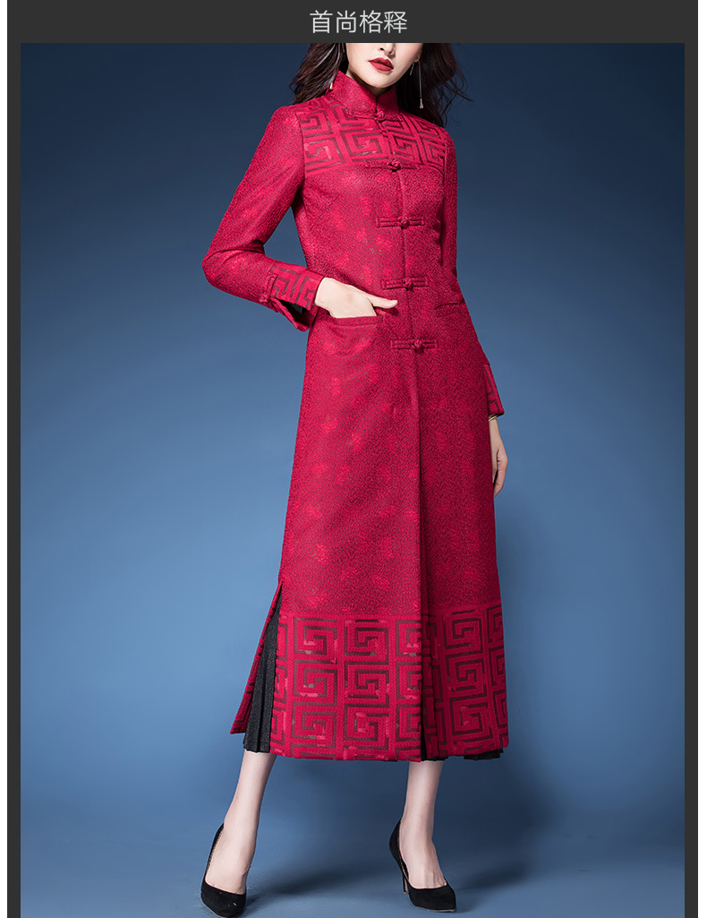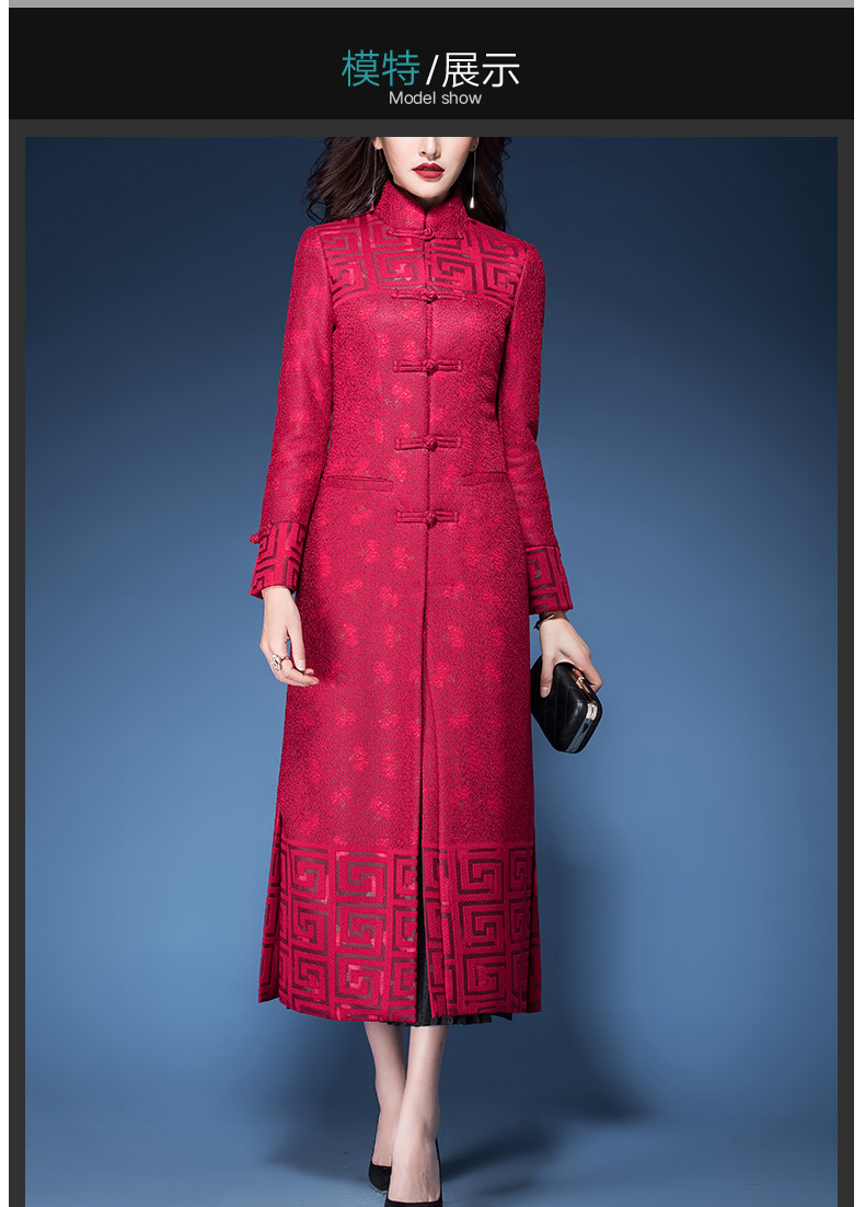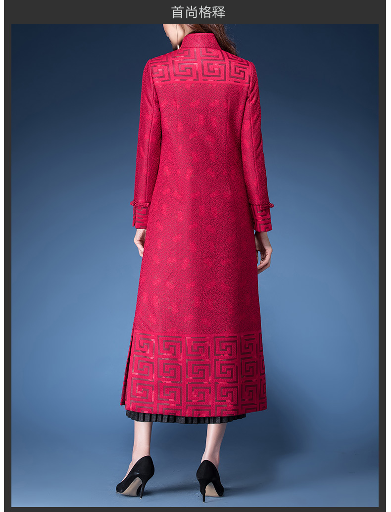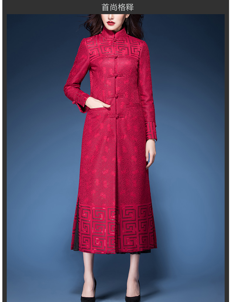 SSGS-MF081新款中国风优雅气质修身立领盘扣长袖中长款加厚外套