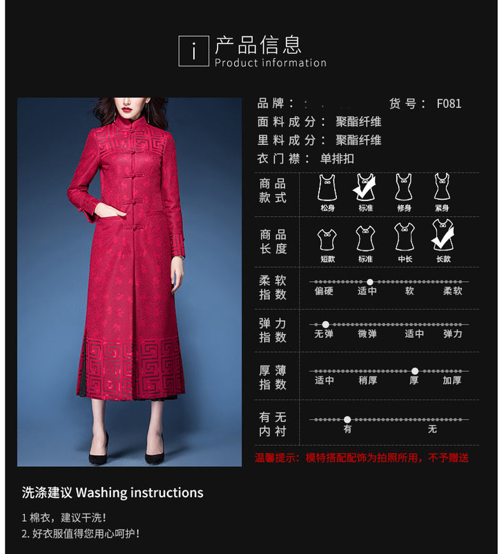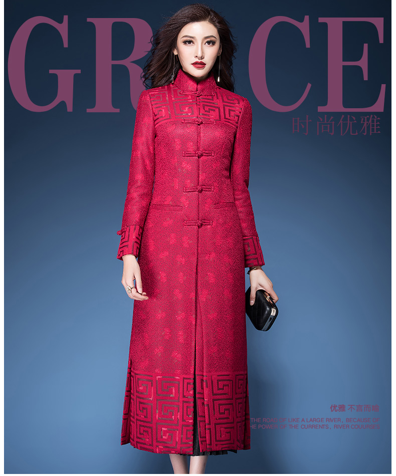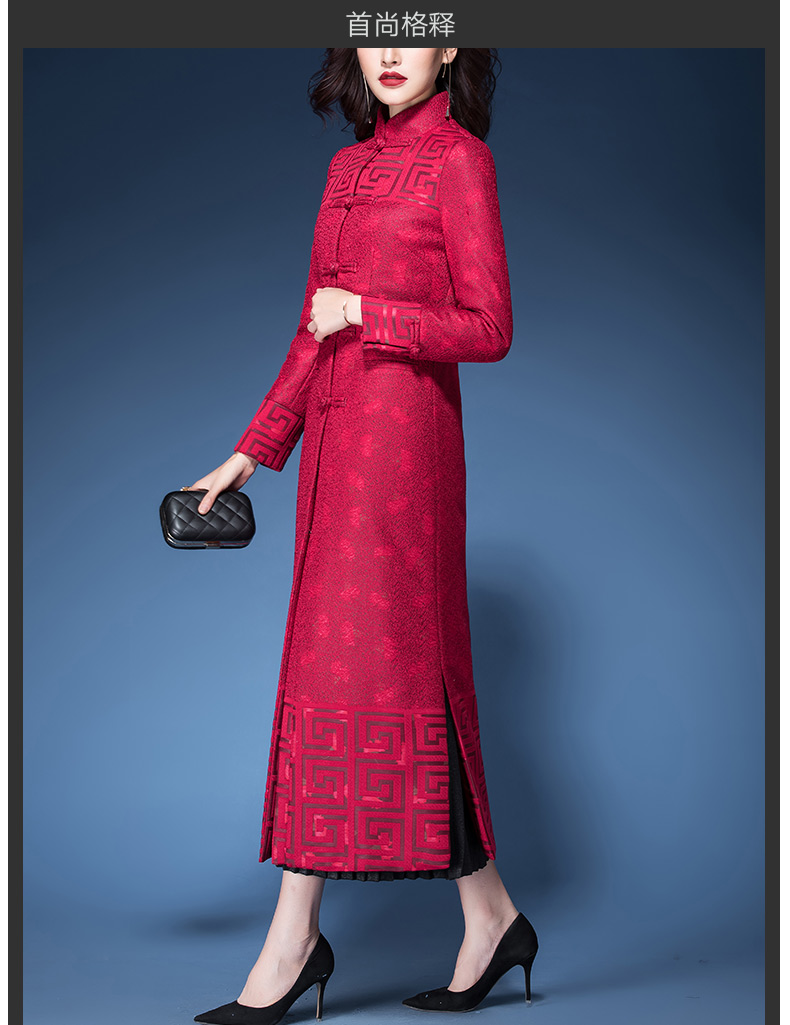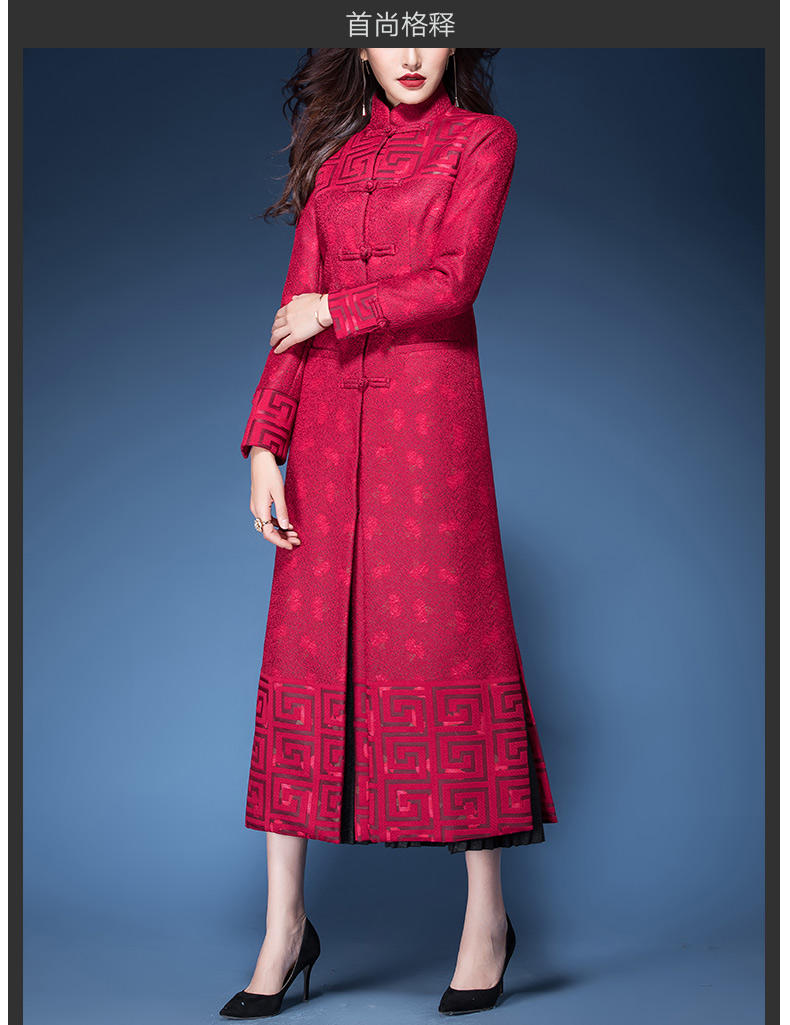 SSGS-MF081新款中国风优雅气质修身立领盘扣长袖中长款加厚外套