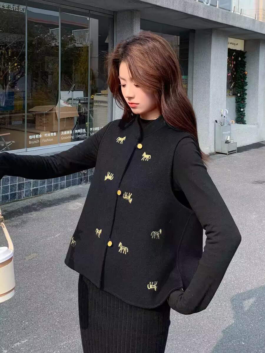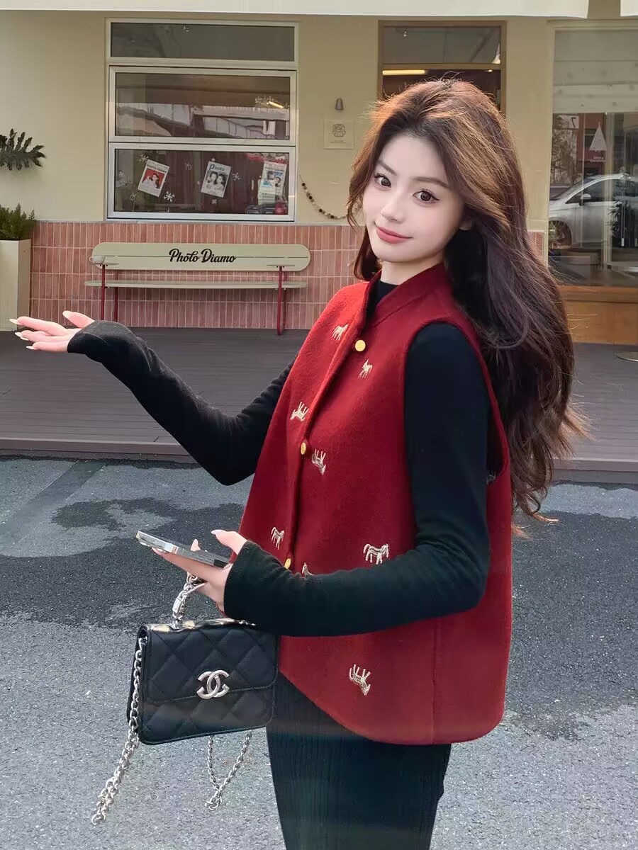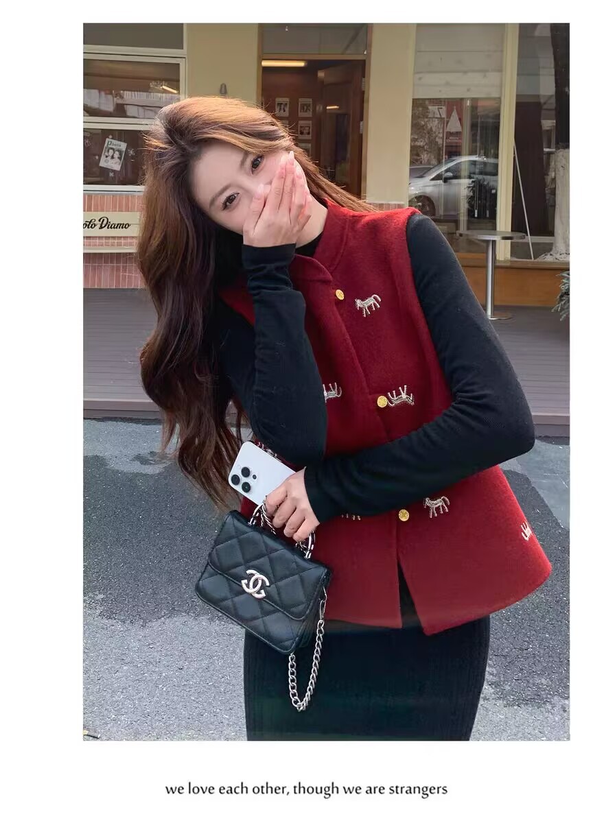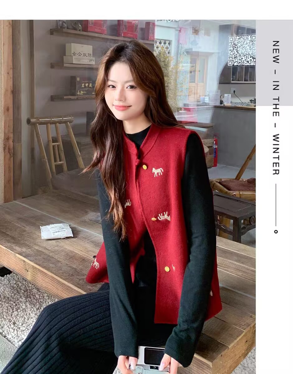 丁摩 本命年新年红马到成功马甲短外套女早春新中式国风穿搭马夹潮5ZF-005