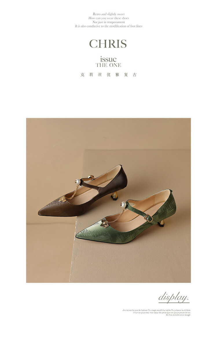 【预售7天】新中式国风尖头单鞋丝绸牛皮气质高跟鞋NDXC&6659