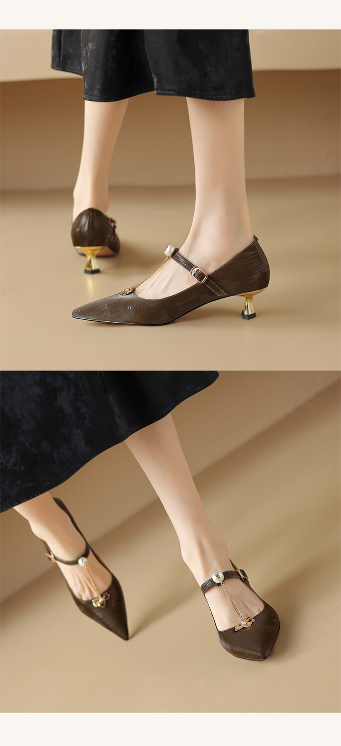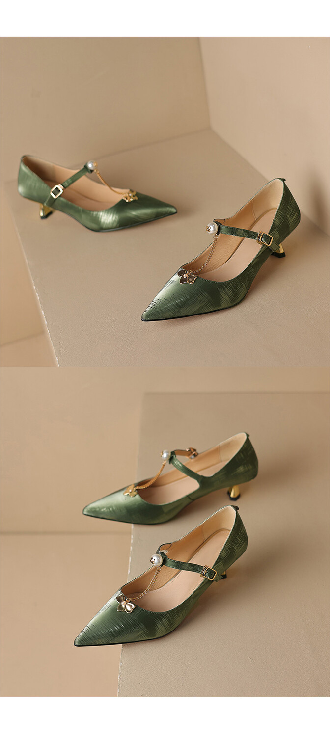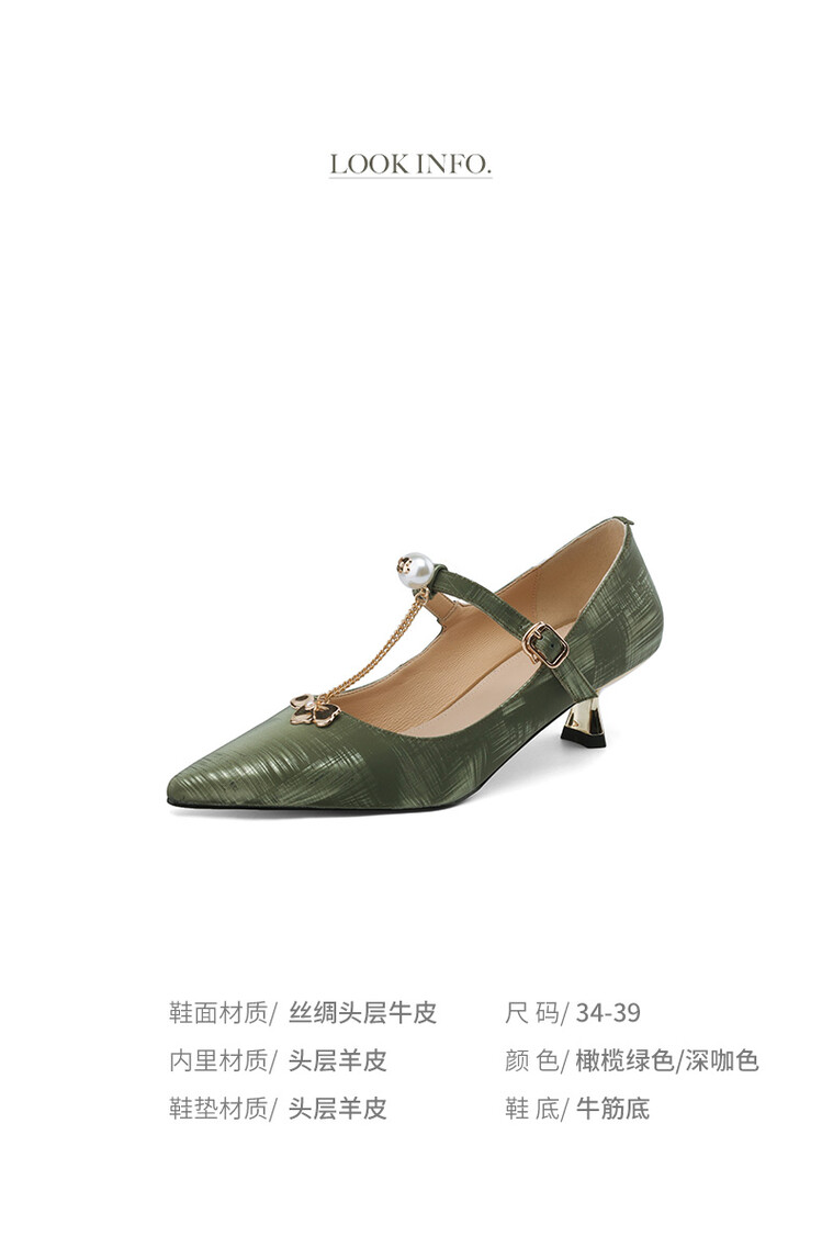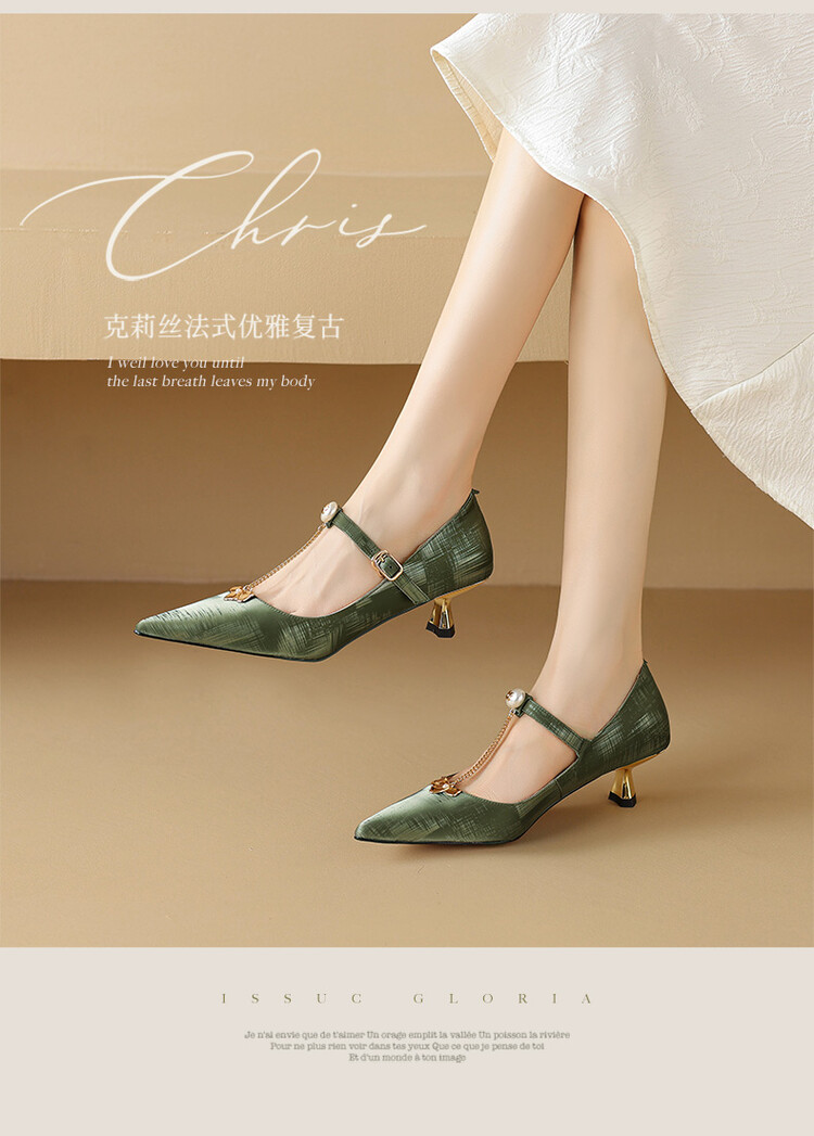 【预售5天】丝绸羊皮!秋季新款法式玛丽珍尖头一字带细跟高跟鞋女DB&M6516