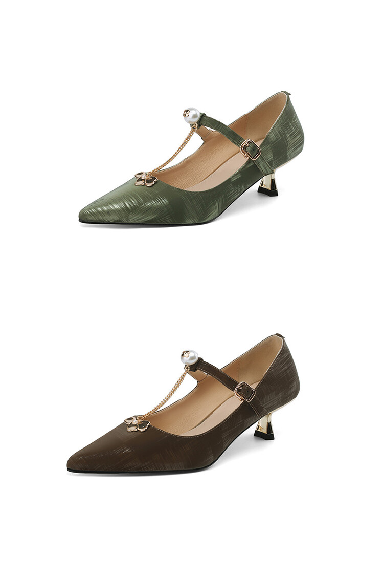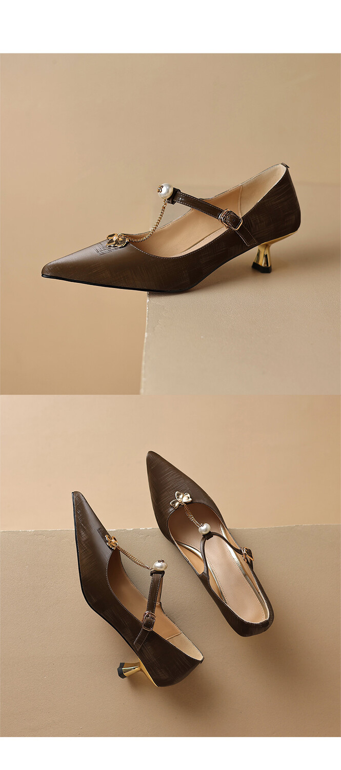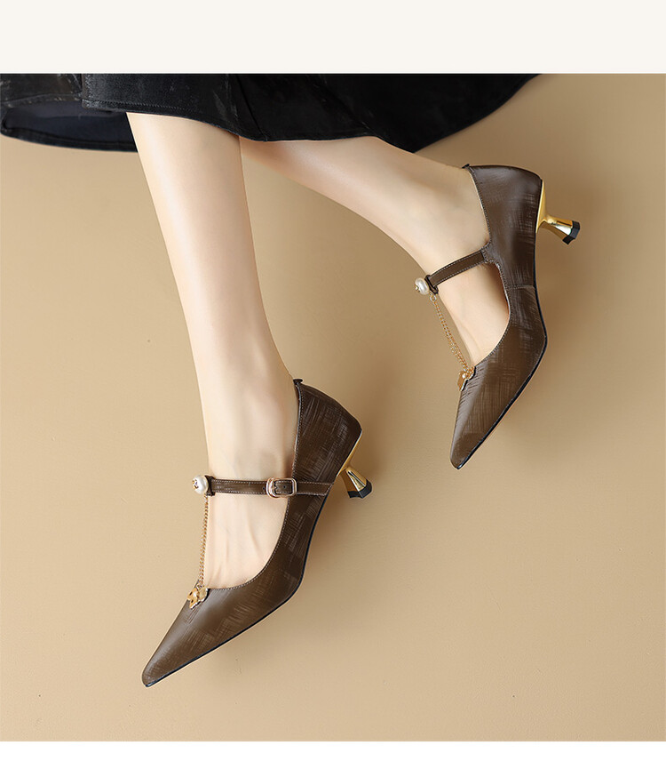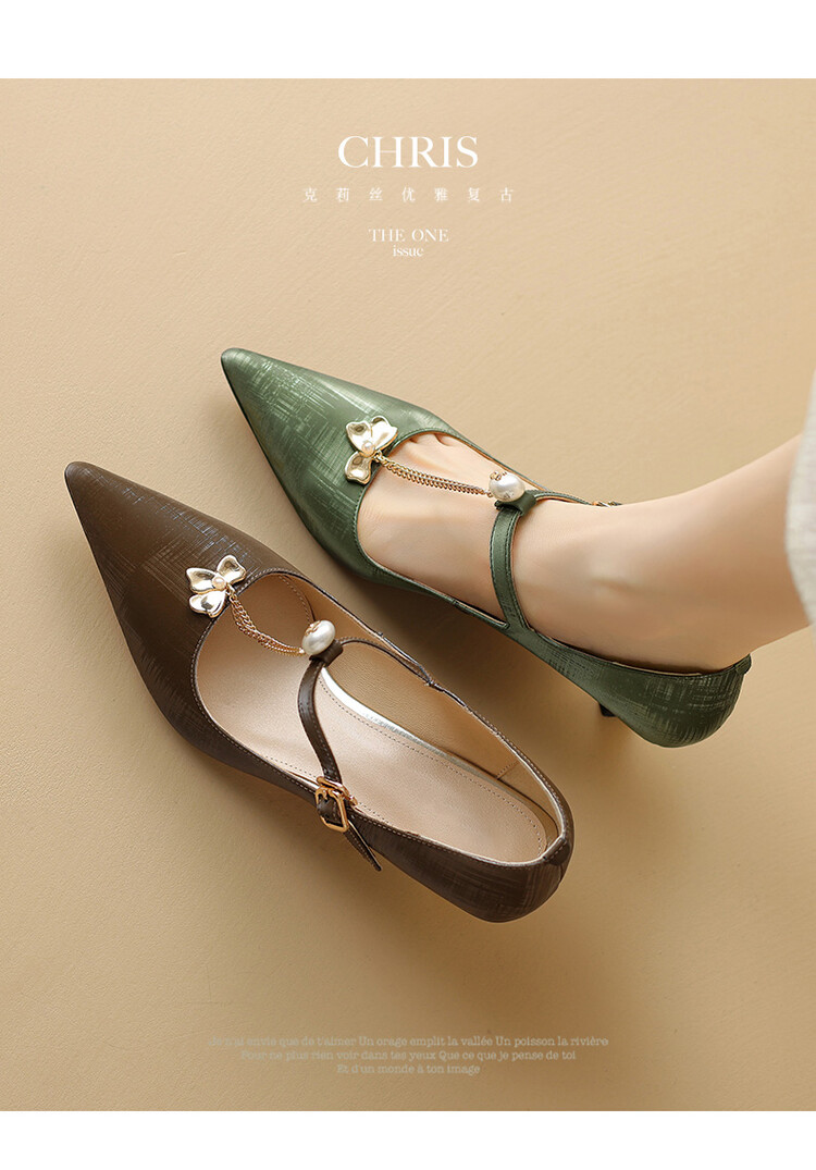 【预售5天】丝绸羊皮!秋季新款法式玛丽珍尖头一字带细跟高跟鞋女DB&M6516