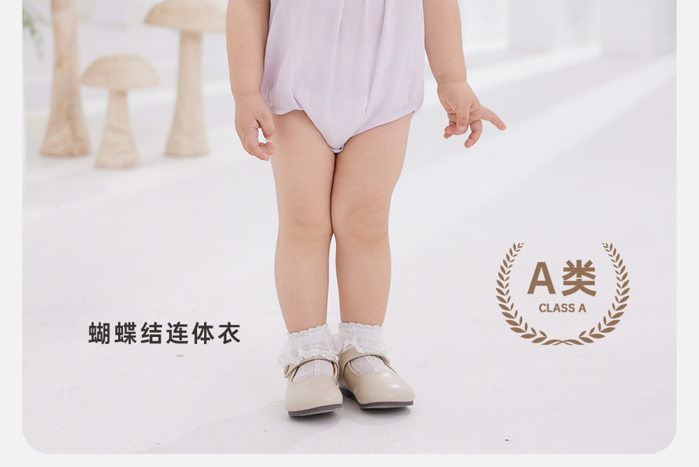 英氏婴儿衣服女宝宝纯棉哈衣短袖蝴蝶结连体衣夏季薄款包屁衣