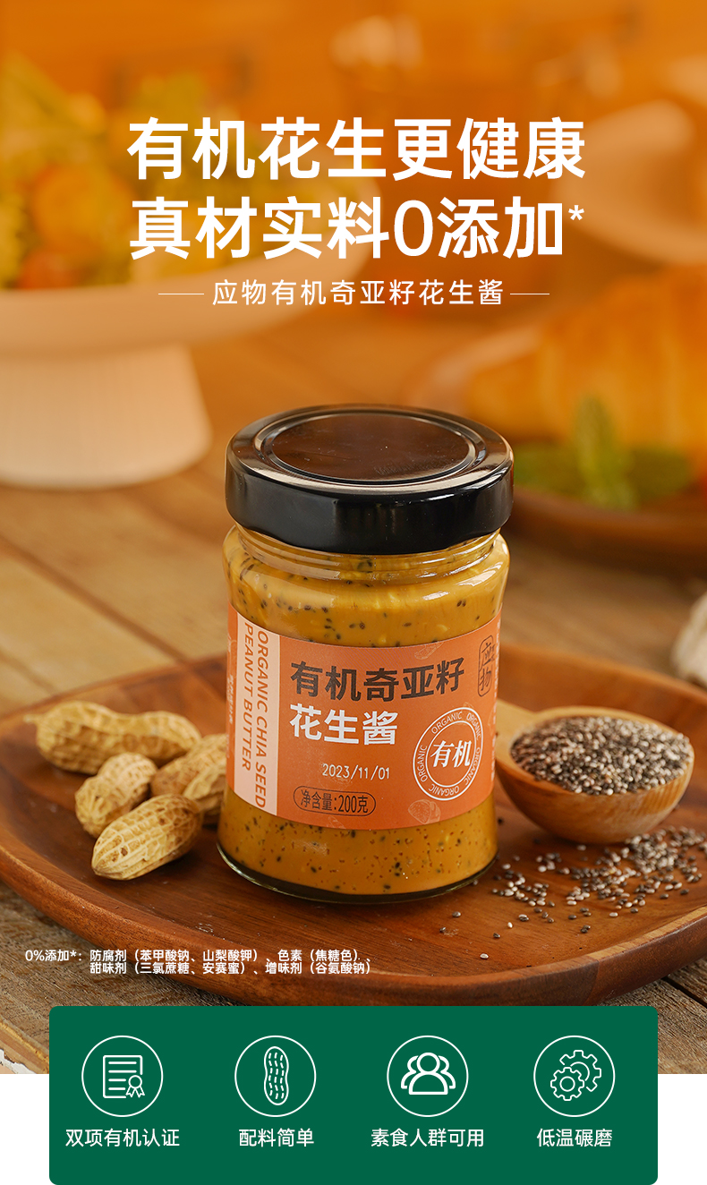 有机奇亚籽颗粒花生酱 健身吐司早餐酱200g/瓶