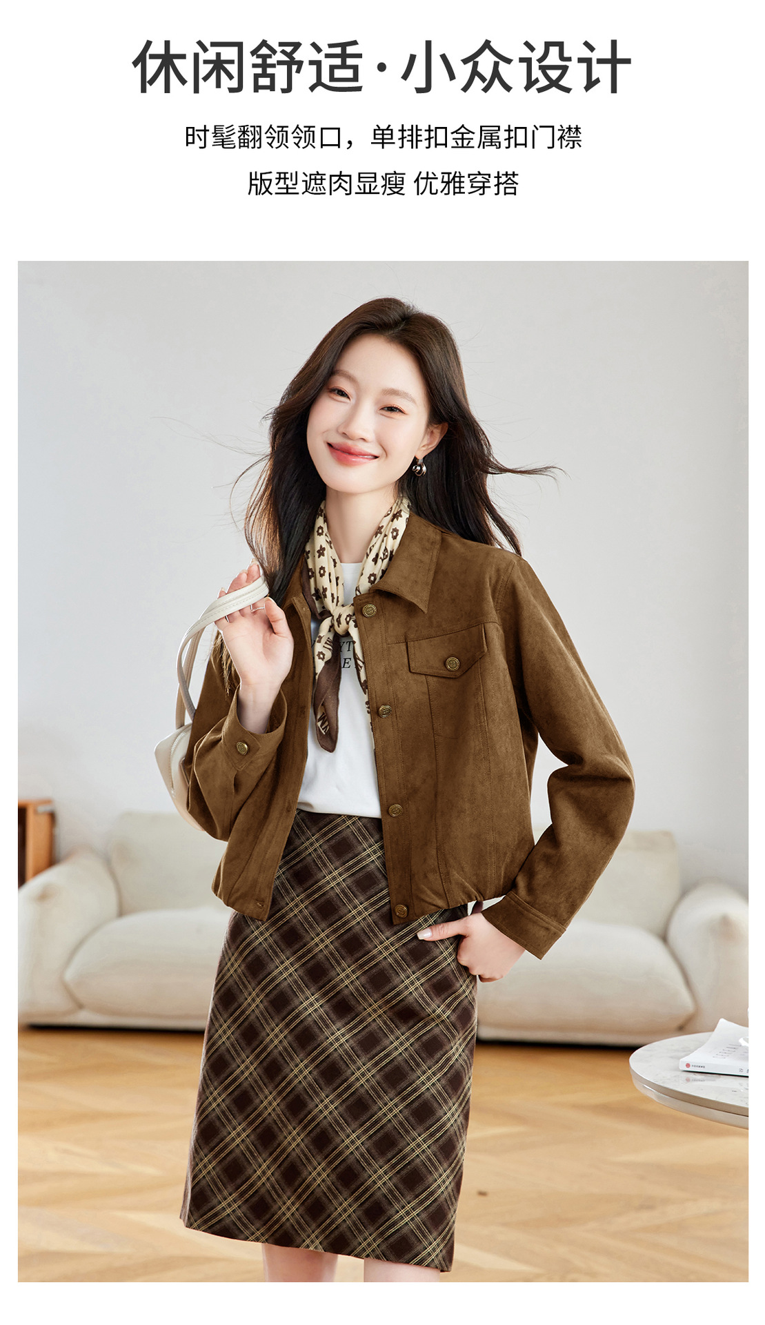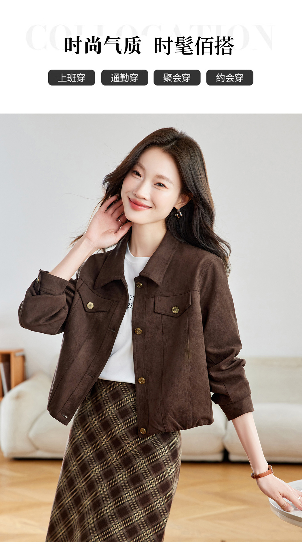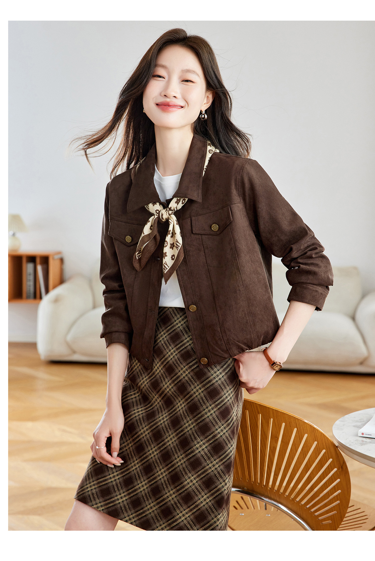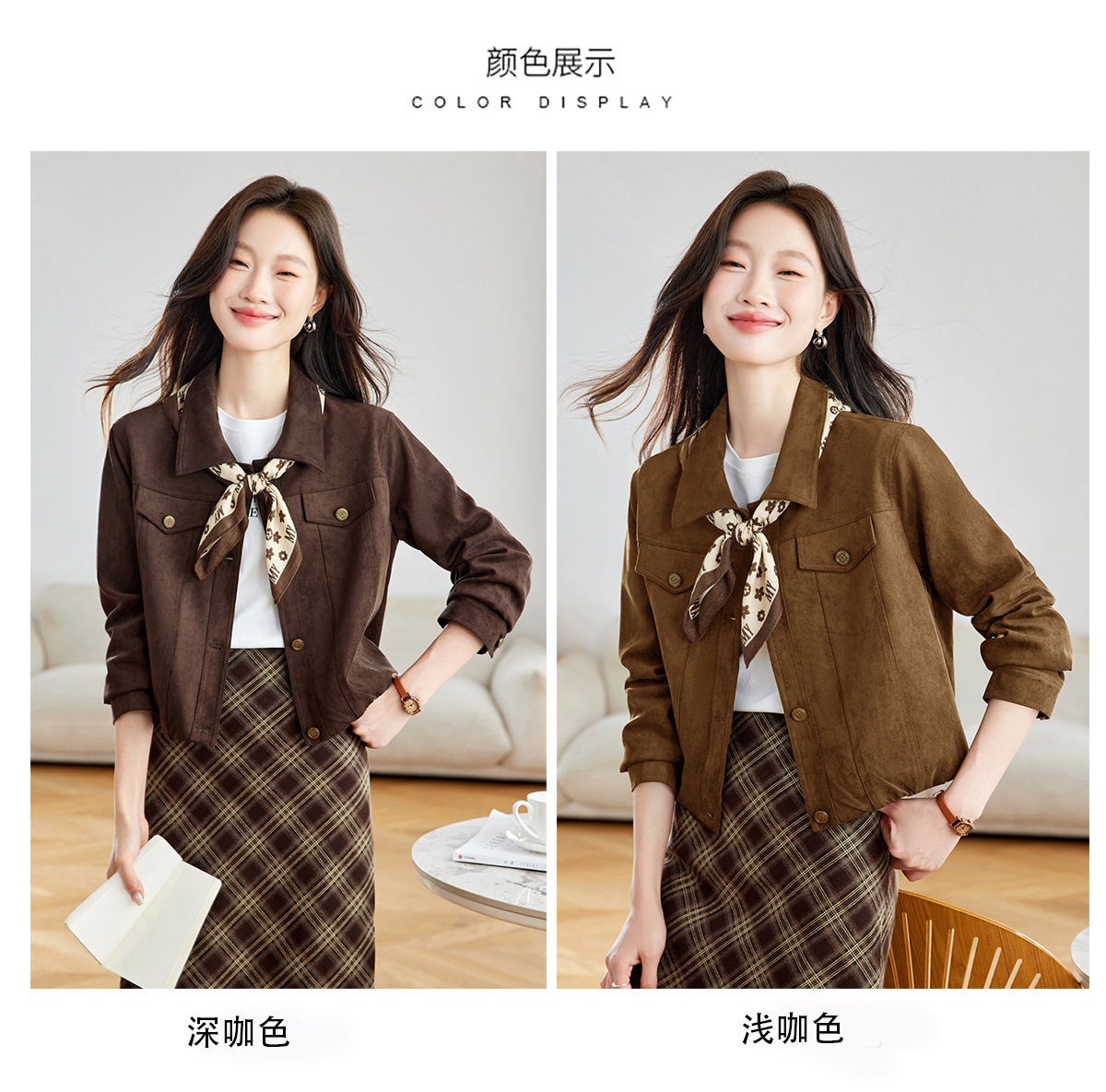 QL8353外套2025新款小个子短款长袖巨好看的上衣配丝巾装饰机车夹克外搭
