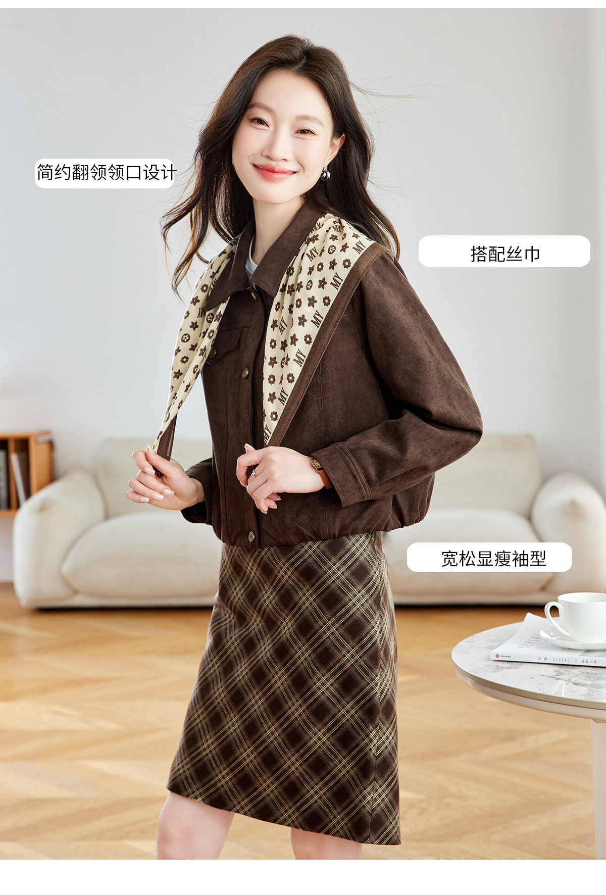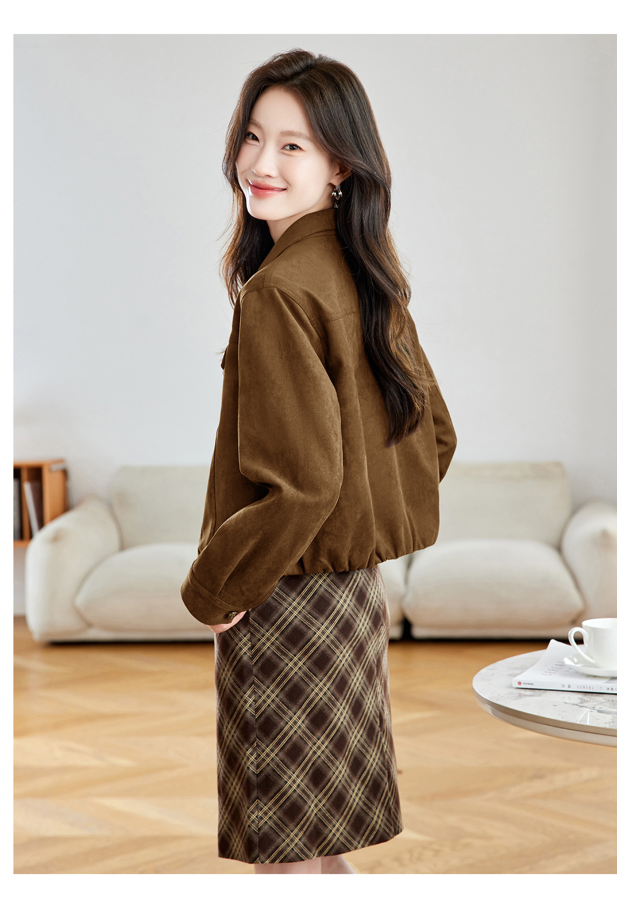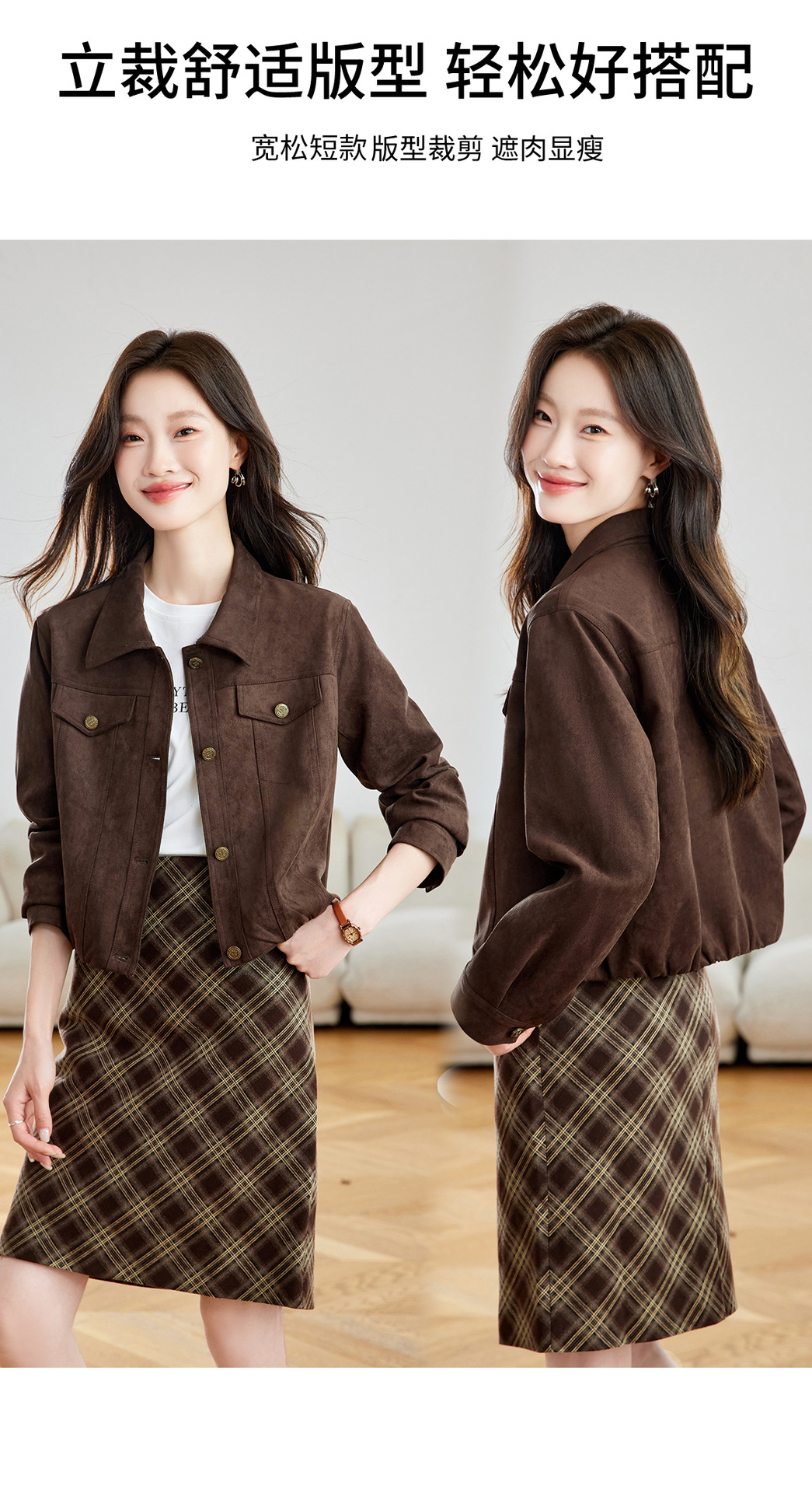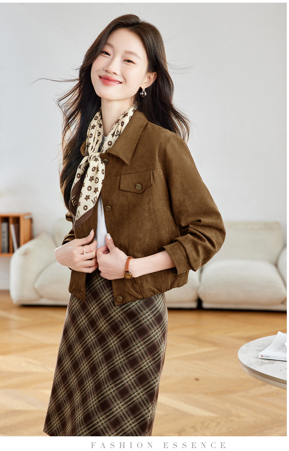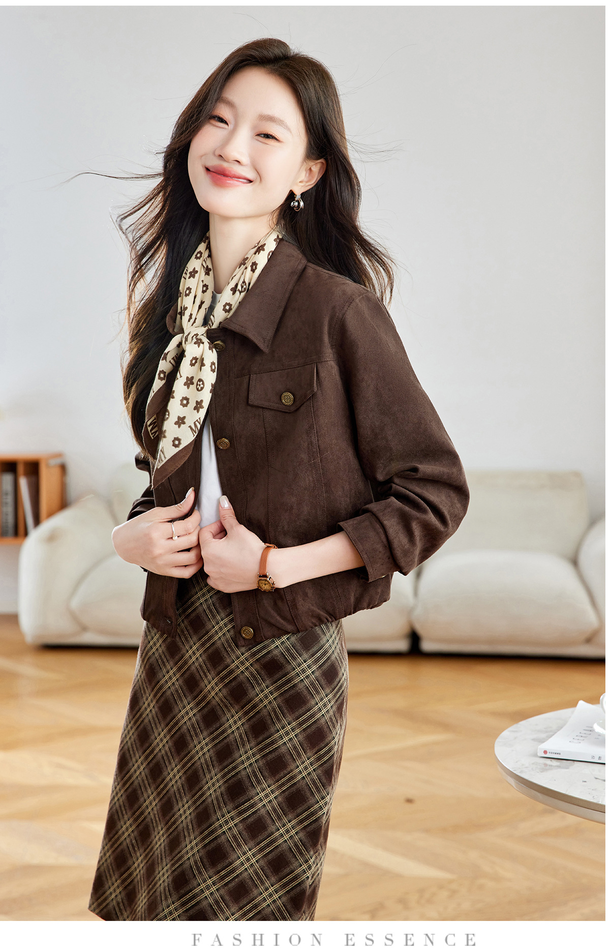 QL8353外套2025新款小个子短款长袖巨好看的上衣配丝巾装饰机车夹克外搭