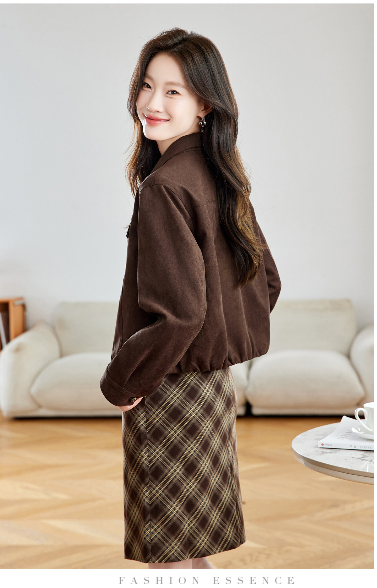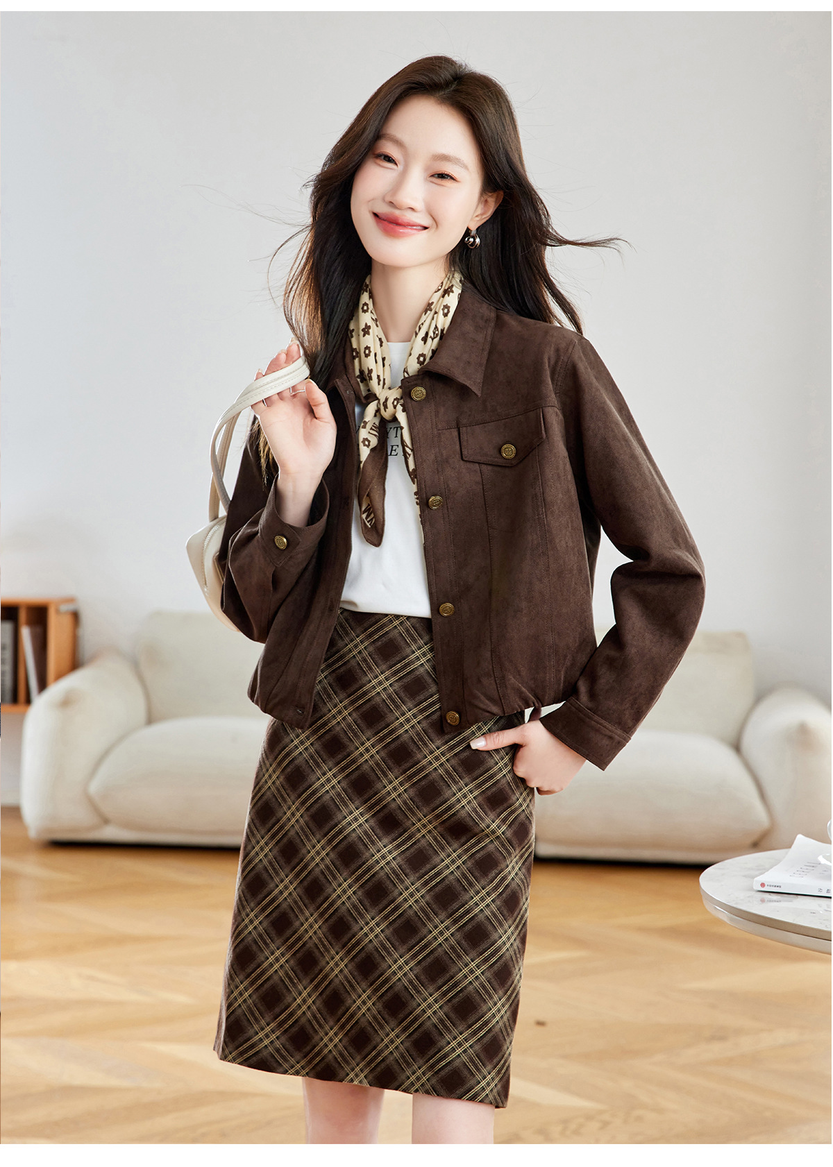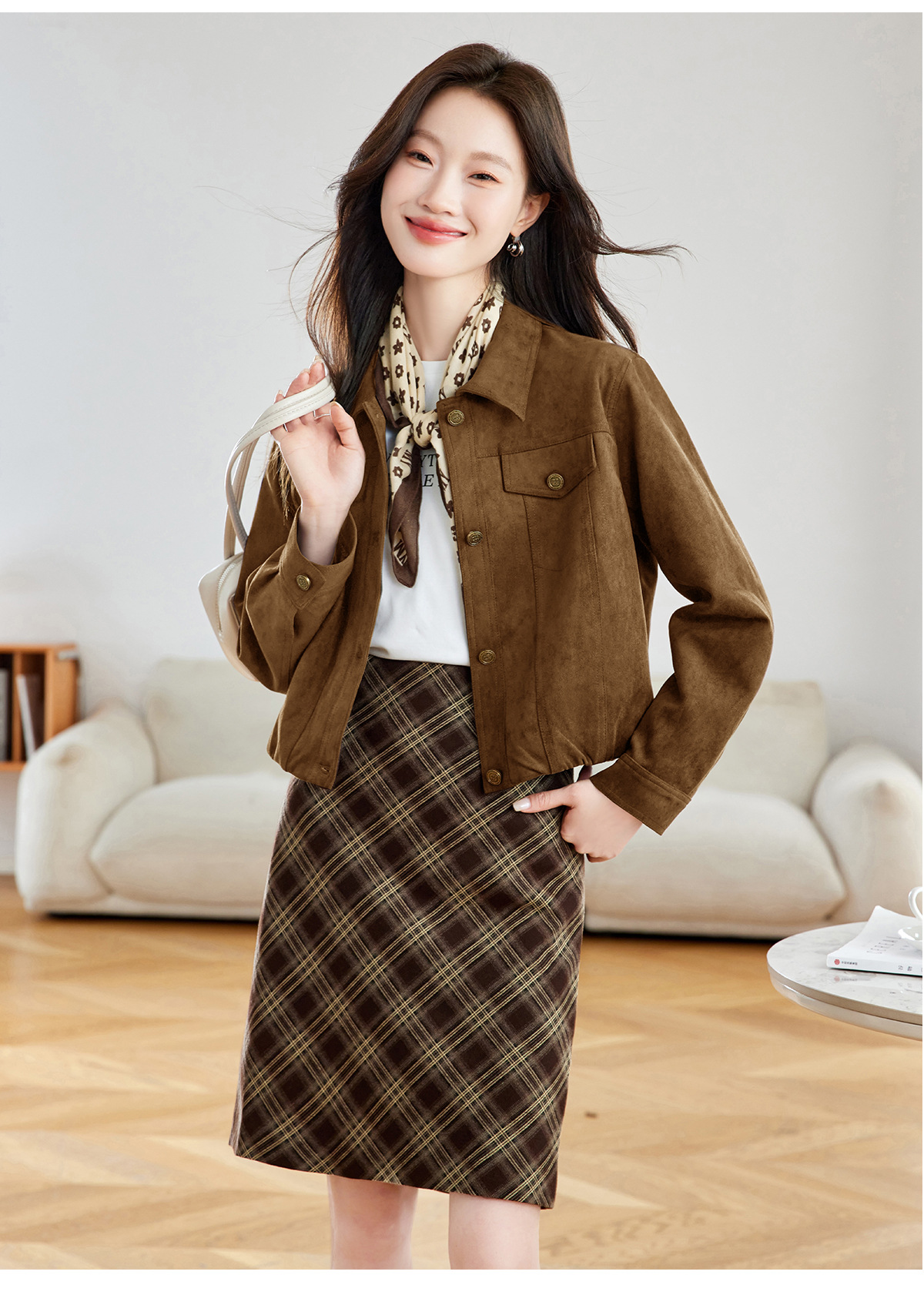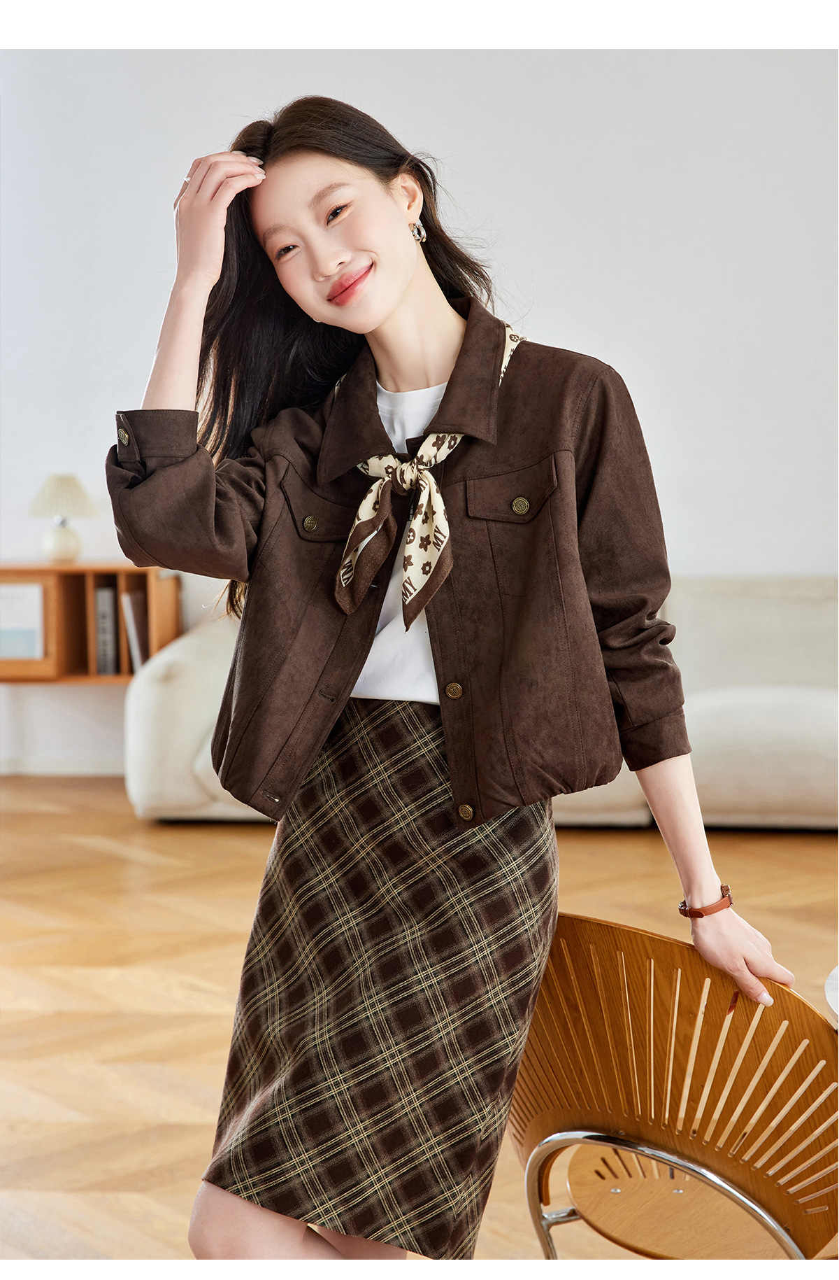 QL8353外套2025新款小个子短款长袖巨好看的上衣配丝巾装饰机车夹克外搭
