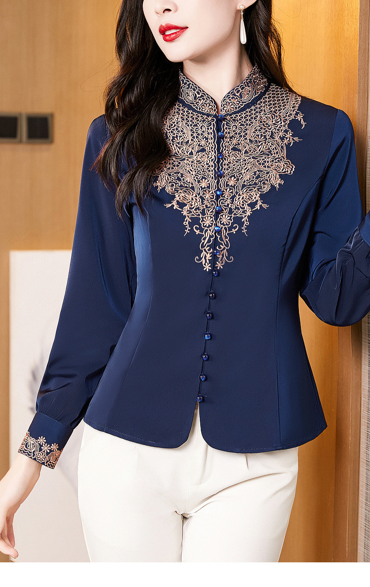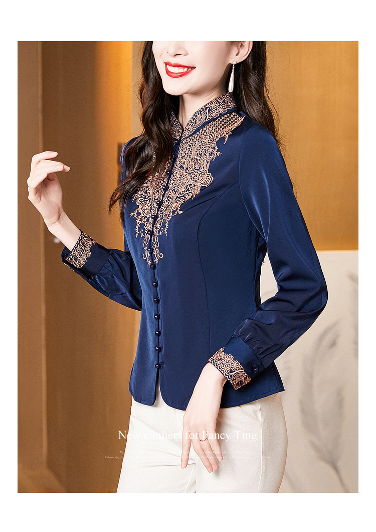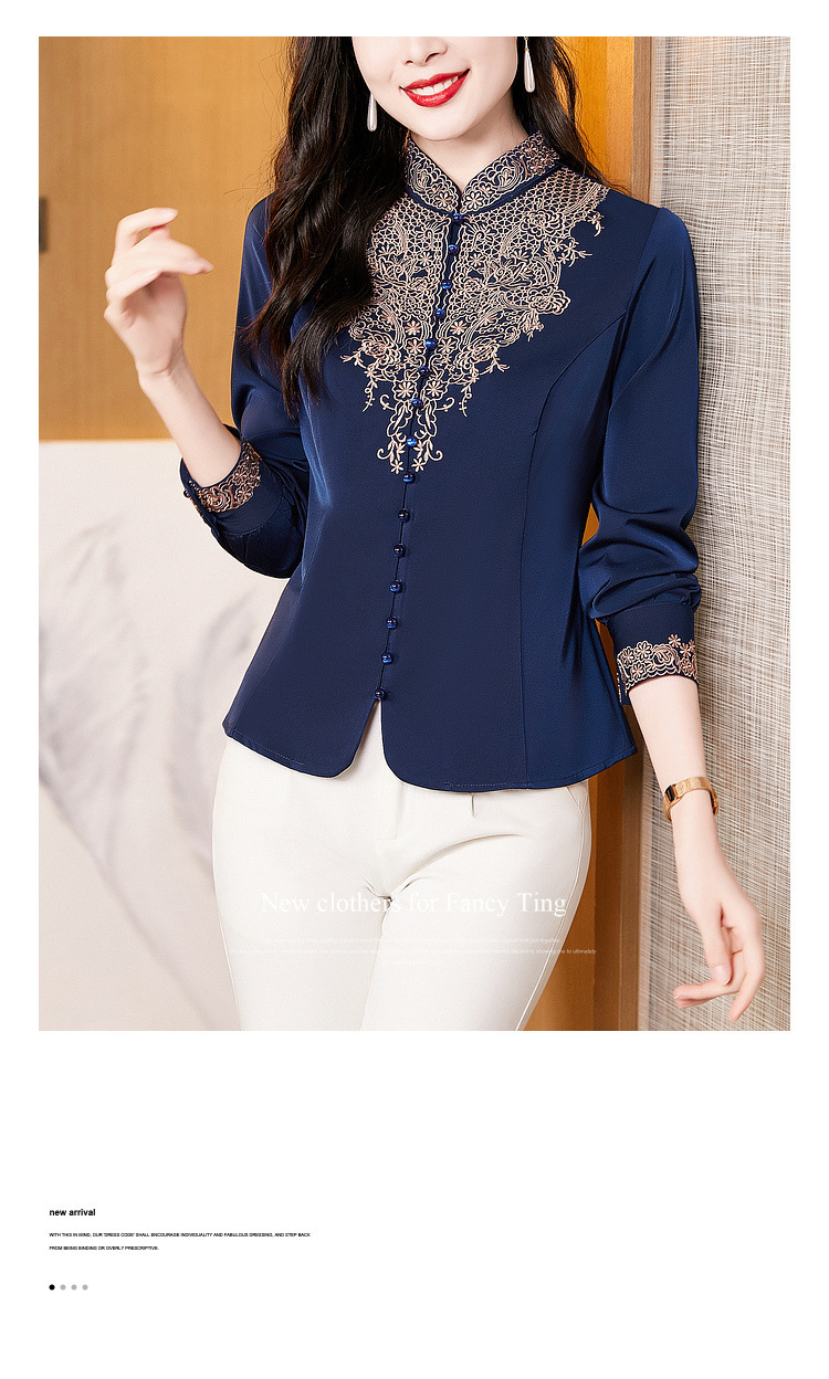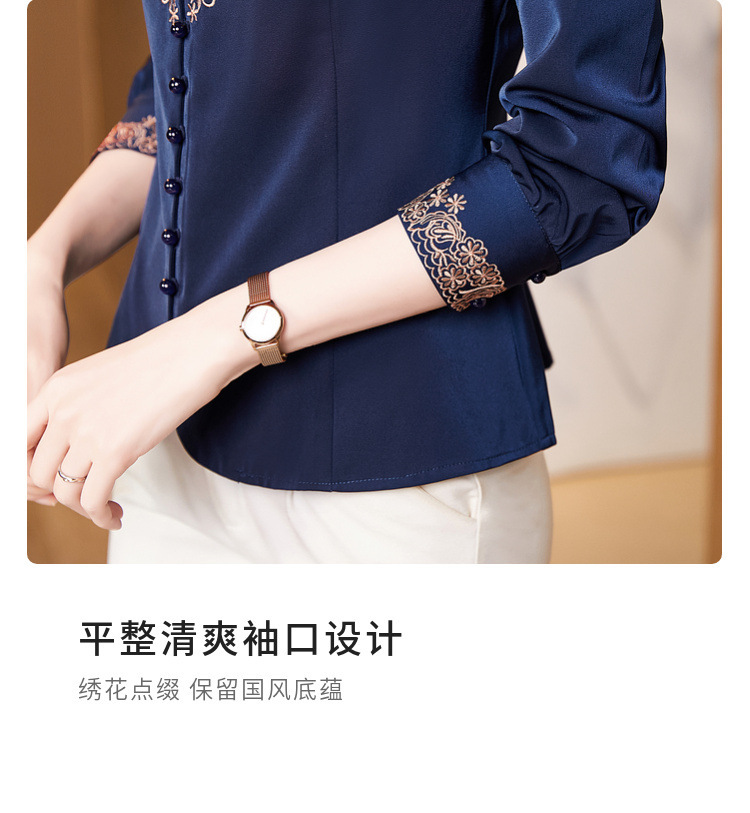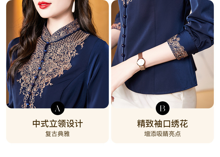 TZW-KQL458H3369轻奢气质绣花衬衫国风气质缎面衬衣