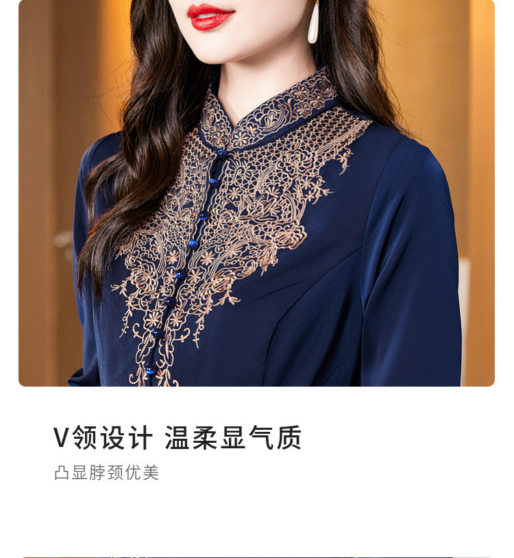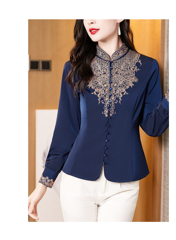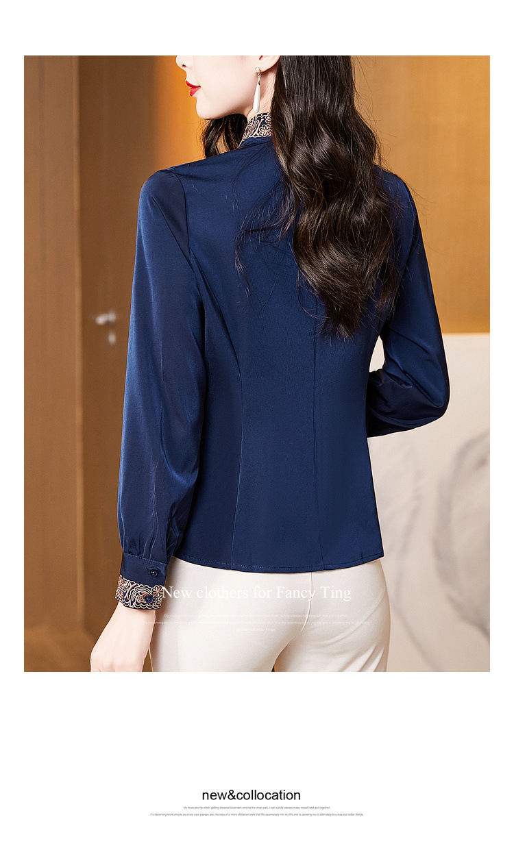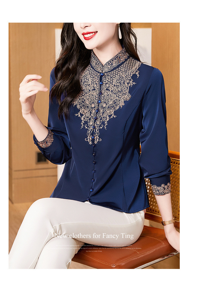 TZW-KQL458H3369轻奢气质绣花衬衫国风气质缎面衬衣
