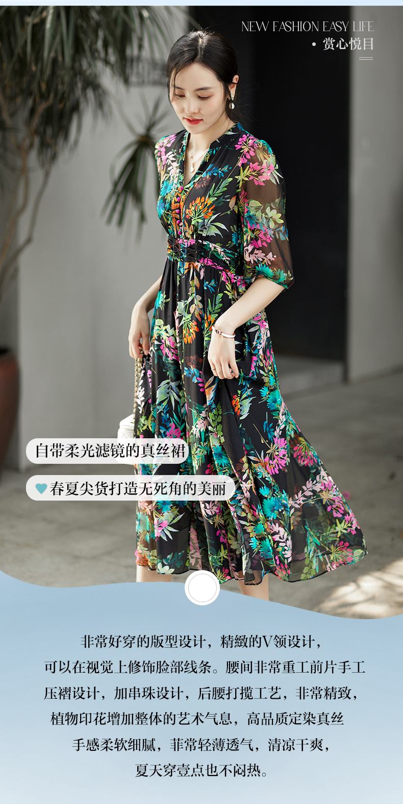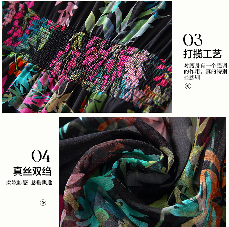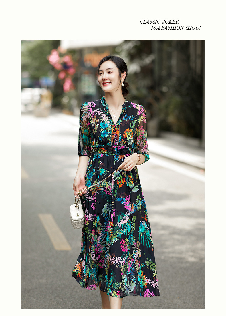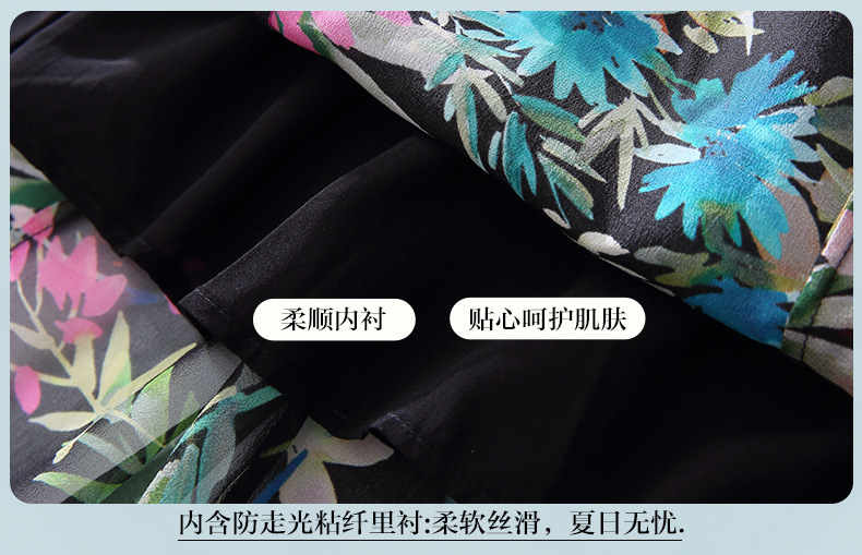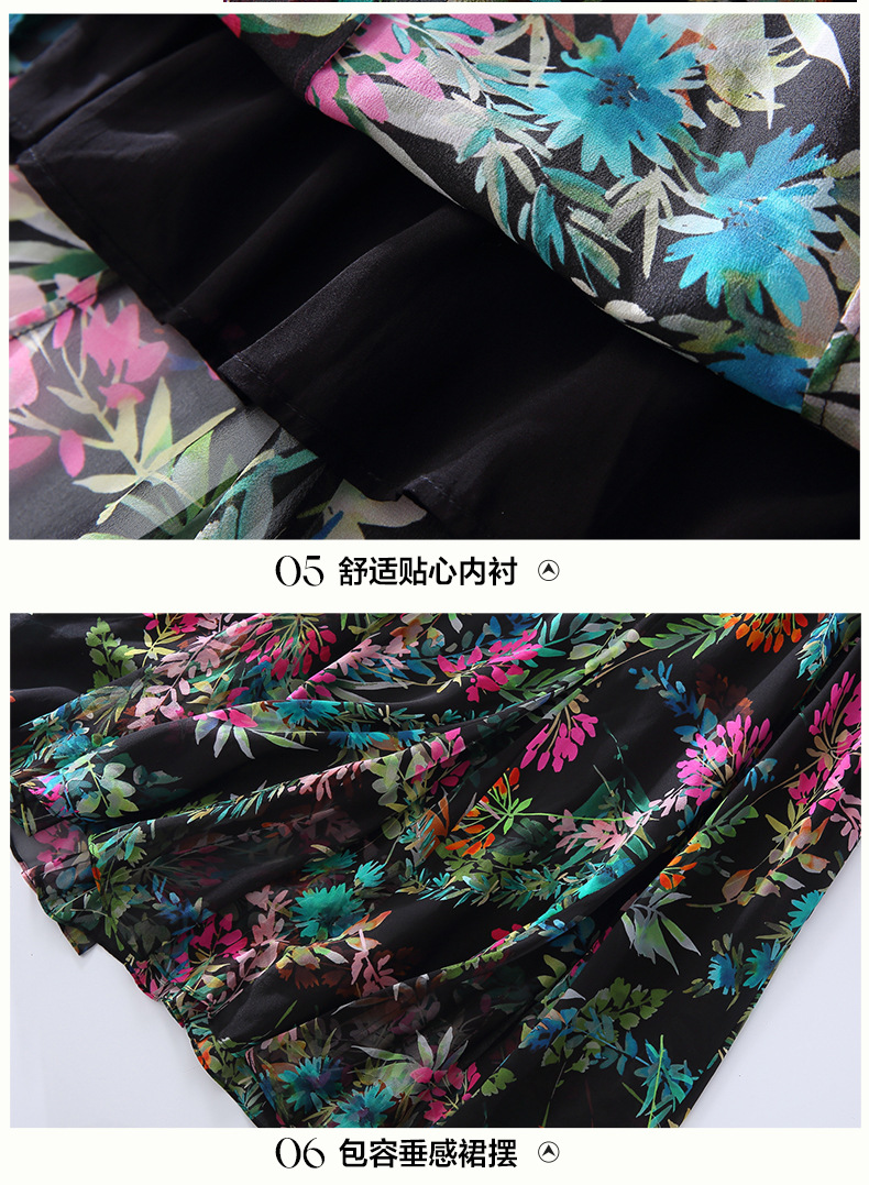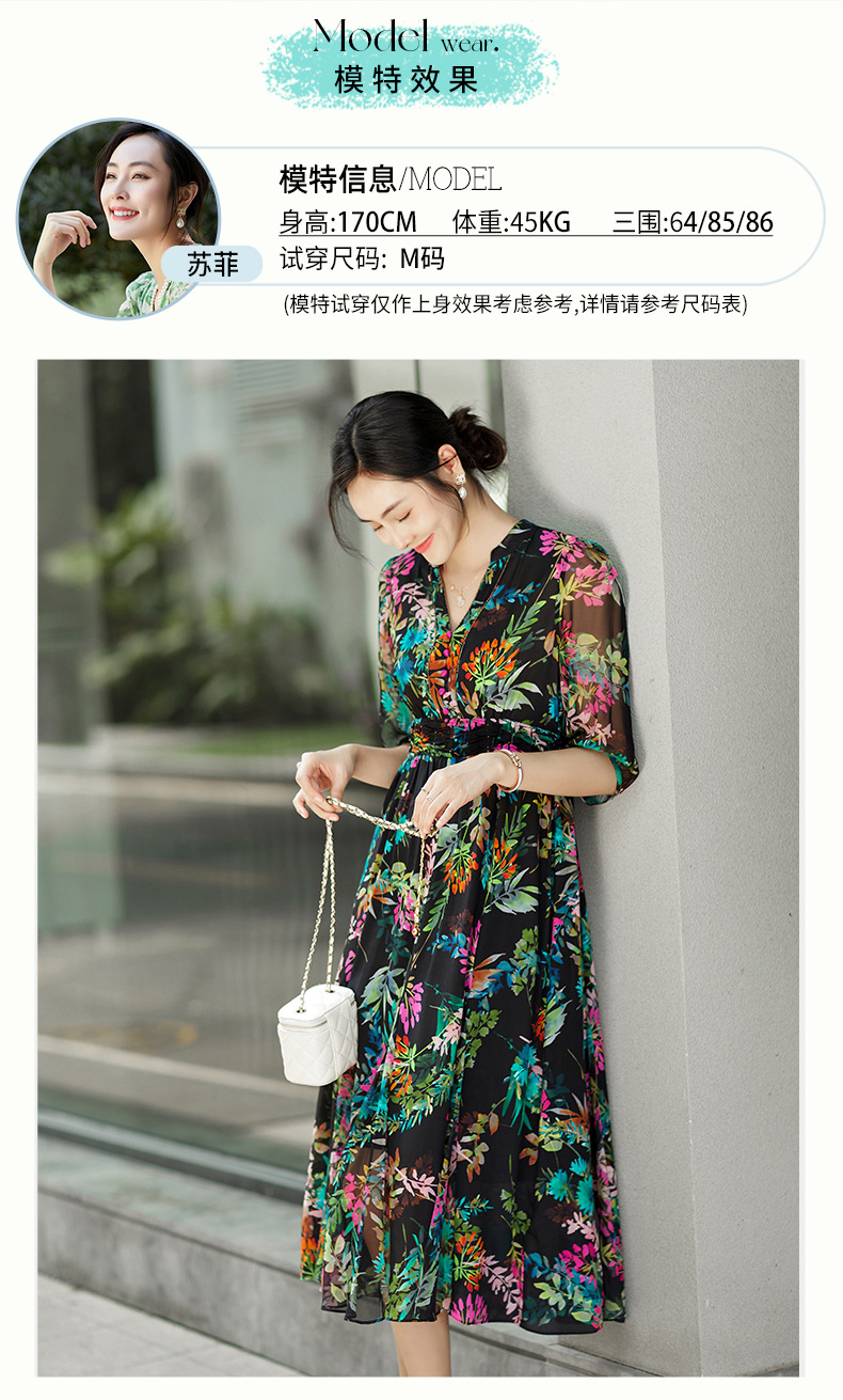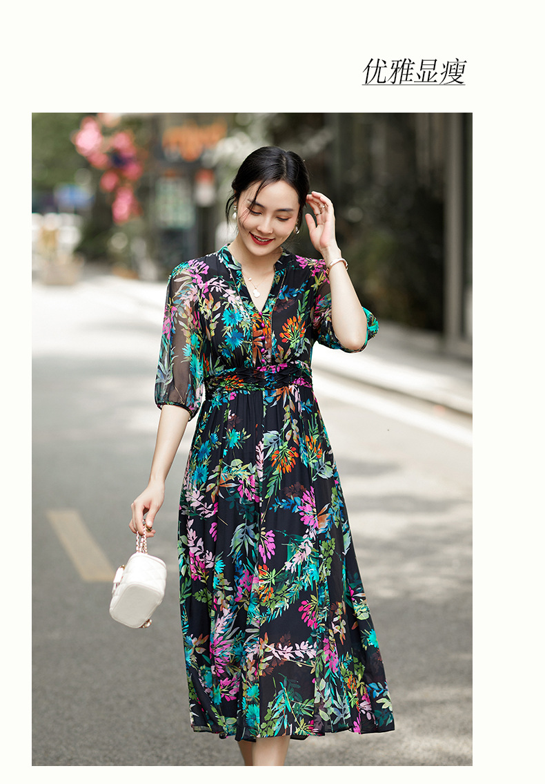 丁摩 法式真丝植物印花串珠连衣裙90415