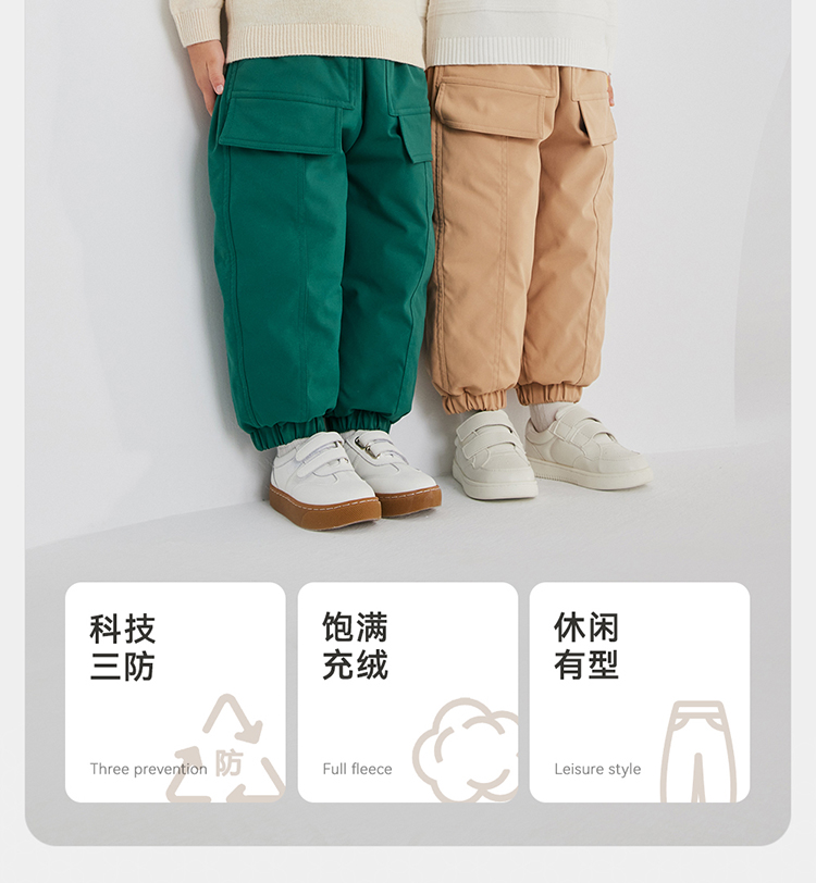 英氏童装加厚外出羽绒裤冬季防寒保暖羽绒长裤超韧绒