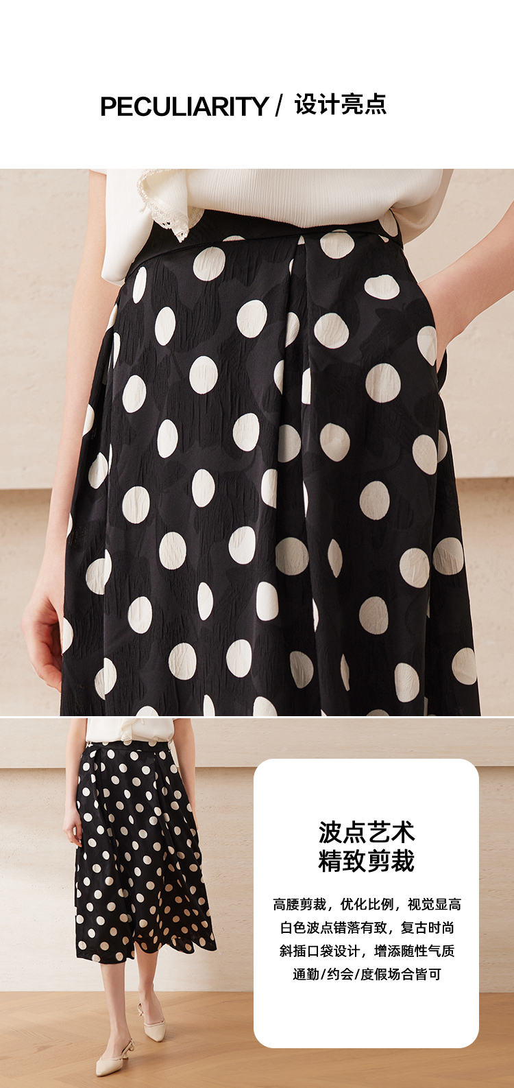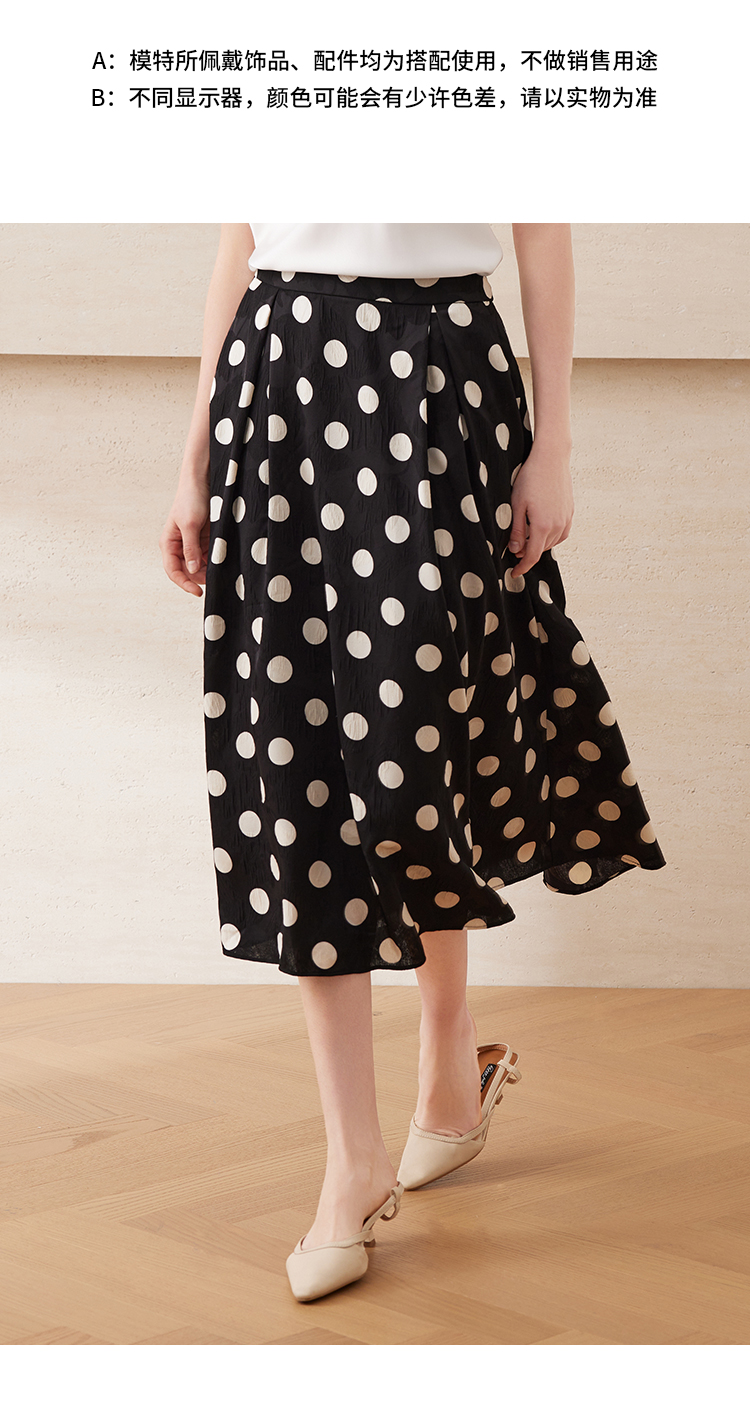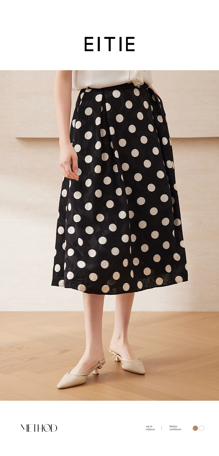 EITIE爱特爱优雅复古波点高腰显瘦a字过膝百搭半身裙2025夏季新款B2506606