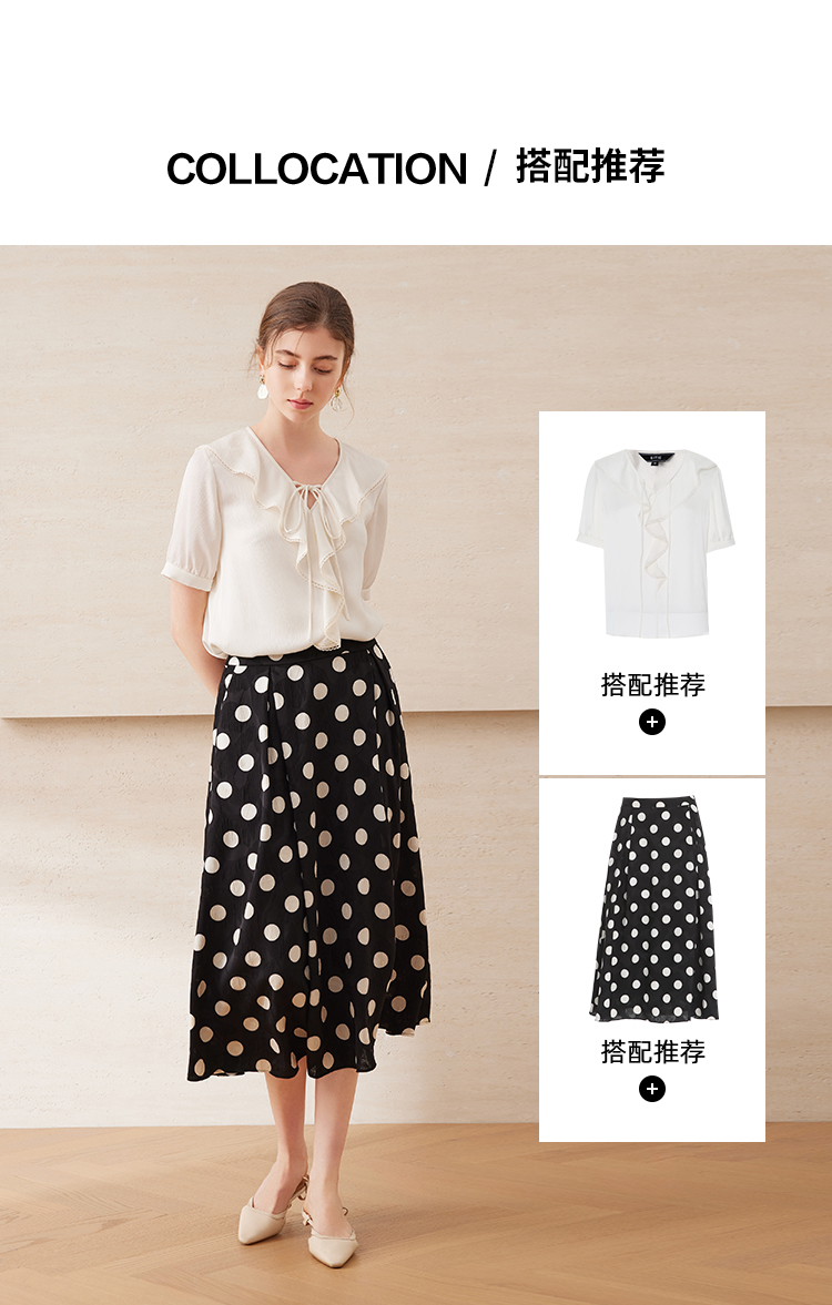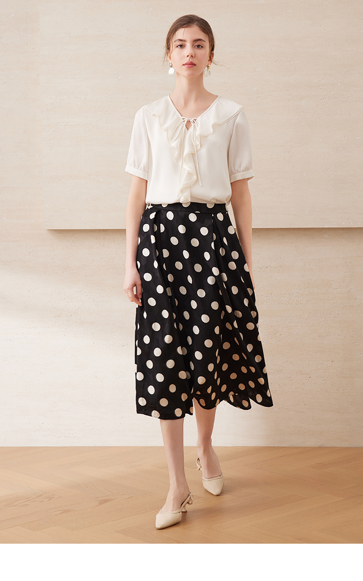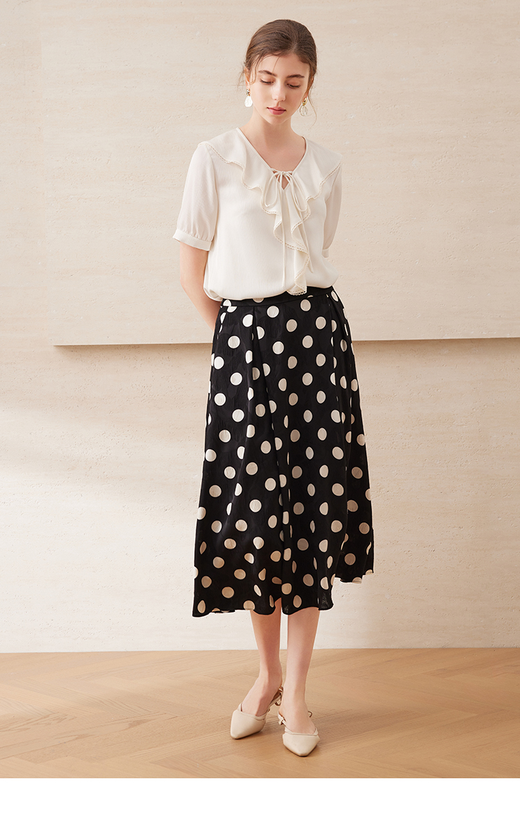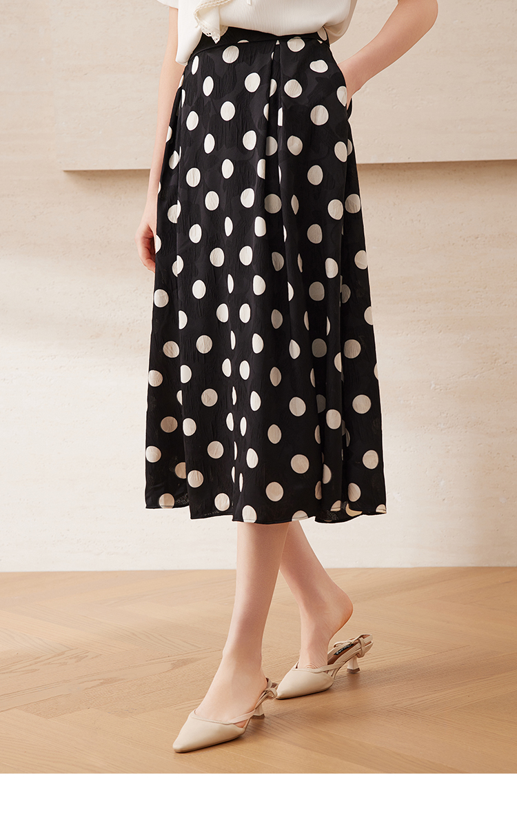 EITIE爱特爱优雅复古波点高腰显瘦a字过膝百搭半身裙2025夏季新款B2506606