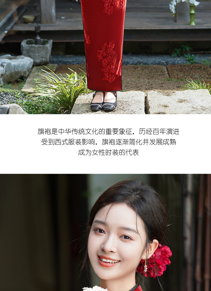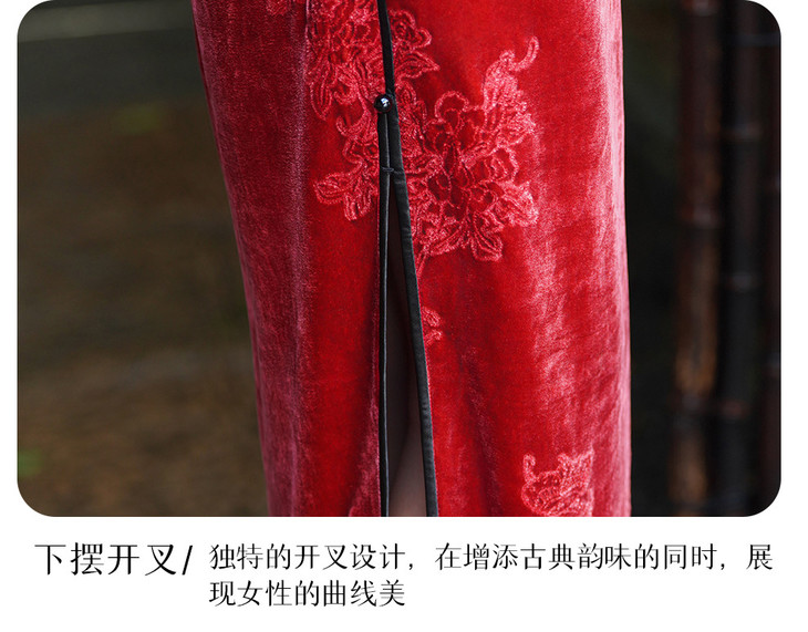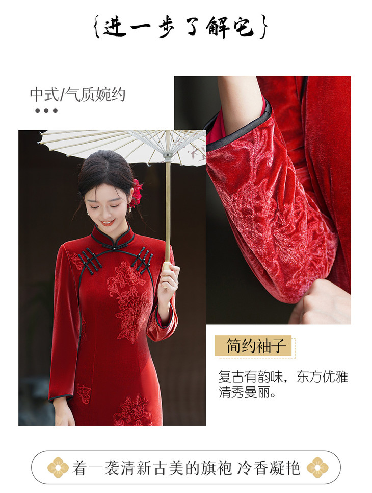 中式高端丝绒绣花旗袍,红色冬天结婚新娘敬酒服XLY25161