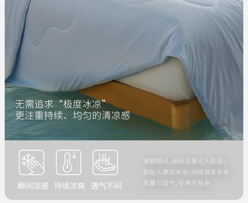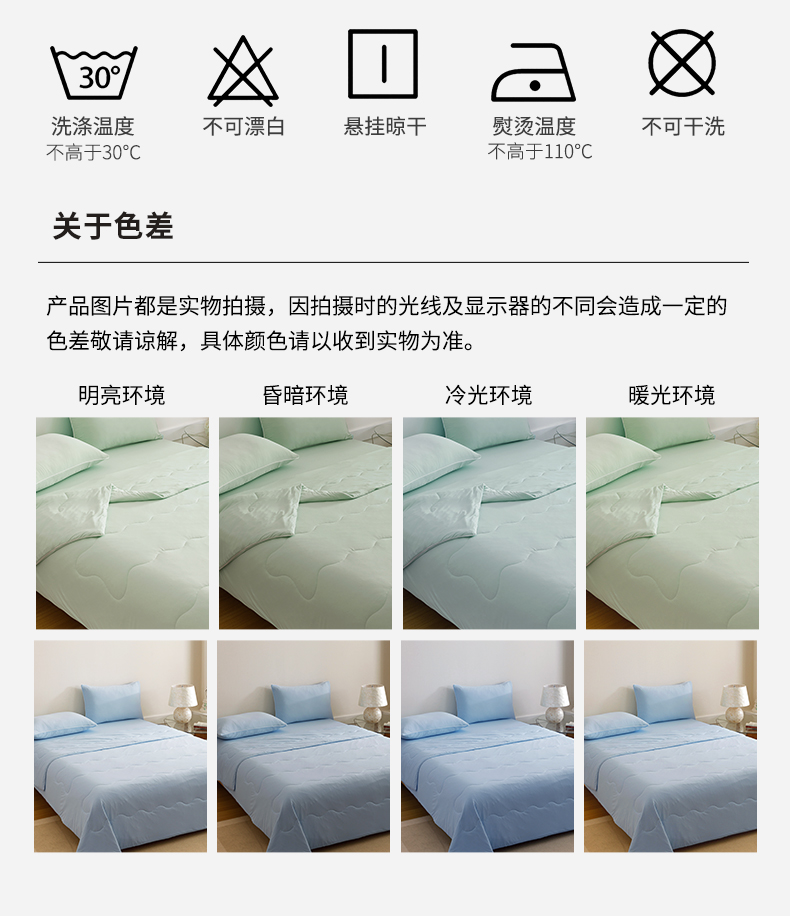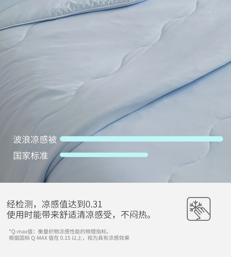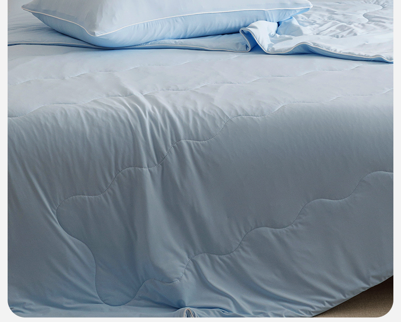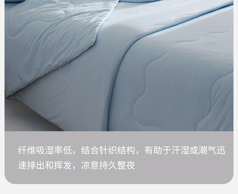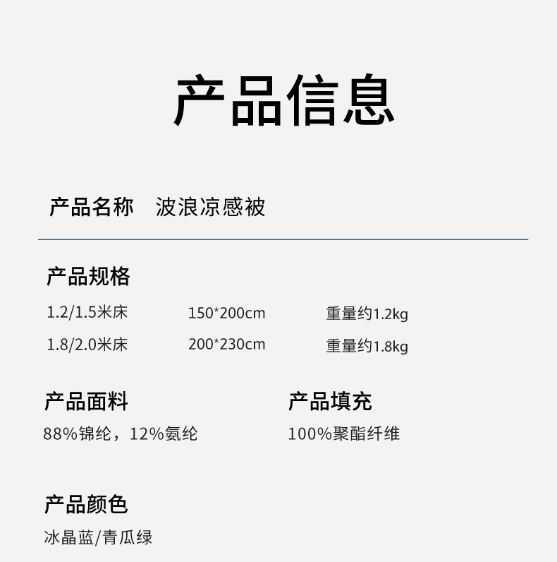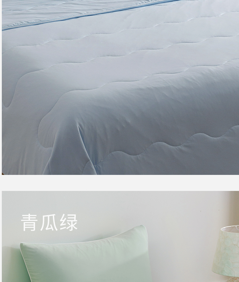 【换季清仓!】一默 波浪凉感被 冰晶蓝/青瓜绿 接触瞬间带来沁肤凉意;锦氨混纺面料,柔软丝滑轻盈透气;高弹性针织织法,贴合身体曲线无束缚;3D波浪绗缝透气排湿;可机洗免被套设计省心省力