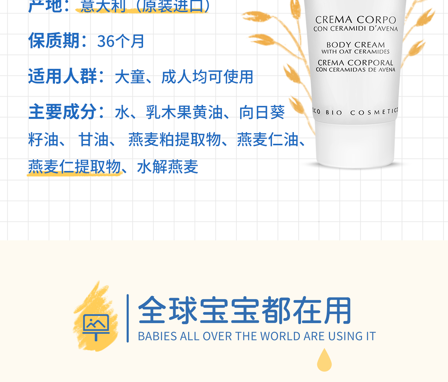 【春季换新肌原价158】Nebiolina欧优乐身体乳200l有机认证意大利原装进口保湿滋润