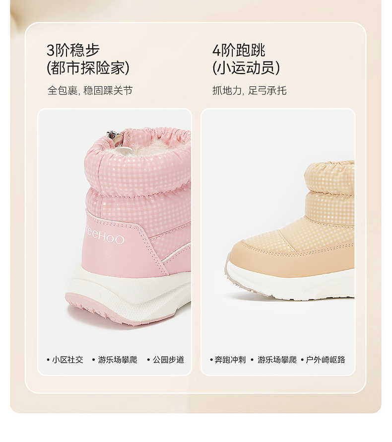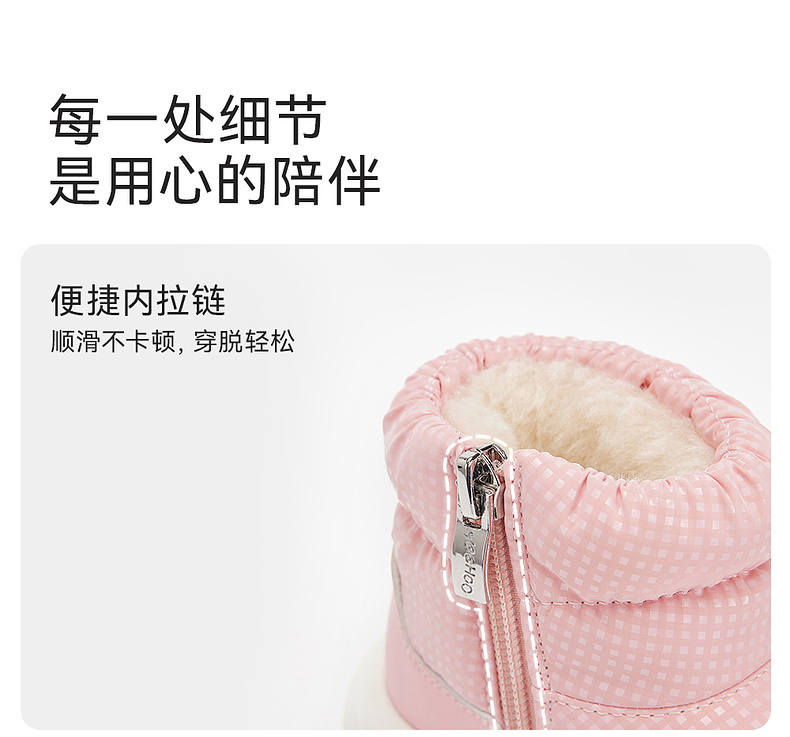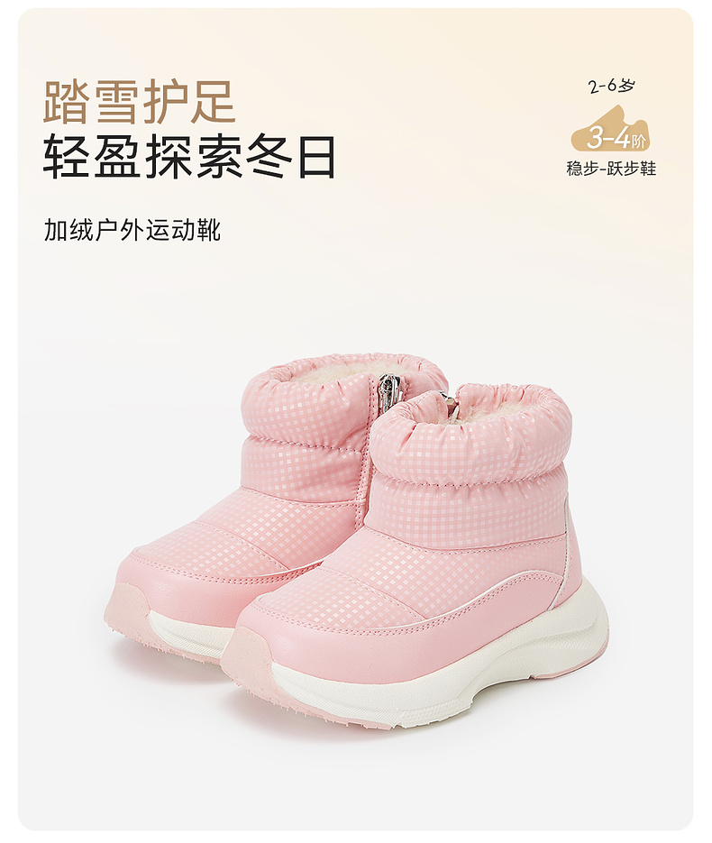 英氏儿童靴子运动靴冬季加绒棉靴户外女童冬靴男童保暖百搭童鞋