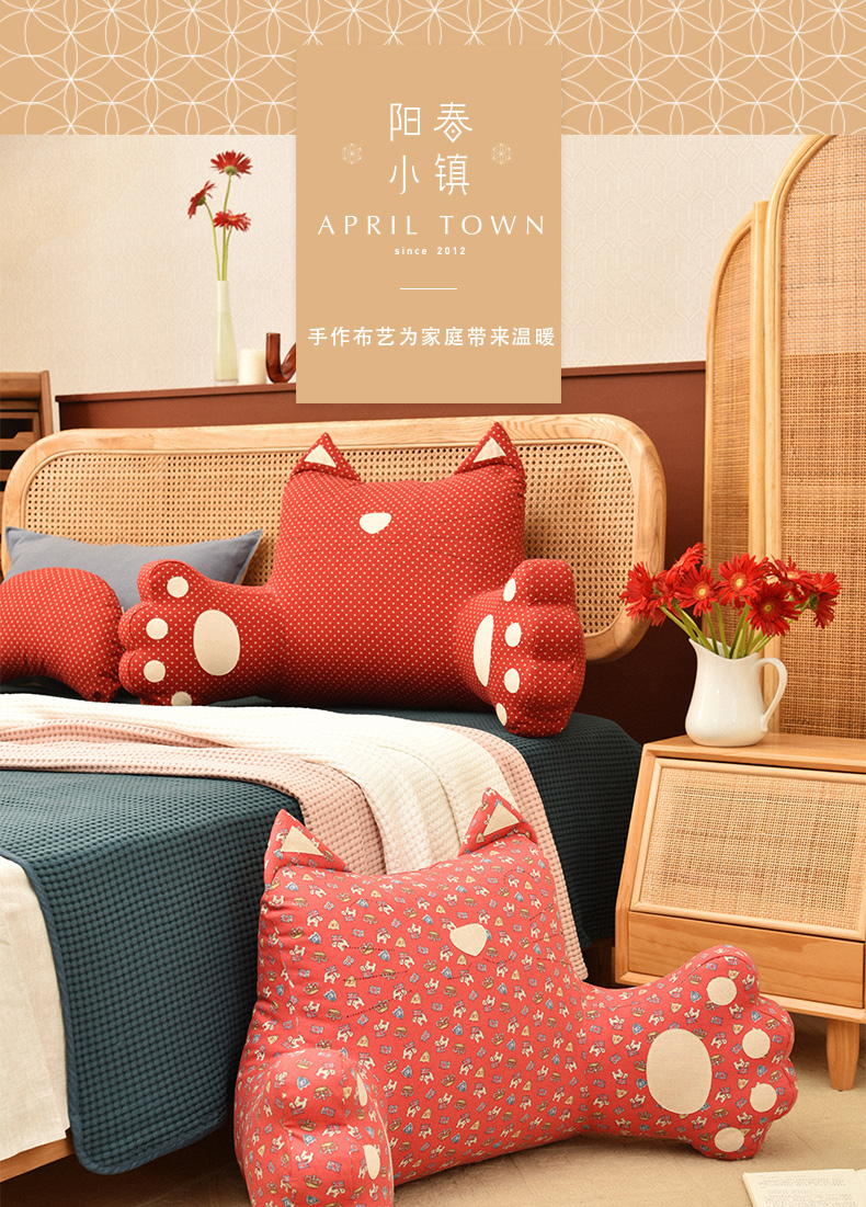节日系列猫咪靠床头沙发软包大靠背腰靠