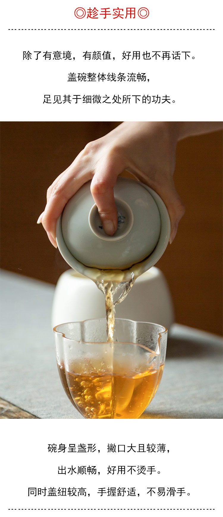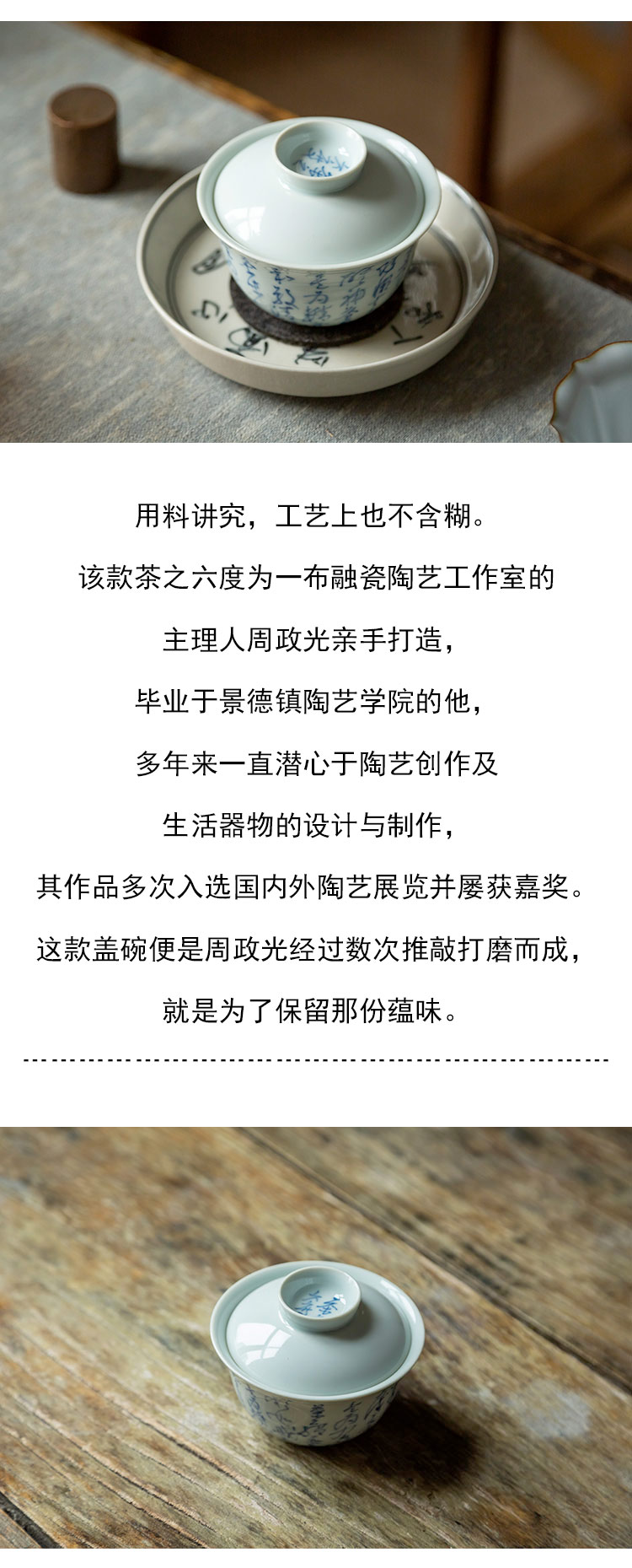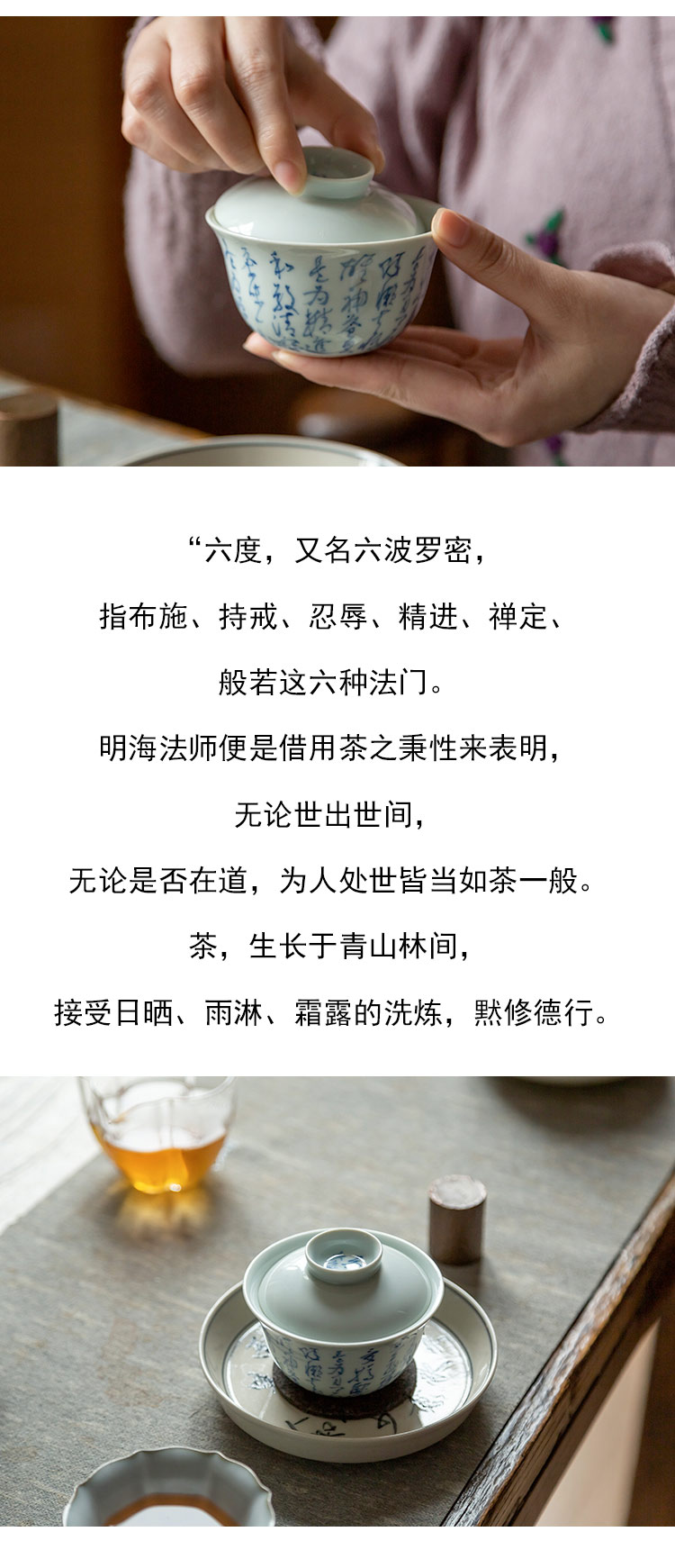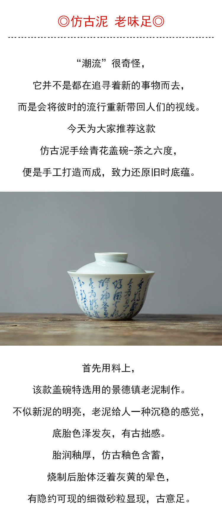 茶香记 景德镇 手作 仿古泥 手绘青花盖碗-茶之六度 禅意 有老味