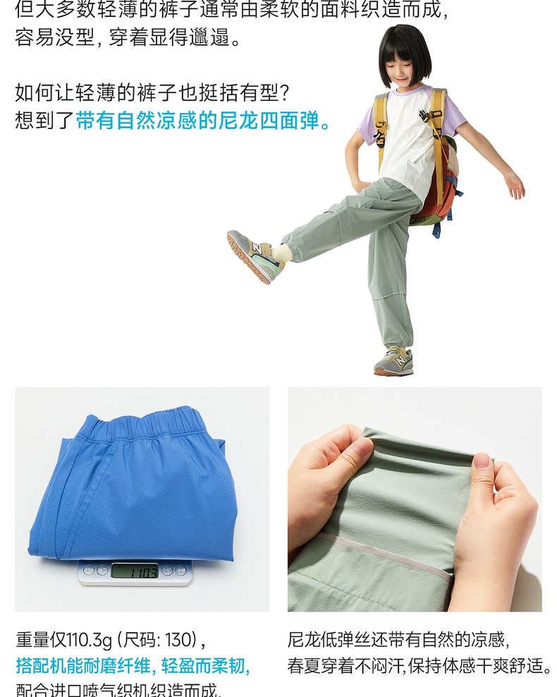 【凉风裤】allblu幼岚【凉风裤】儿童裤子26春季新品透气凉感挺阔有型