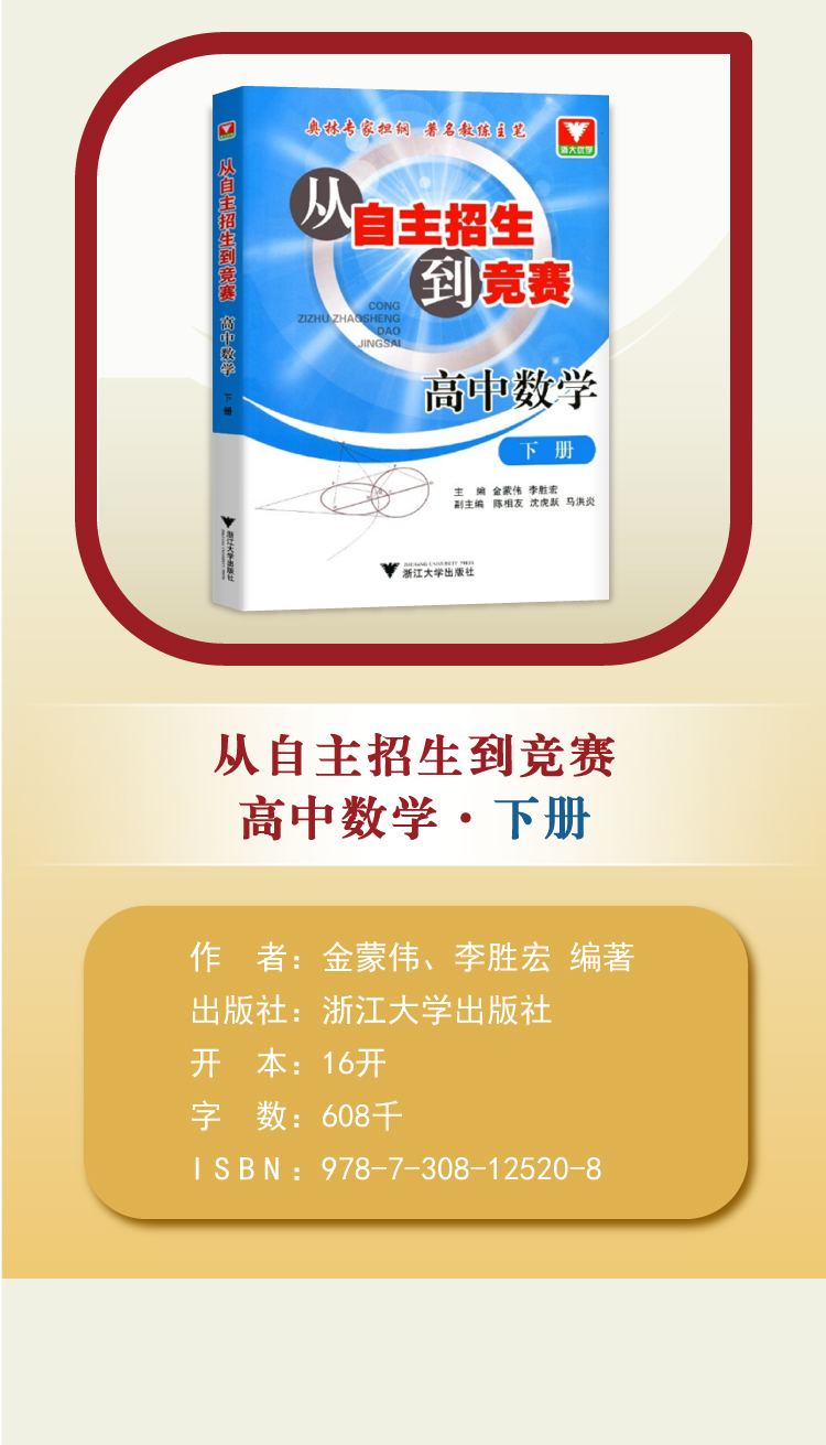 本书以高中数学竞赛大纲为依据,是在总结全国高校历年自主招生命题规律的基础上编写的,内容包括立体几何、解析几何、复数、多项式、排列组合、极限导数等。
