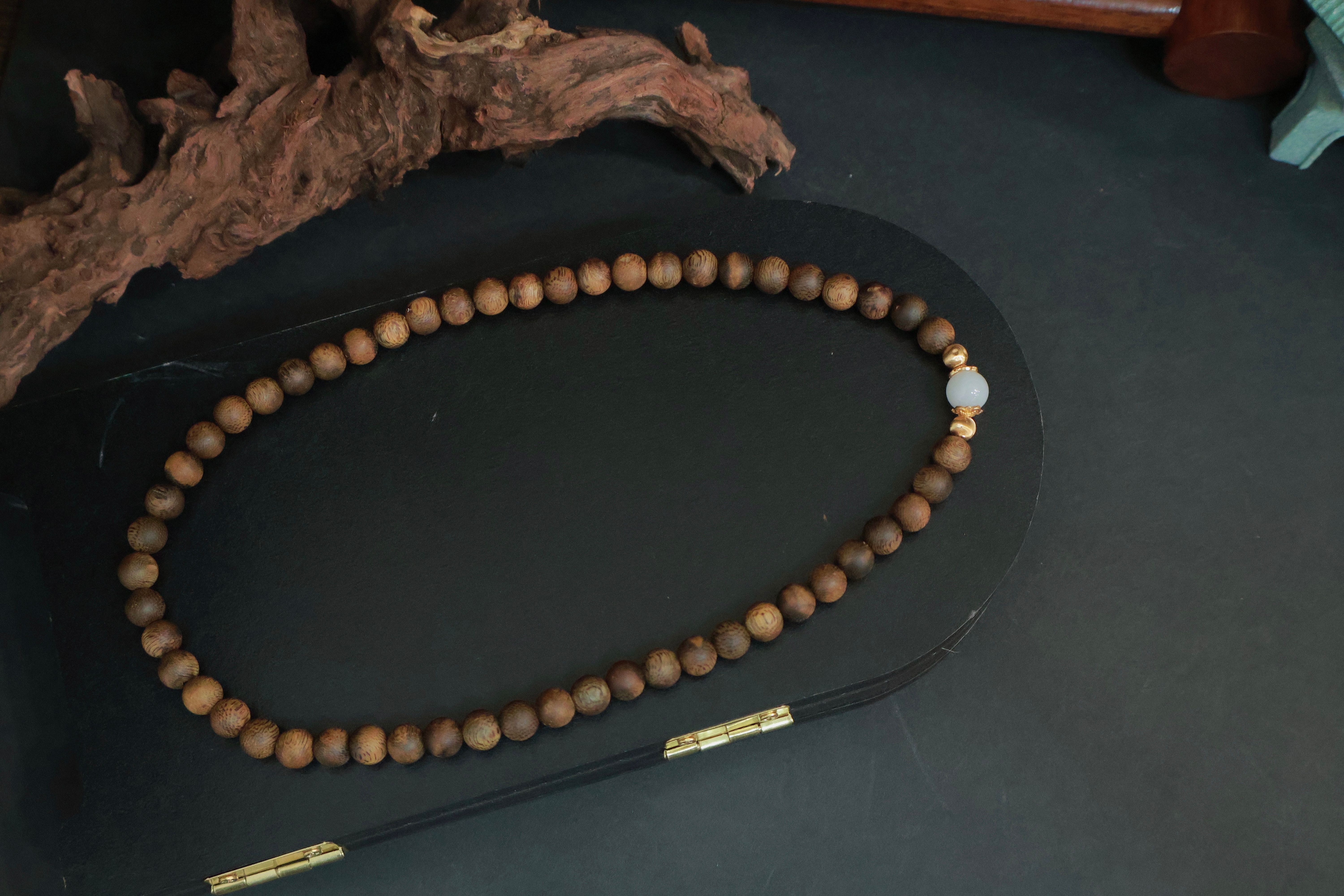 品名:棋楠和田玉圆珠手串-男款
