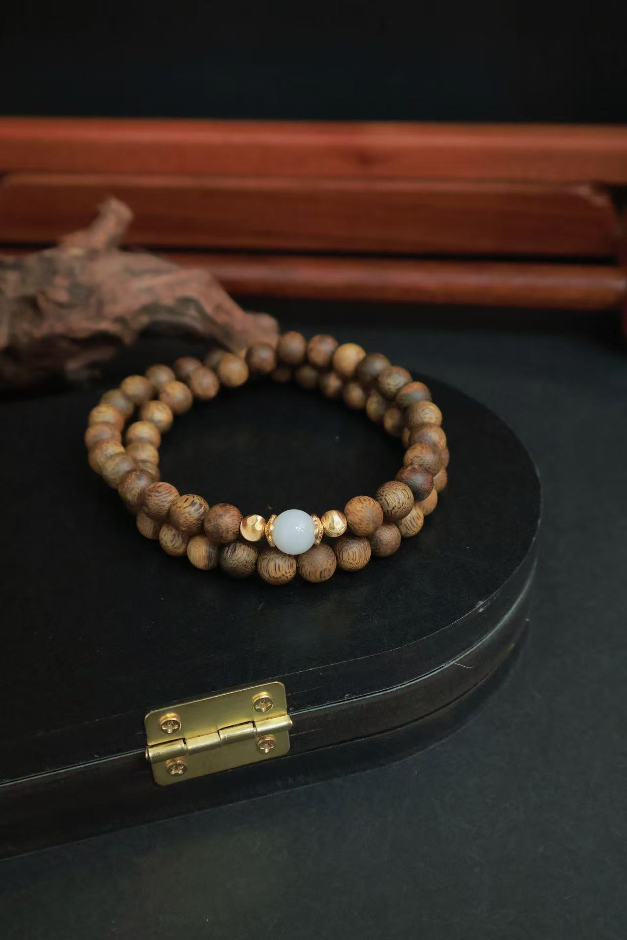 规格:约10mm棋楠圆珠、约10mm东陵玉老型珠、手围约18-20cm