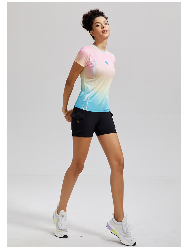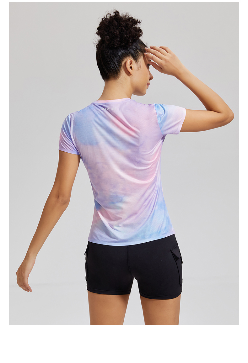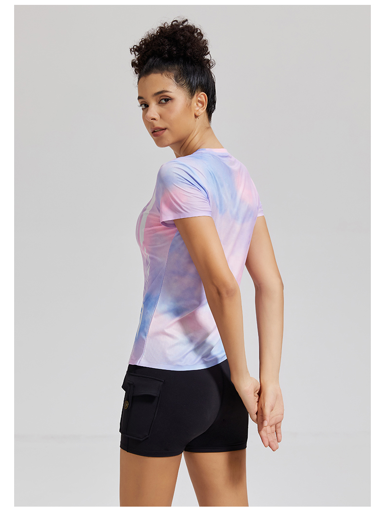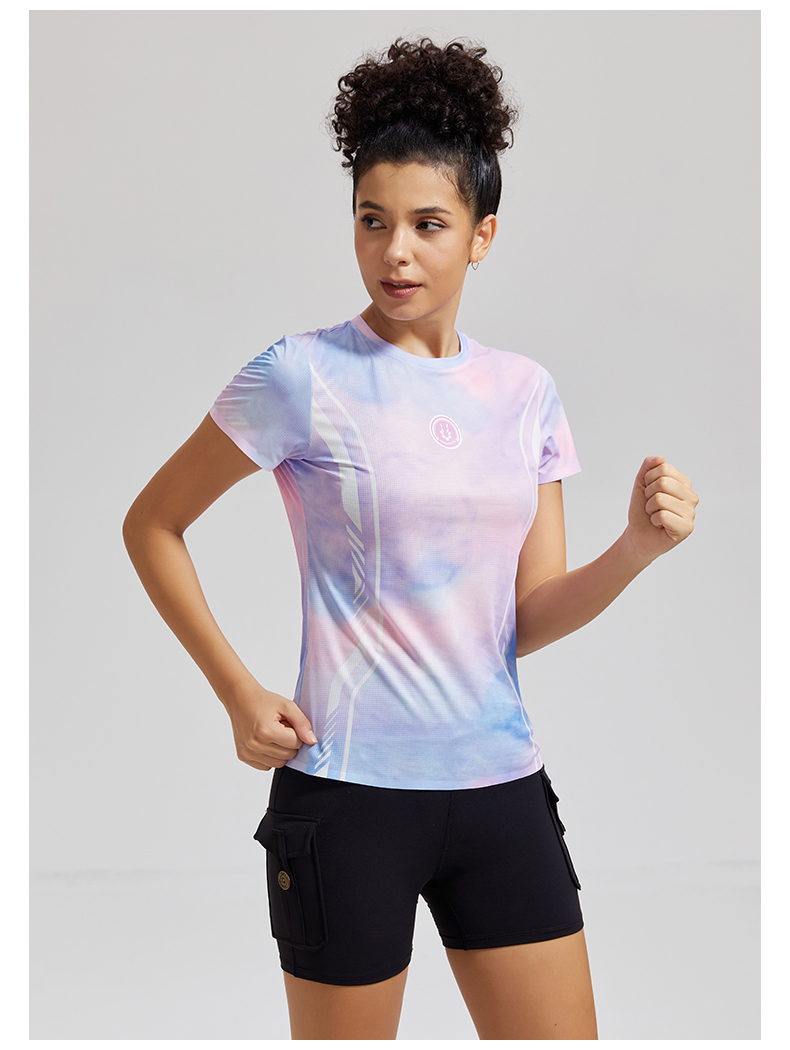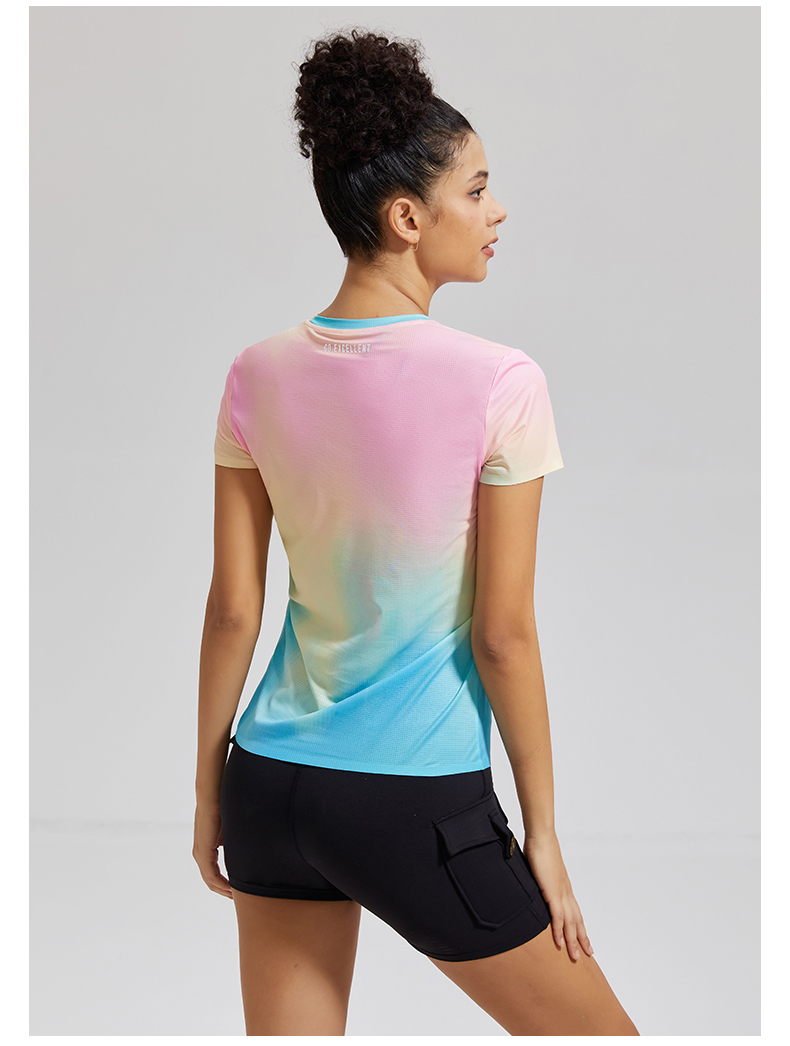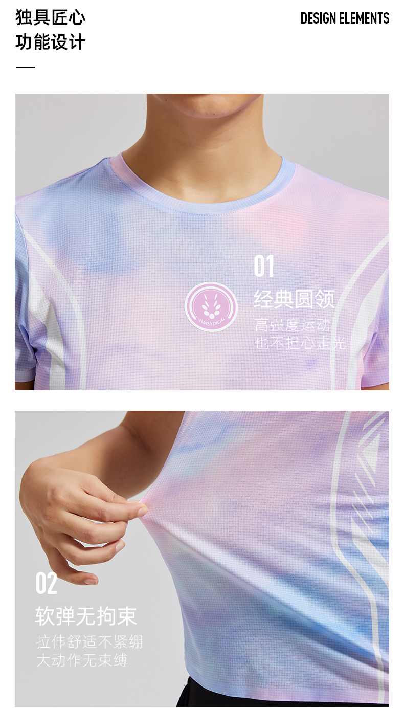 范斯蒂克 晕染圆领短袖运动健身上衣透气运动服时尚