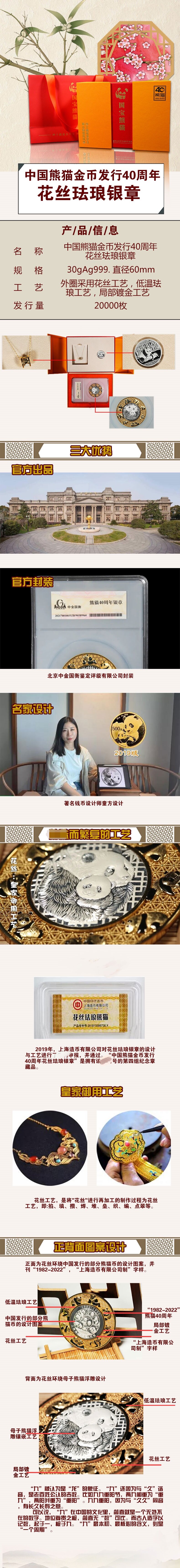 熊猫金币发行40周年花丝银章礼盒版 上海造币出品