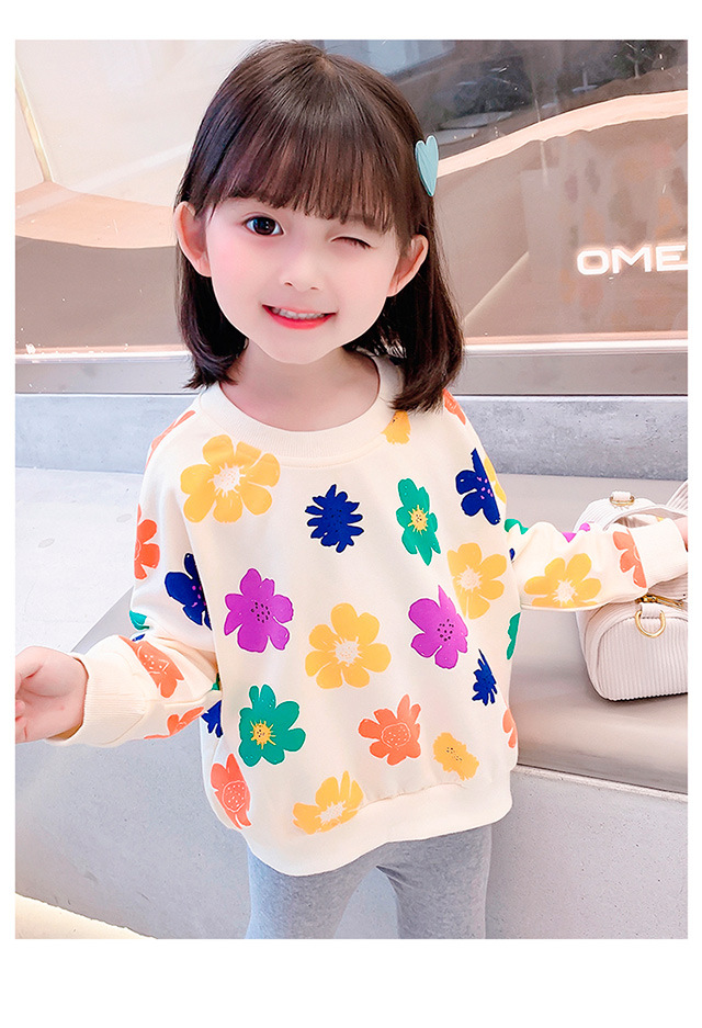 【满印花朵,百搭洋气!】儿童2024春秋新款女童卫衣休闲百搭,洋气花朵中小童上衣宝宝打底衫,不仅具有时尚感,更注重实用性和舒适度,是您给孩子的不二选择!