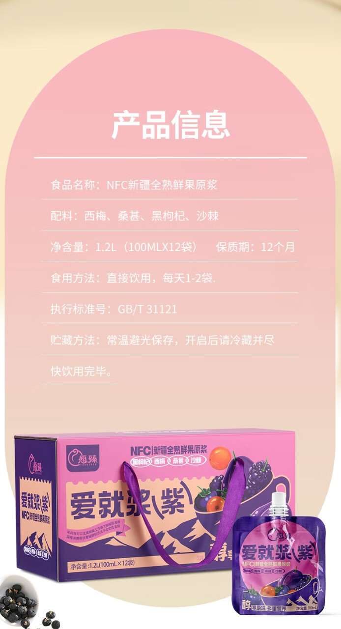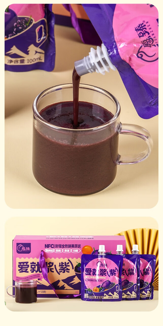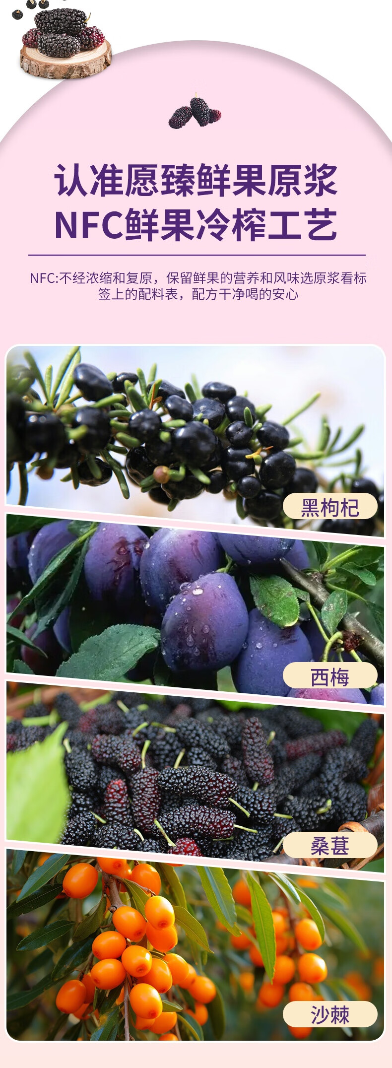 愿臻·爱就浆紫·NFC混合原浆 (沙棘、西梅、桑葚、黑枸杞)100ml×12