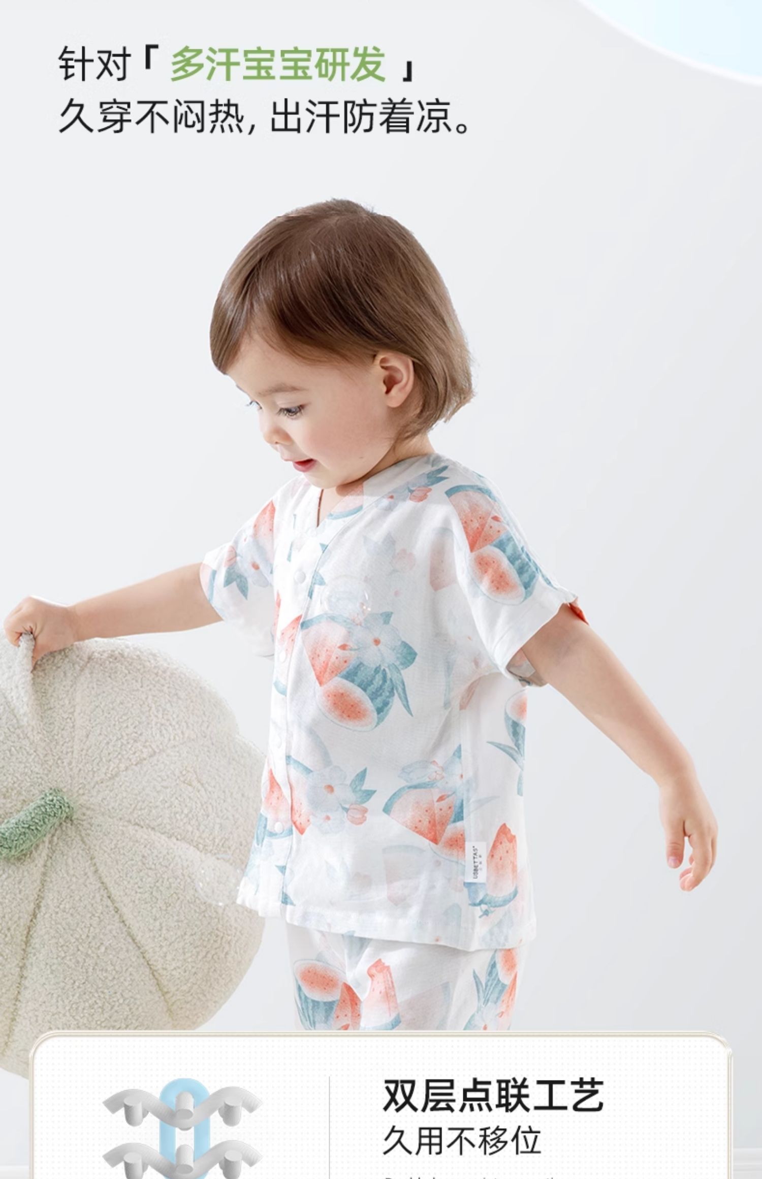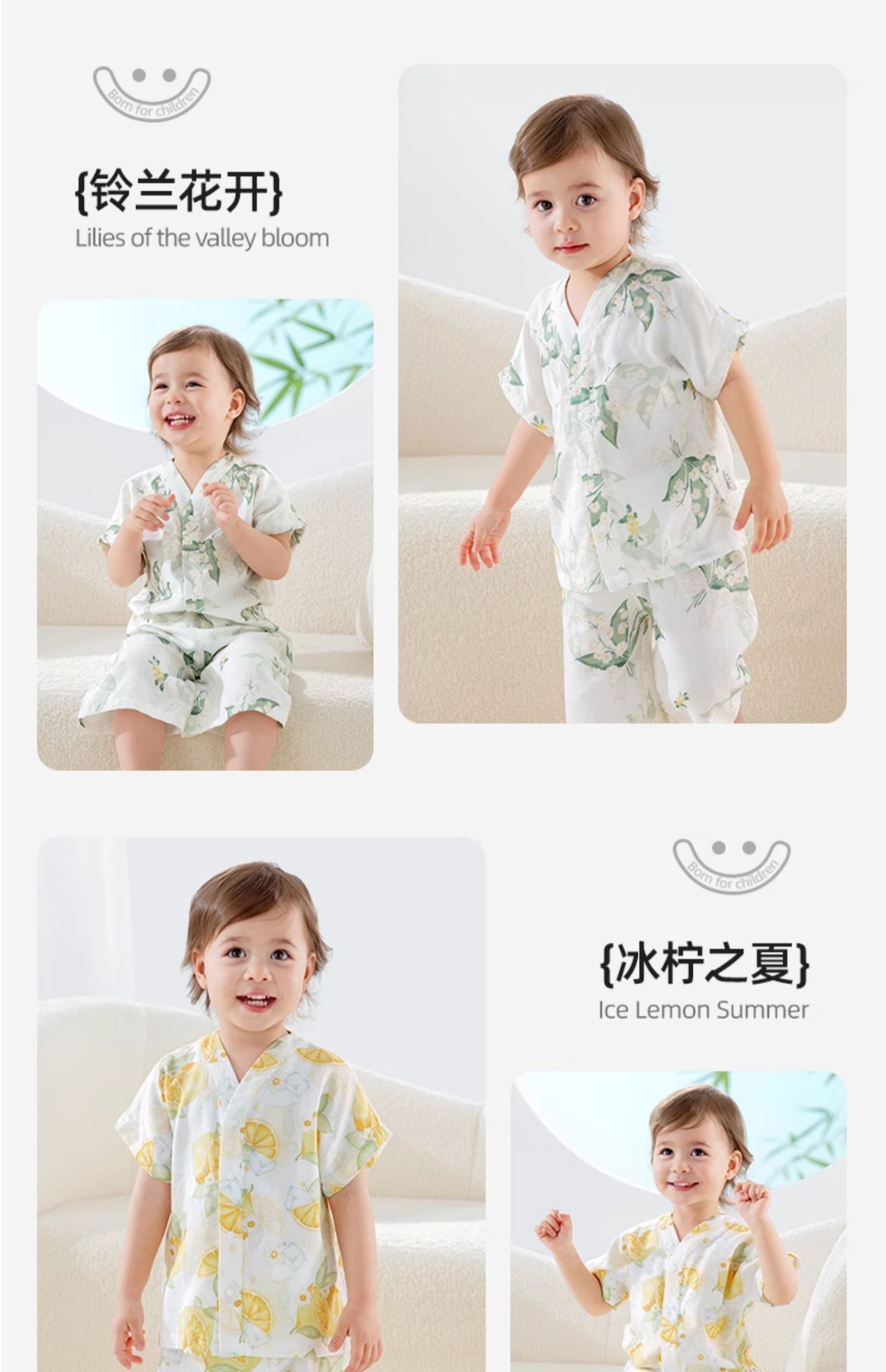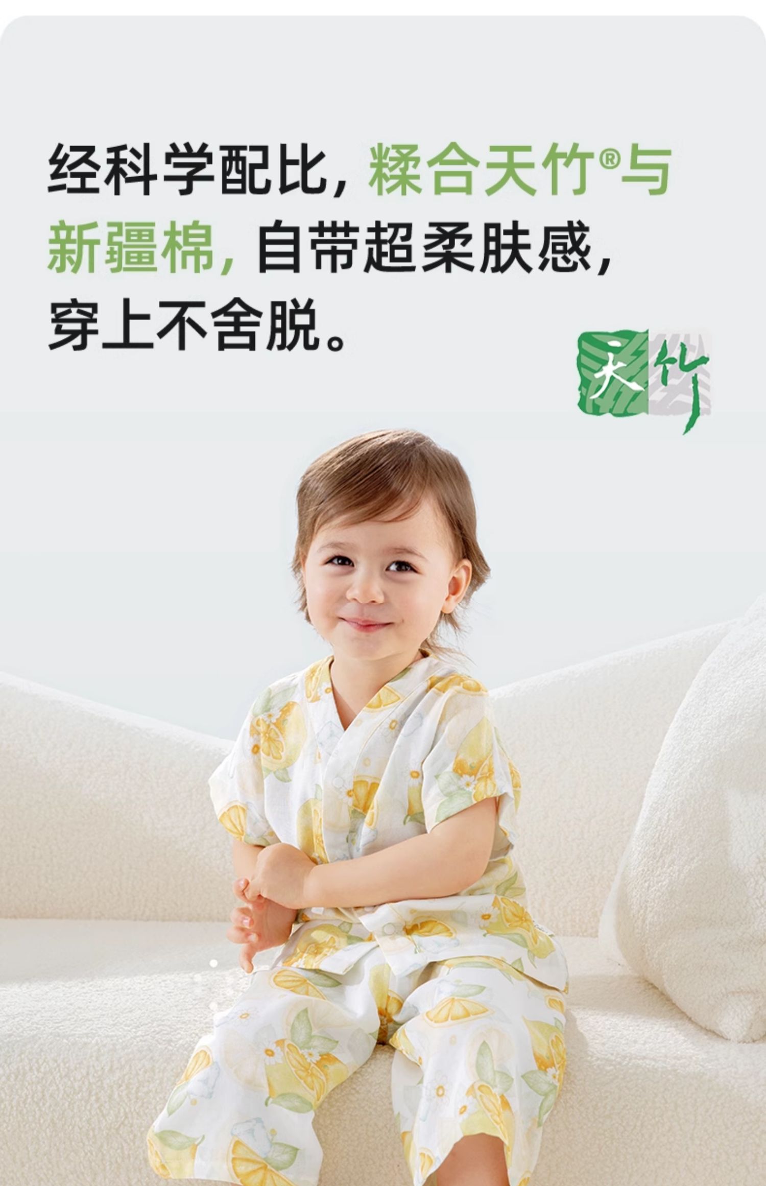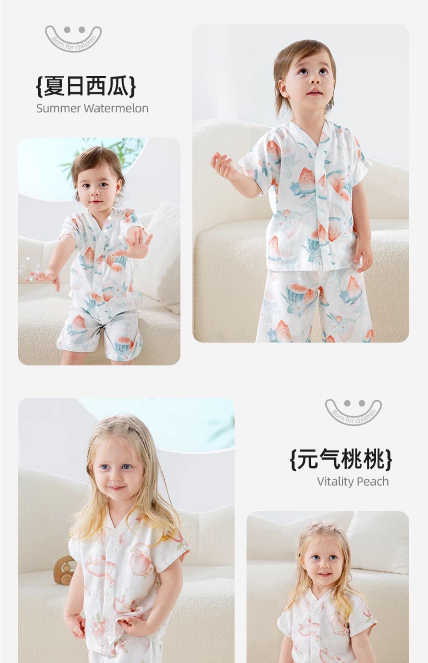 【孕味秒杀专属】贝肽斯儿童睡衣女童男童夏季薄款透气家居服套装宝宝亲子睡衣短袖