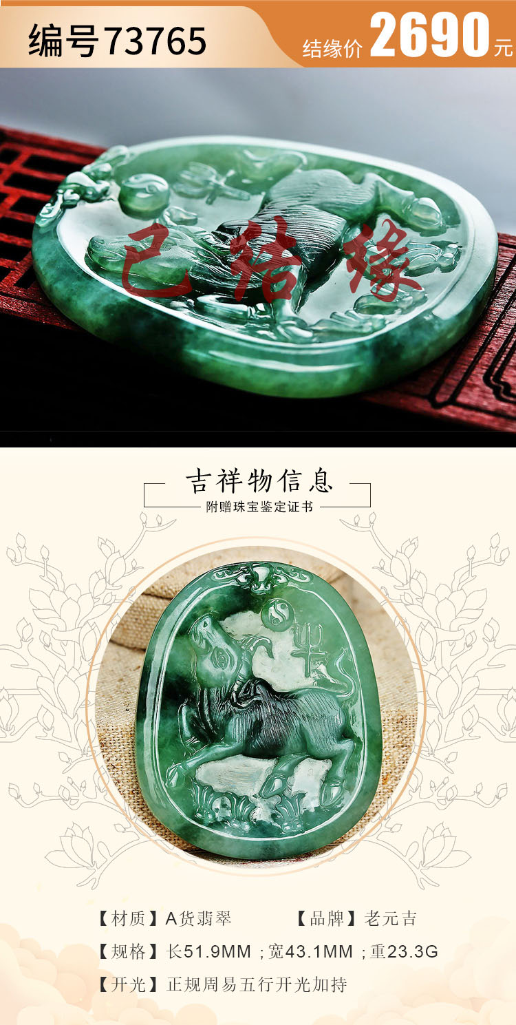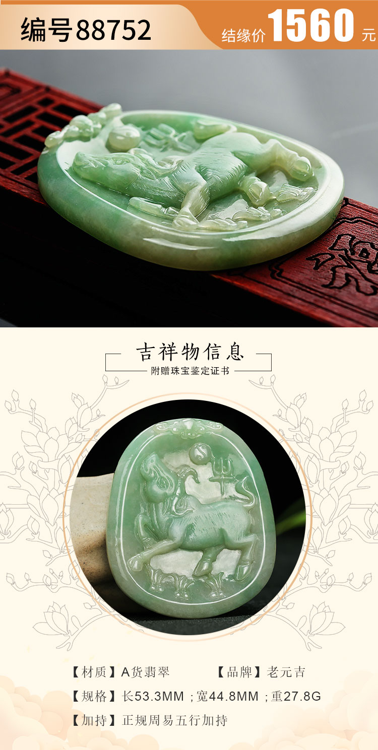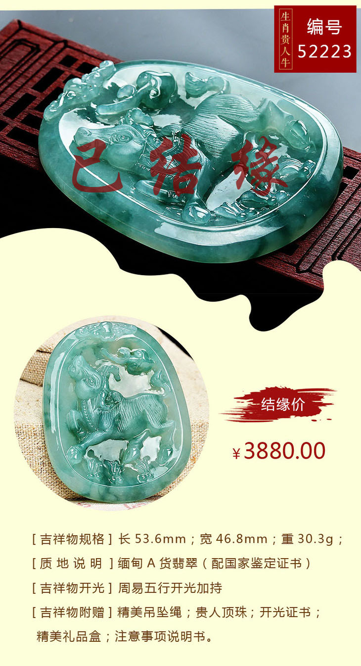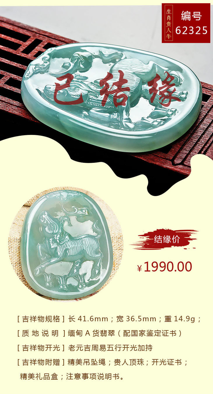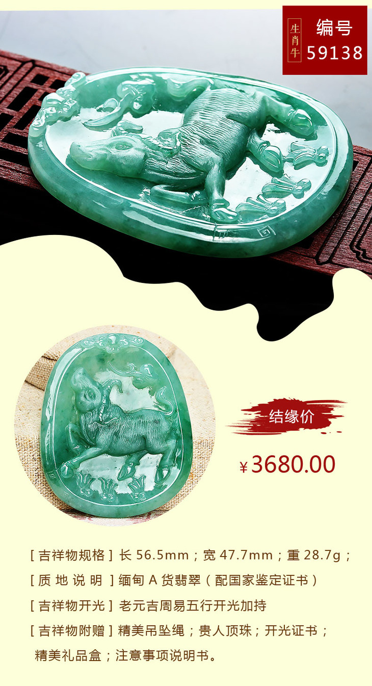 翡翠款【生肖贵人牛系列】 玉石吊坠