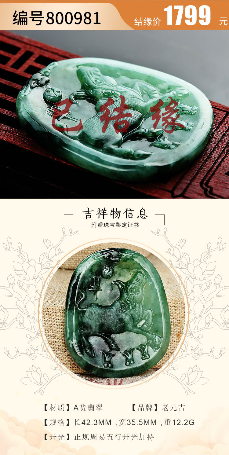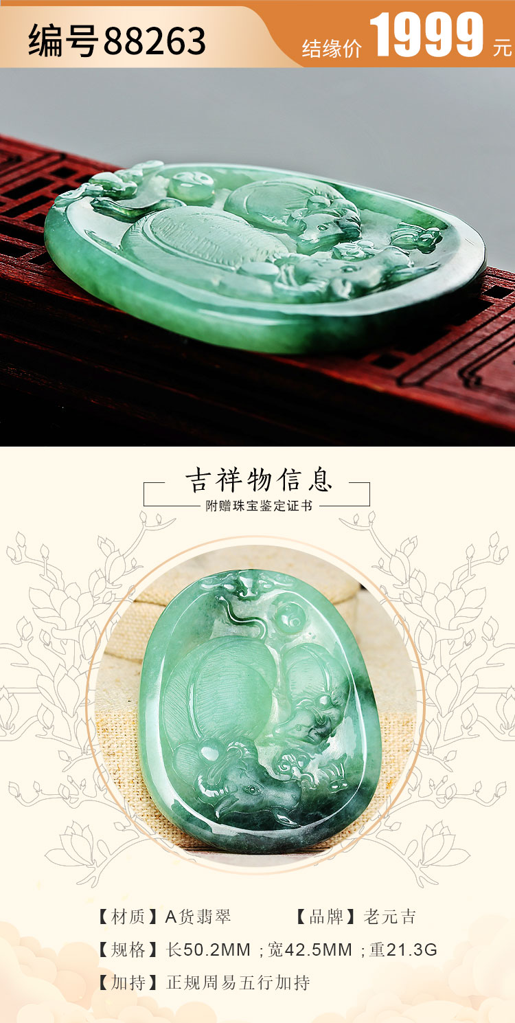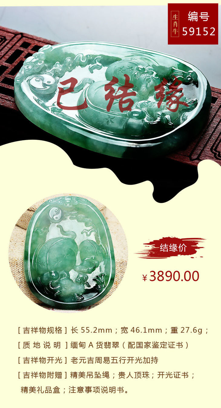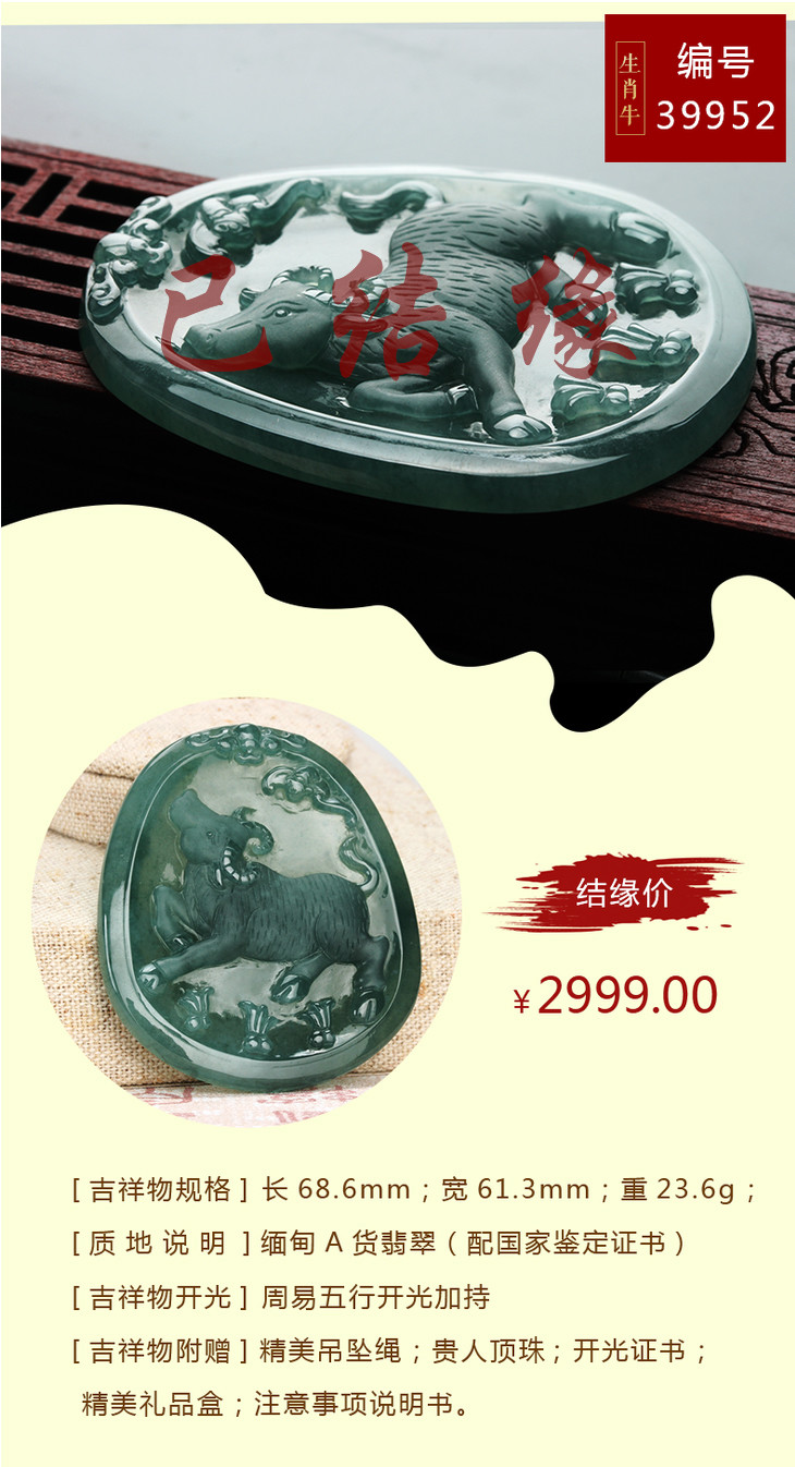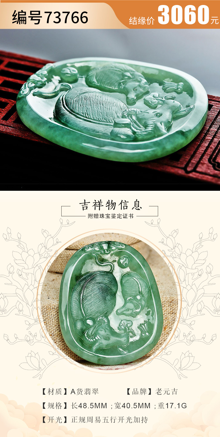 翡翠款【生肖贵人牛系列】 玉石吊坠