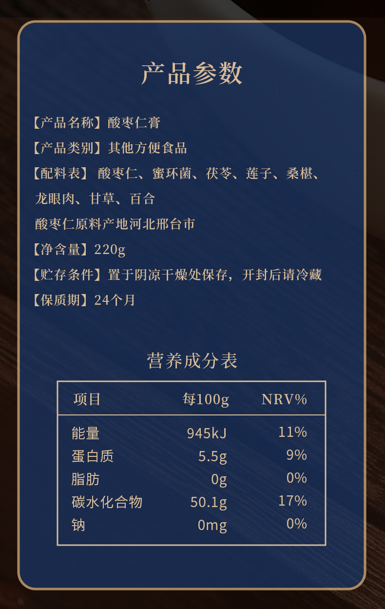 酸枣仁膏(蜜环菌、酸枣仁、茯苓、莲子、龙眼肉、桑葚、百合、甘草)1罐220g