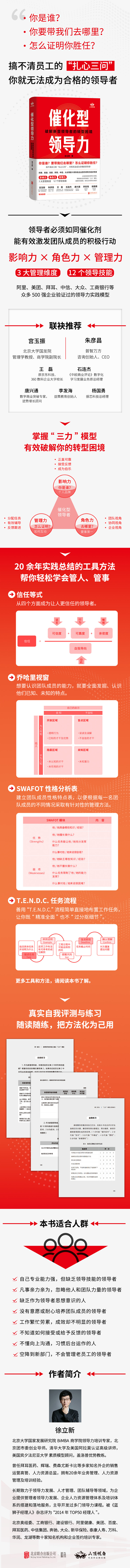 在企业中,新晋领导者容易被琐事缠身,此时最需要一些简单易用、能快速解决实际问题的方法助力他们完成角色转换,使其快速在新角色中发挥最大价值。徐立新老师的《催化型领导力》提供的正是符合这些需求的内容,涵盖了“扎心三问”“三力”模型等经典工具,并附带大量真实的转型案例,切实解决了新晋领导者实际转换角色时的痛点,值得一读!