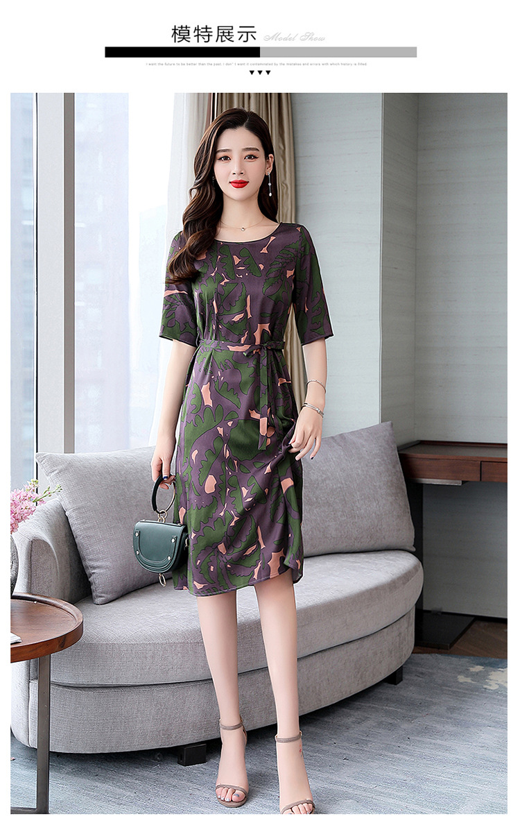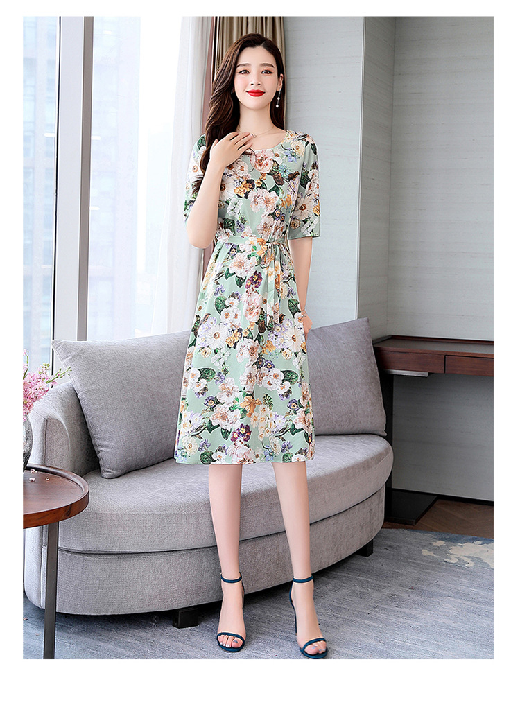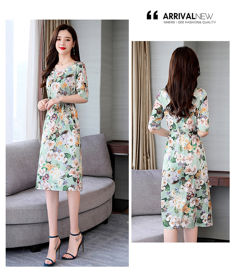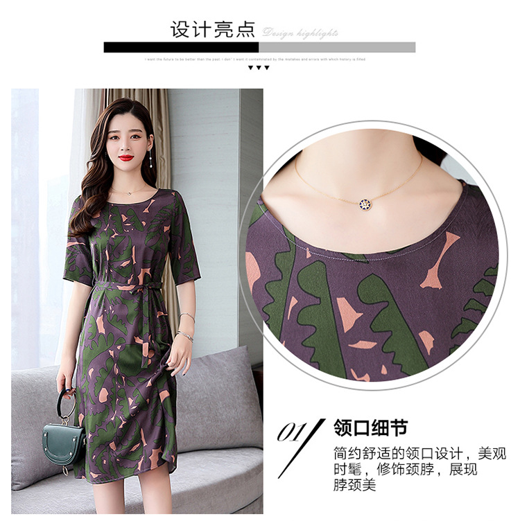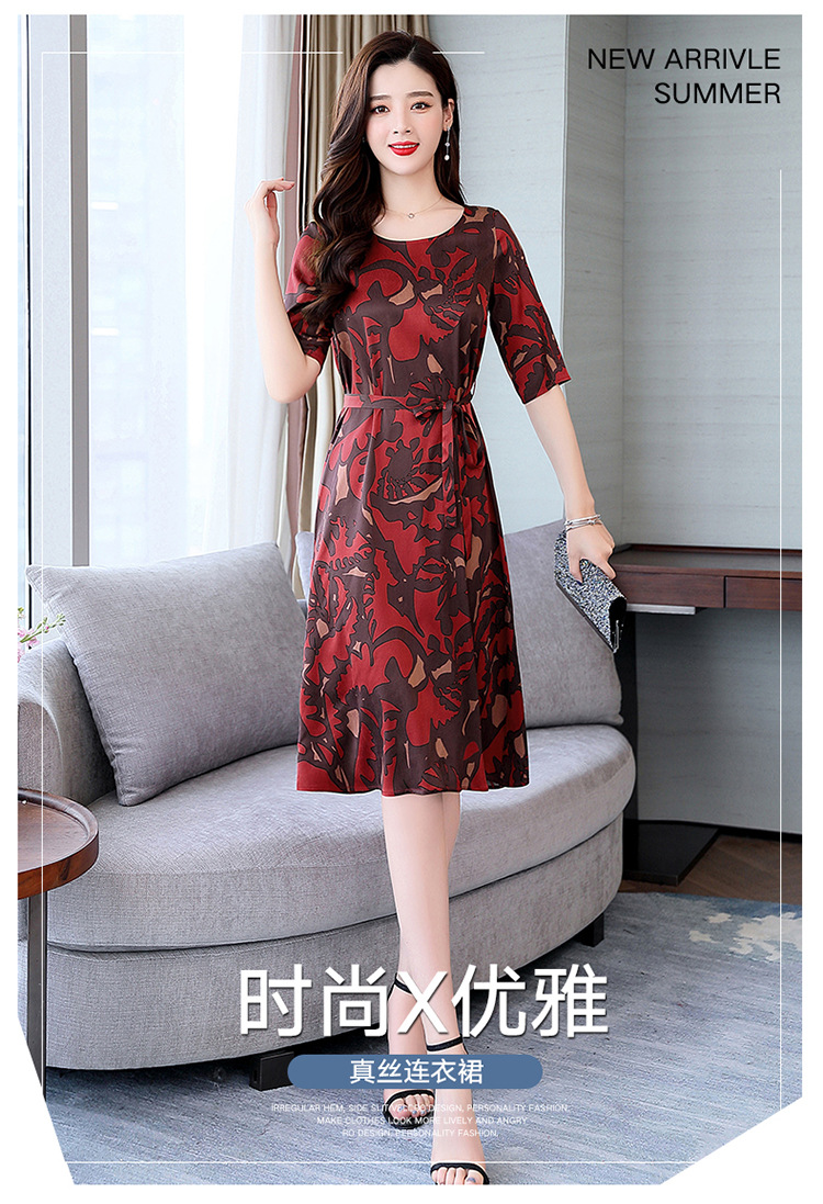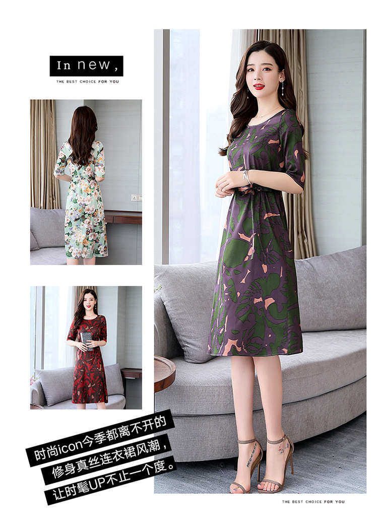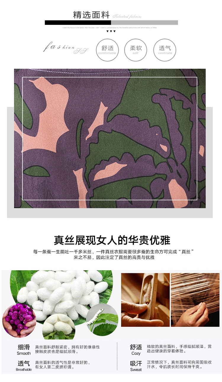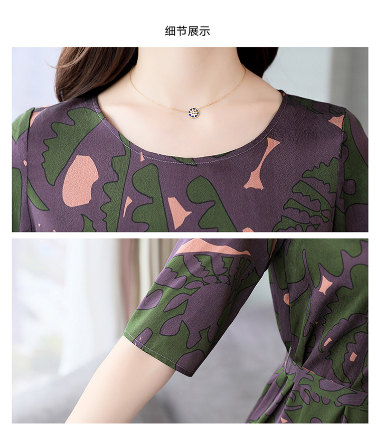 上海旗袍厂ASE-ASE2203优雅复古真丝圆领印花连衣裙