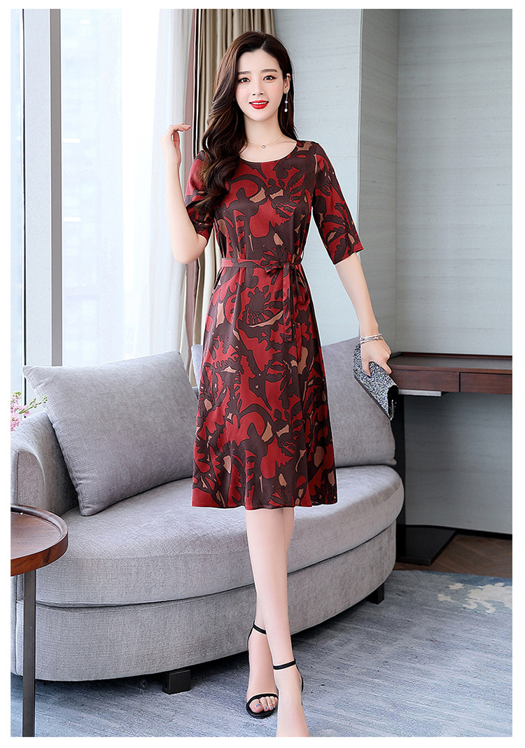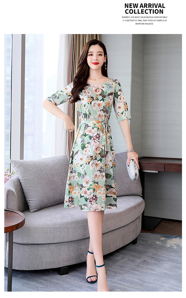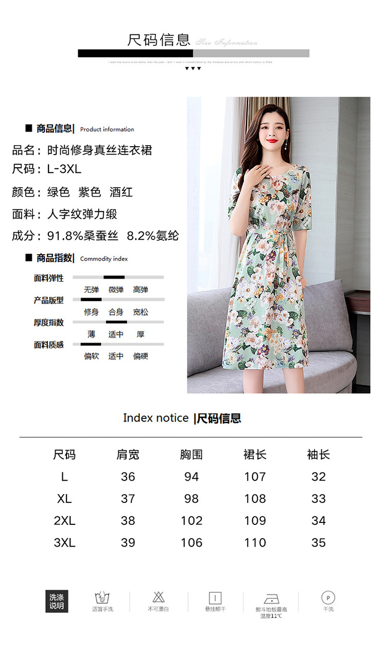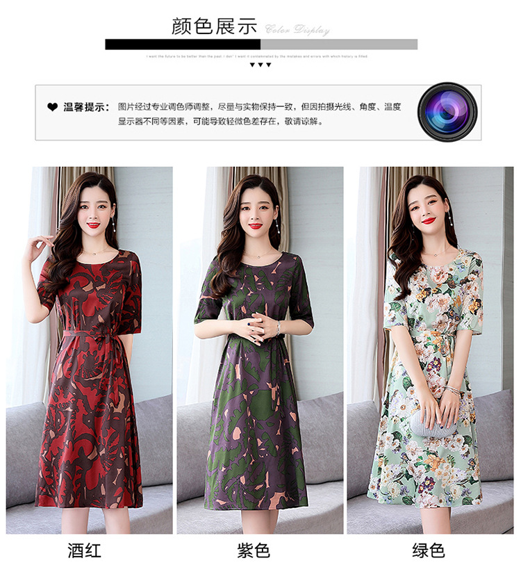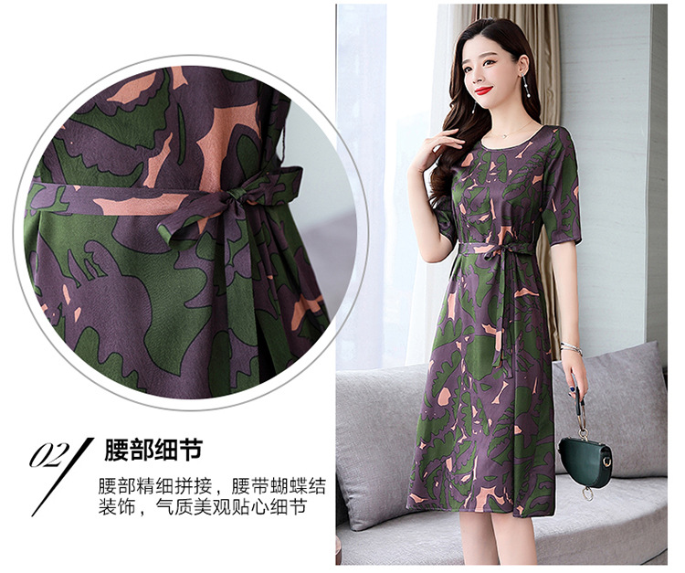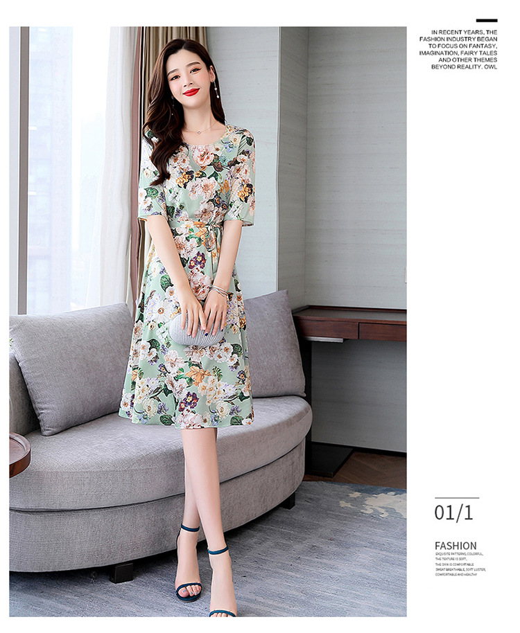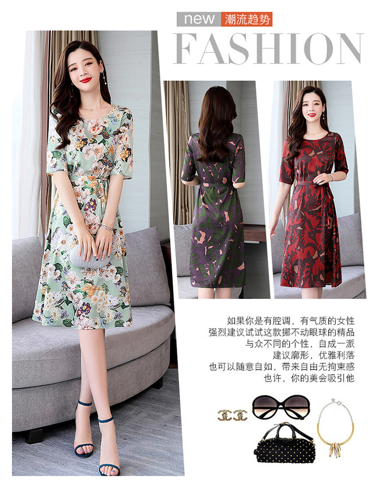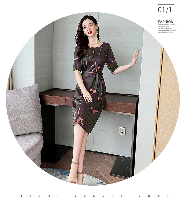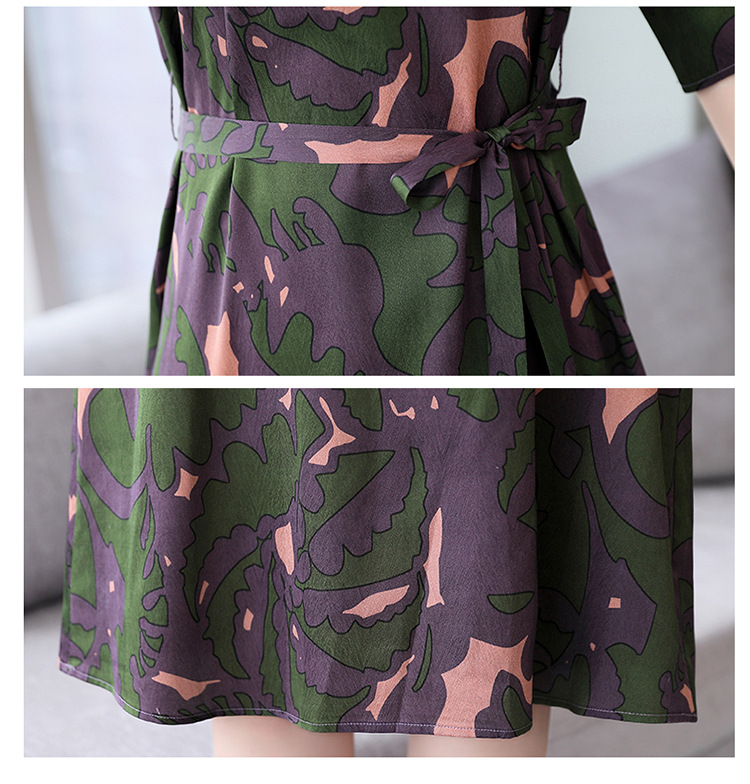 上海旗袍厂ASE-ASE2203优雅复古真丝圆领印花连衣裙