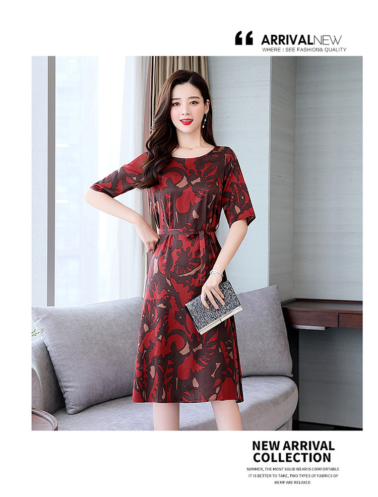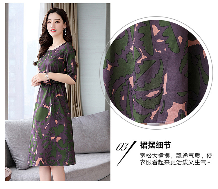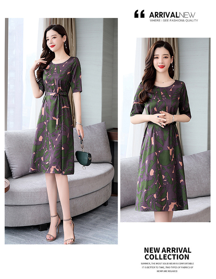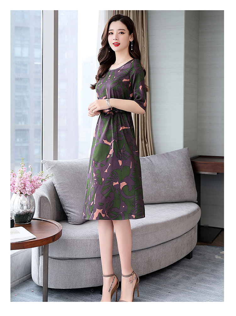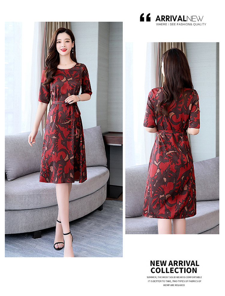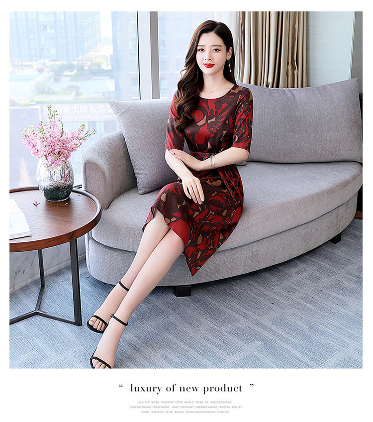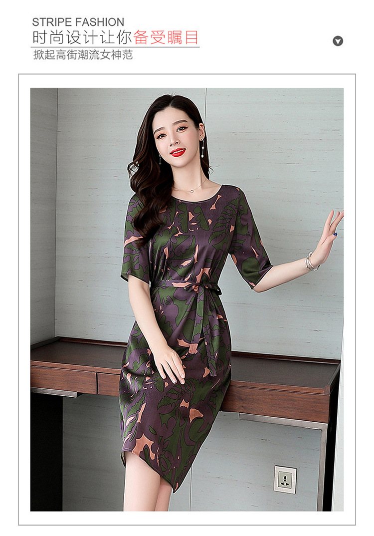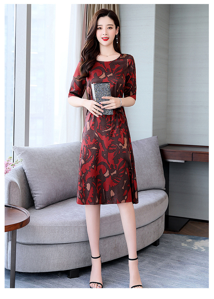 上海旗袍厂ASE-ASE2203优雅复古真丝圆领印花连衣裙