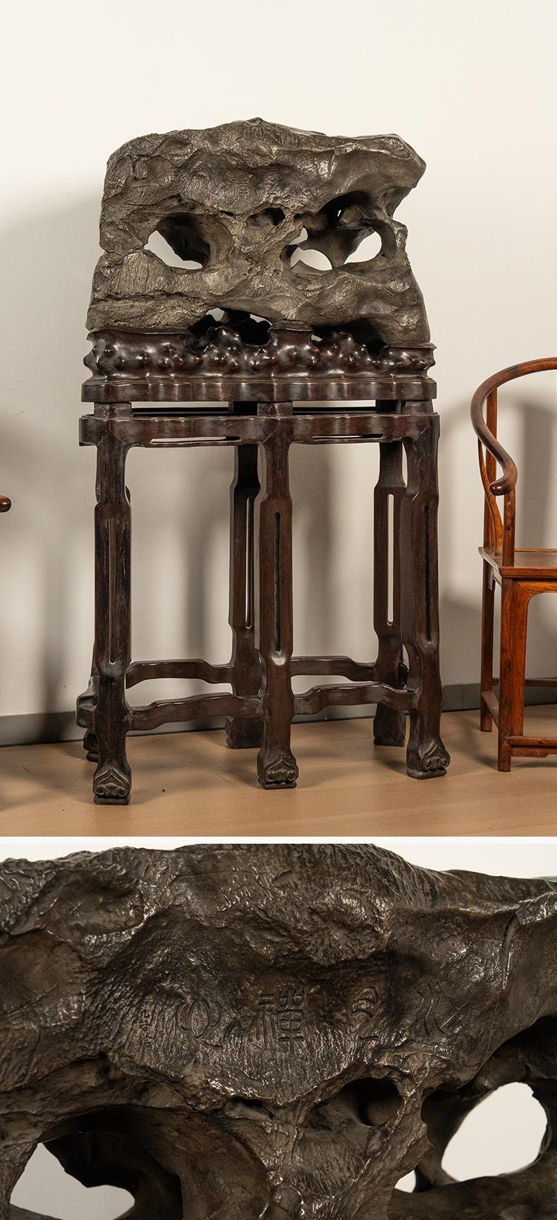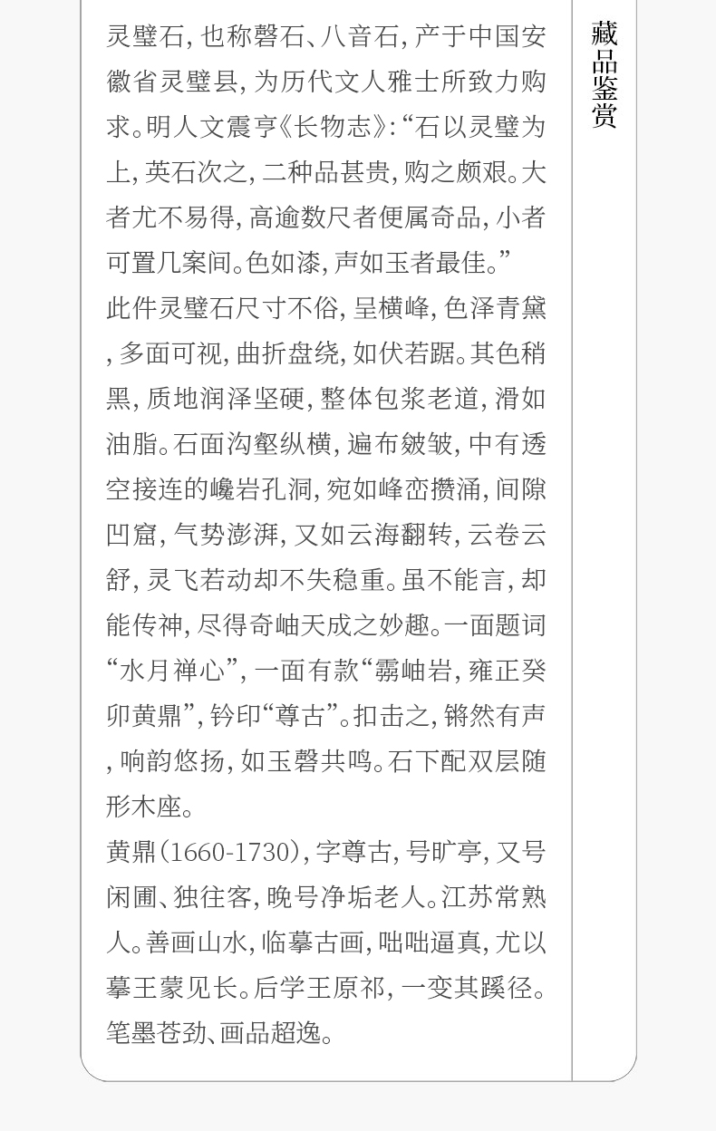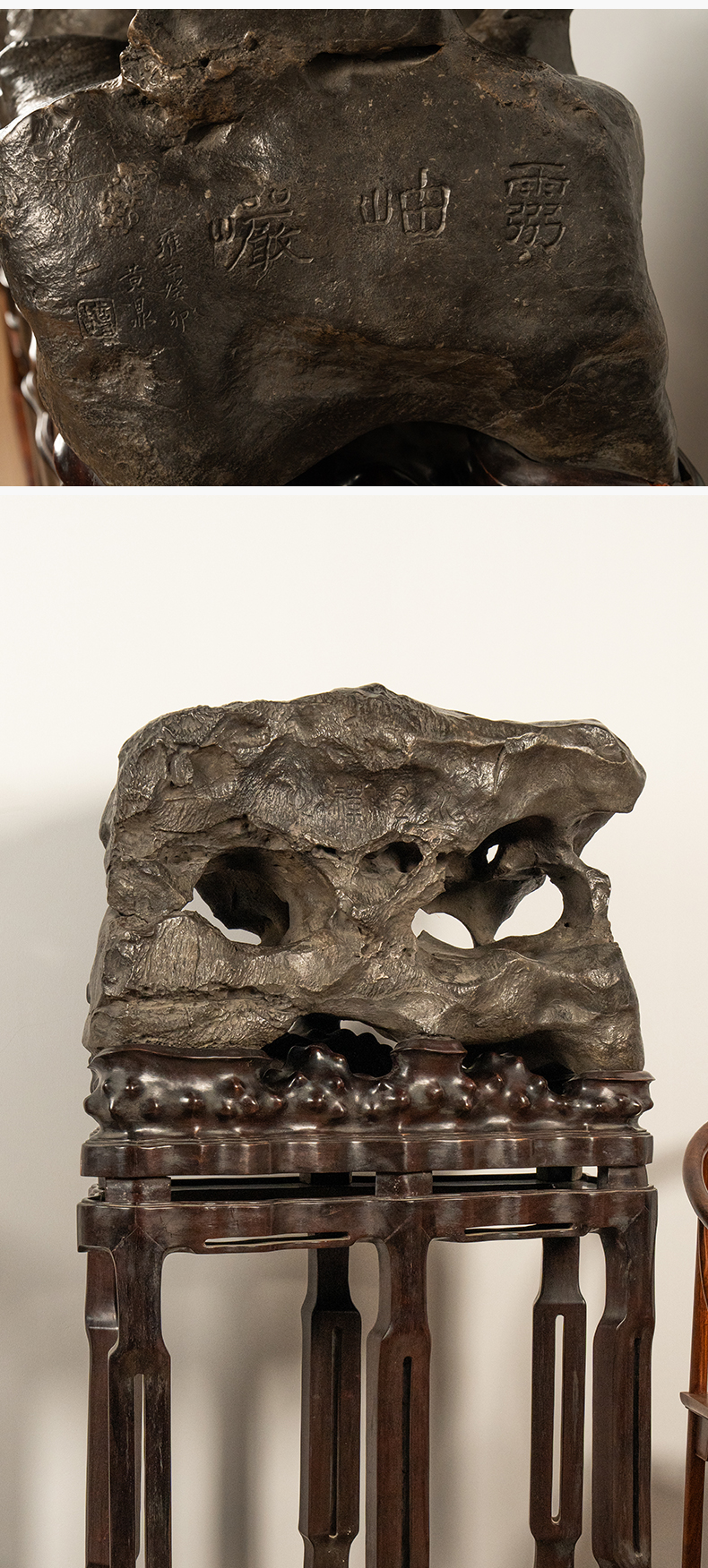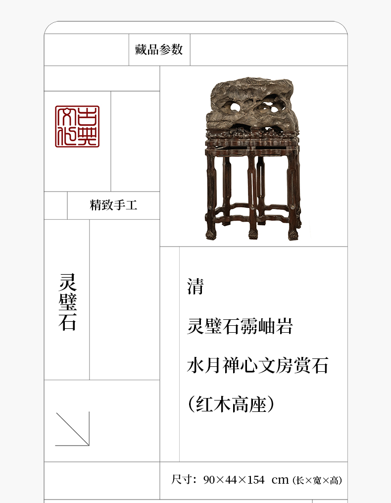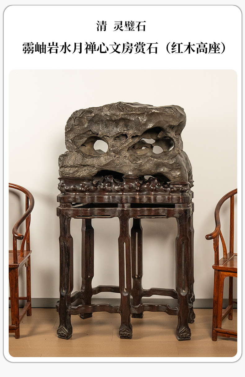清 灵璧石"岫岩水月禅心"文房赏石(红木高座)