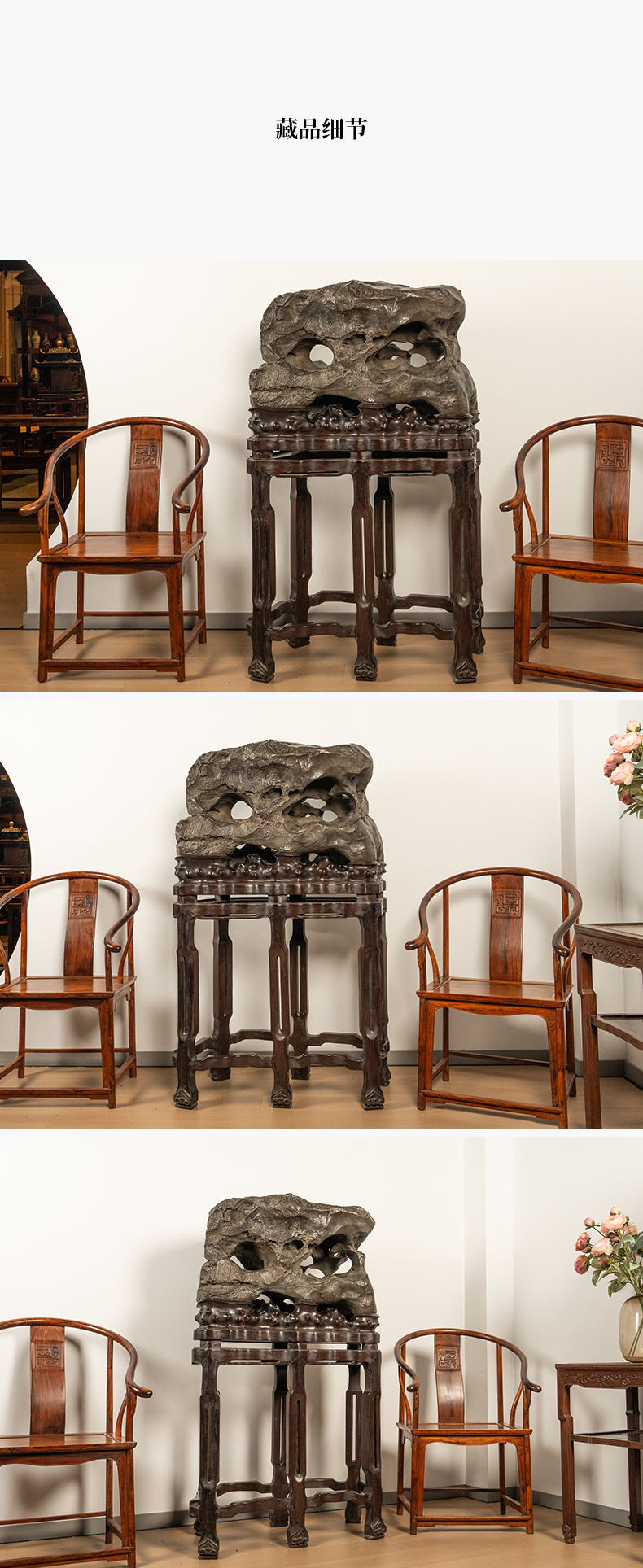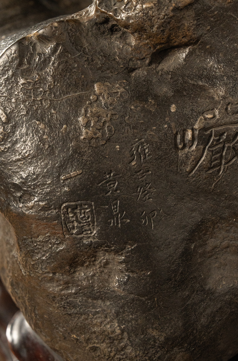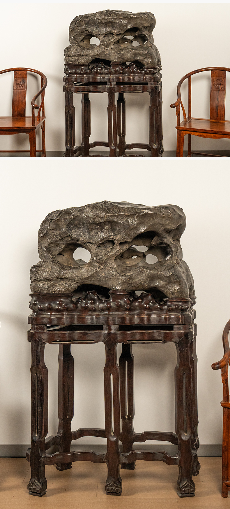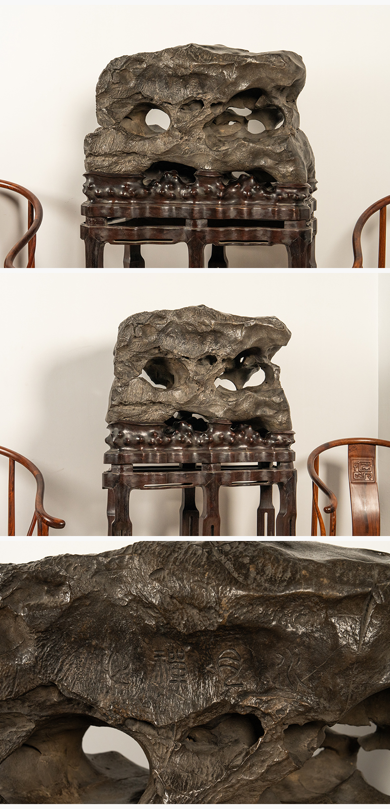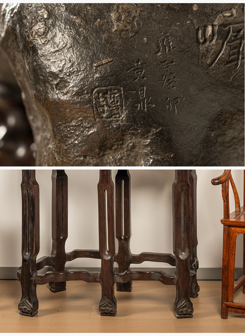 清 灵璧石"岫岩水月禅心"文房赏石(红木高座)