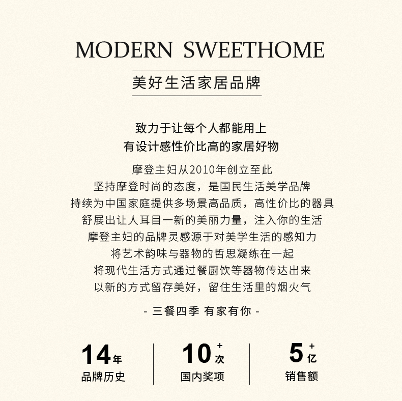 - 摩登主妇的创始人娜娜,是一个普通的80后妈妈,因为一个简单而执着的想法,要让“中国制造”的优质商品走进国内主妇们的生活,摩登主妇的品牌页由此而来。