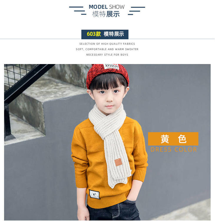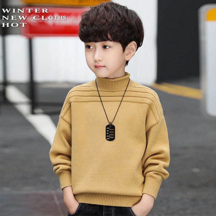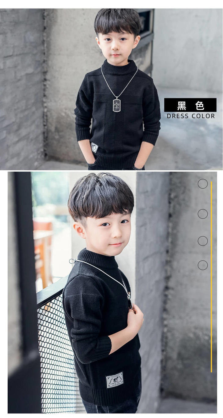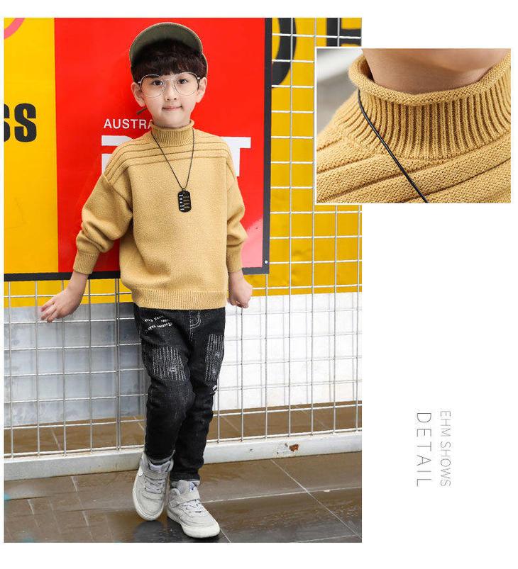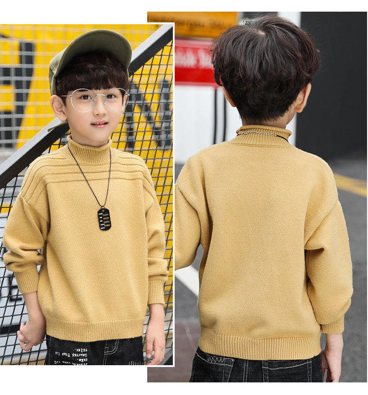 PDD-儿童毛衣秋冬针织衫4-14岁童装男童高领线衫套头中大童