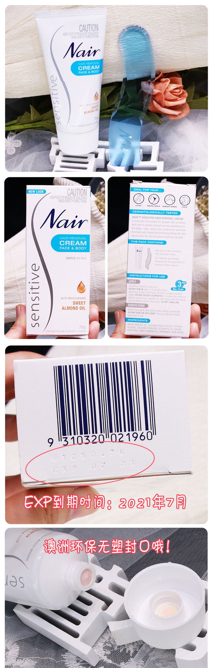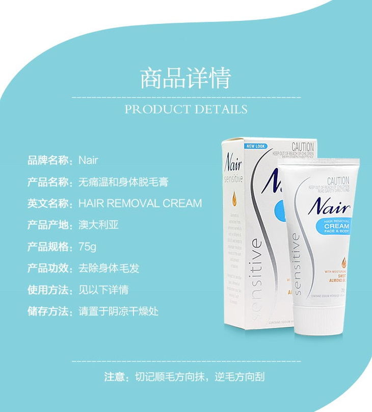 澳洲NAIR 脸部身体无痛脱毛膏-75g