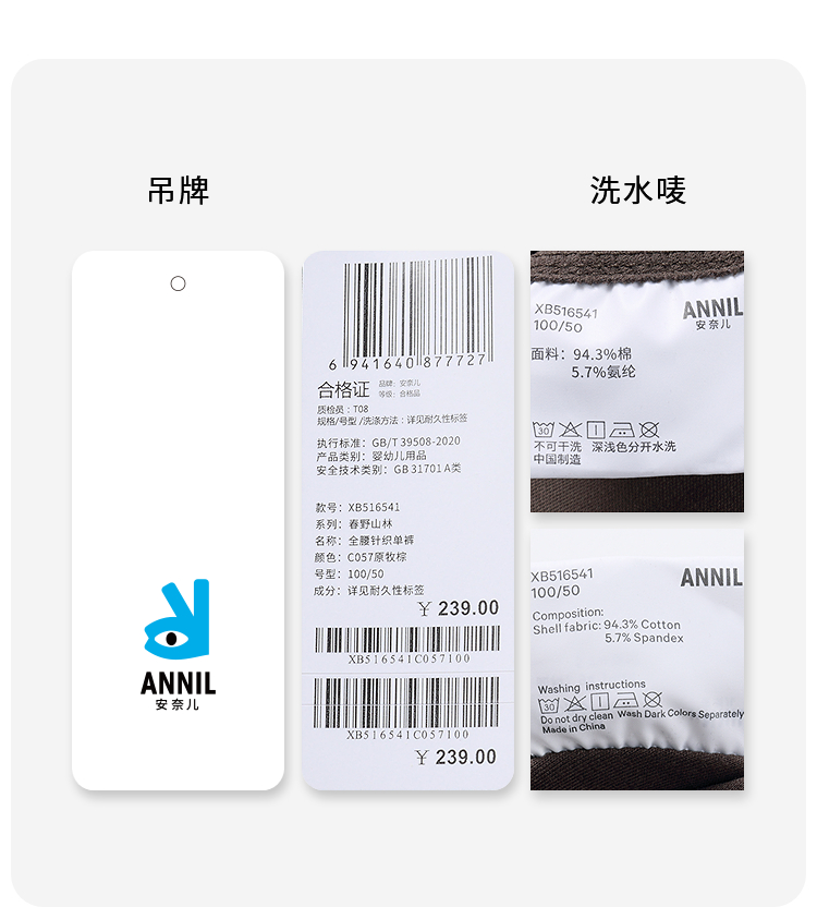 男童全腰针织单裤春季新款安奈儿童装实体店同款XB516541