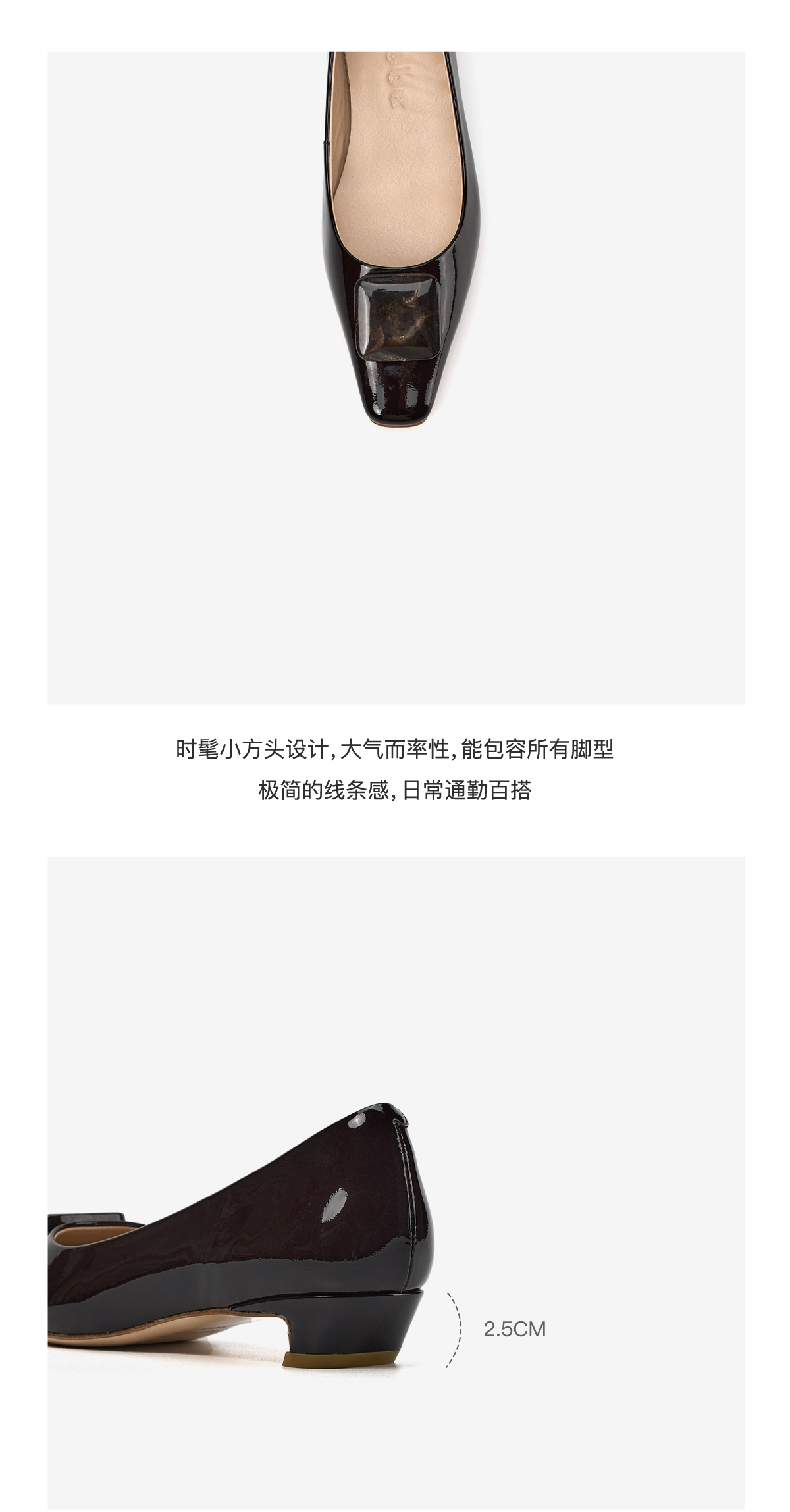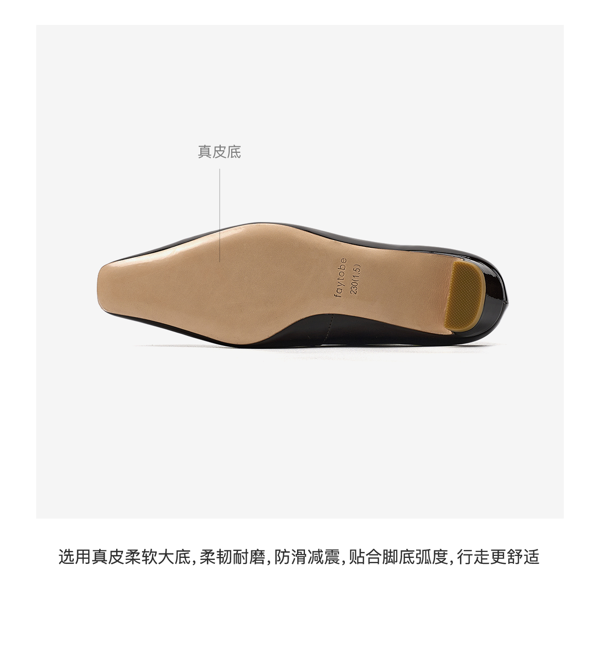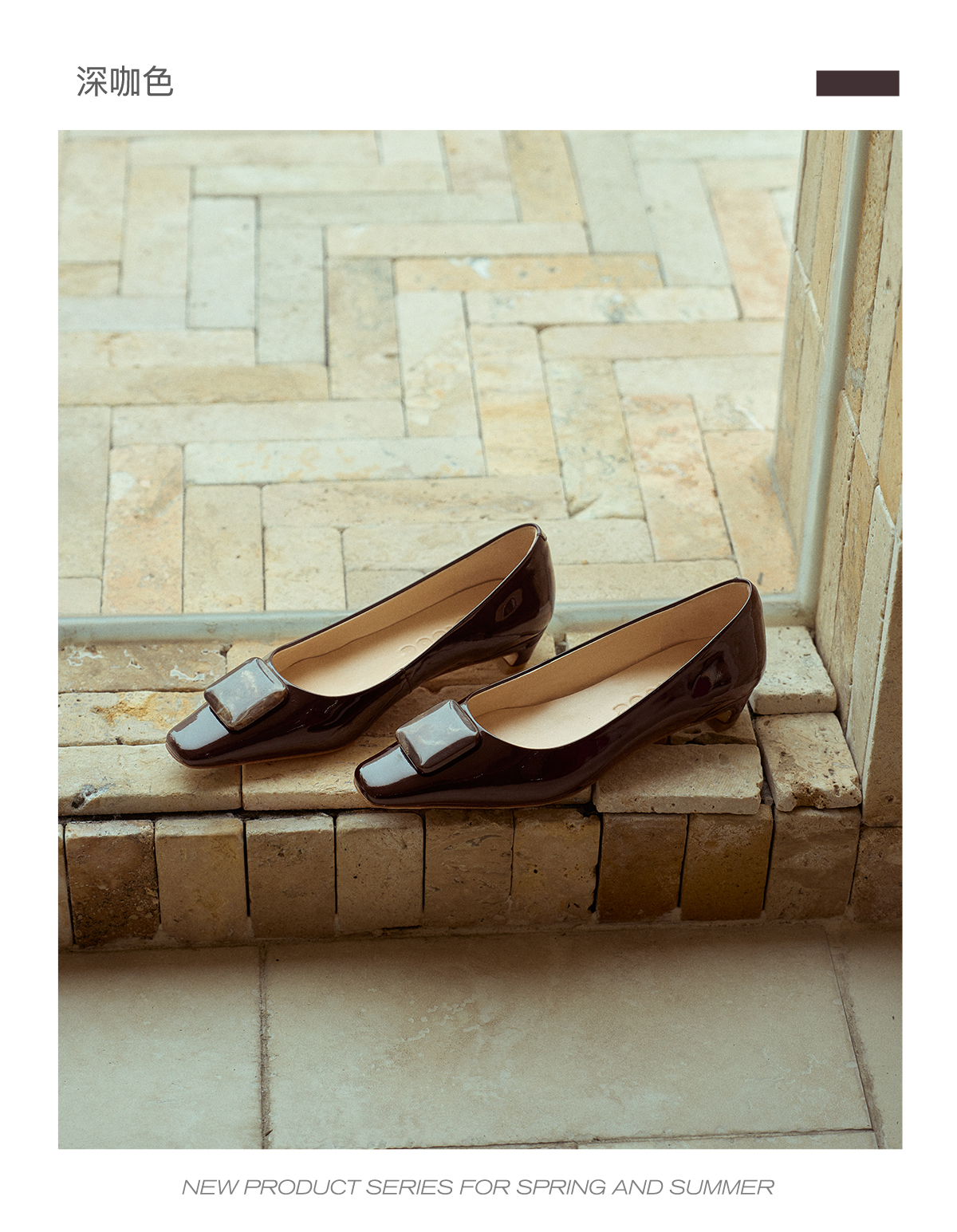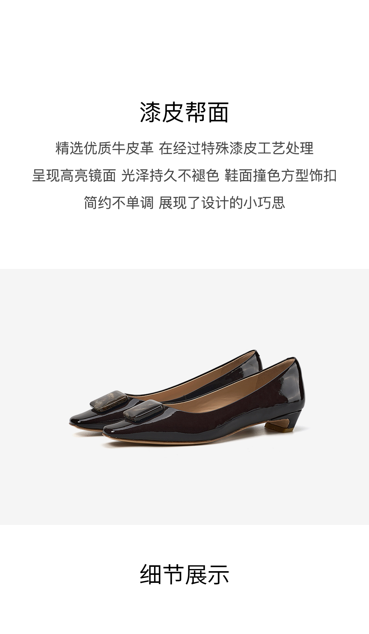 FAYTOBE 方糖漆皮单鞋方头方扣漆皮低跟鞋粗跟浅口单鞋