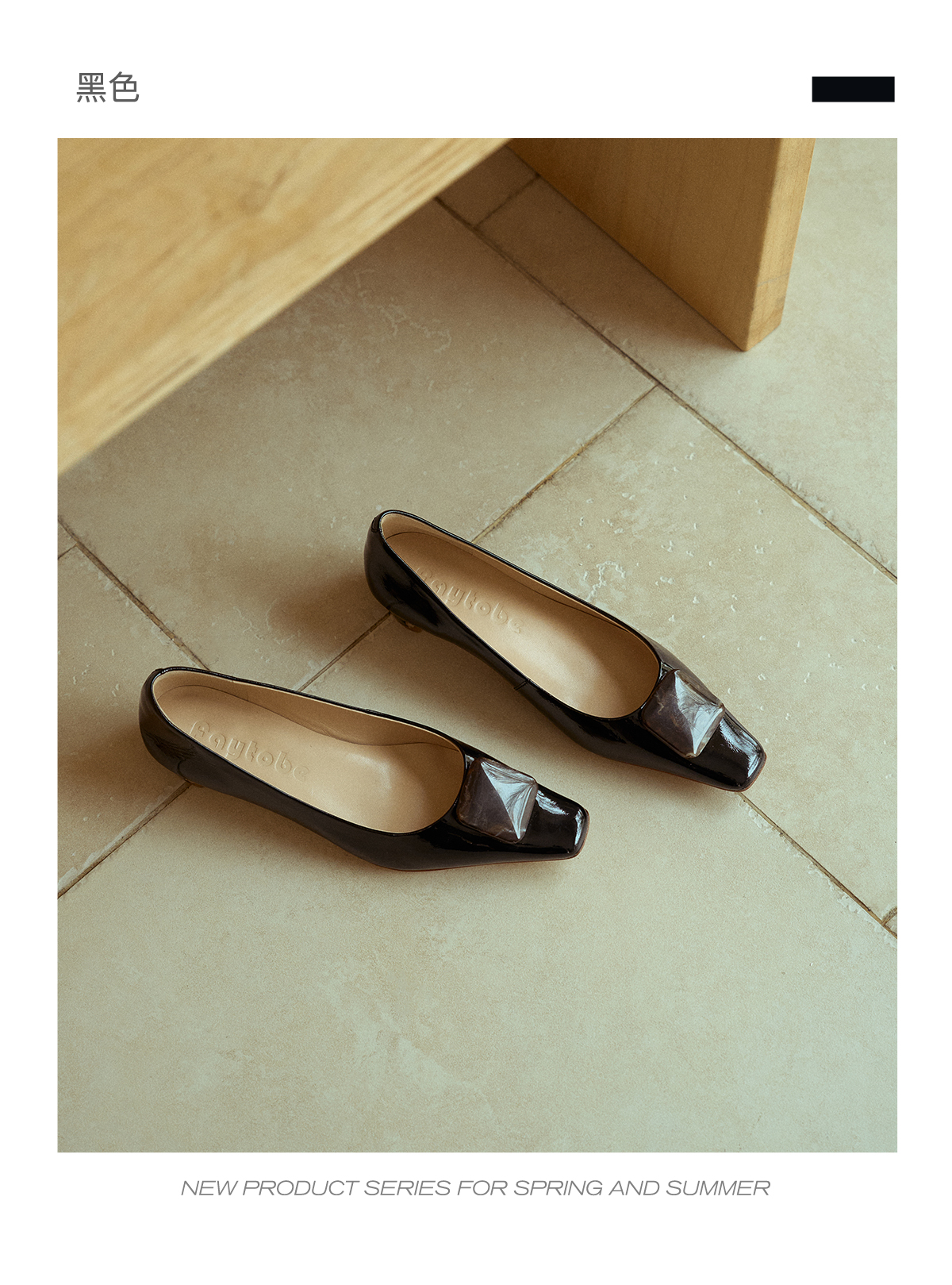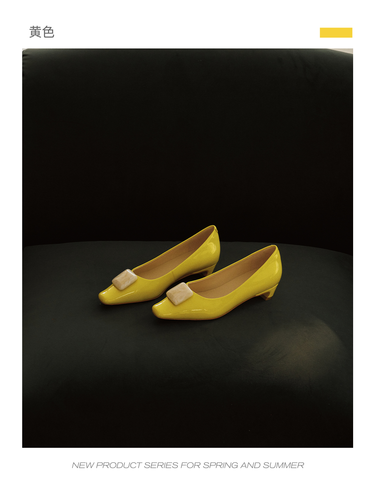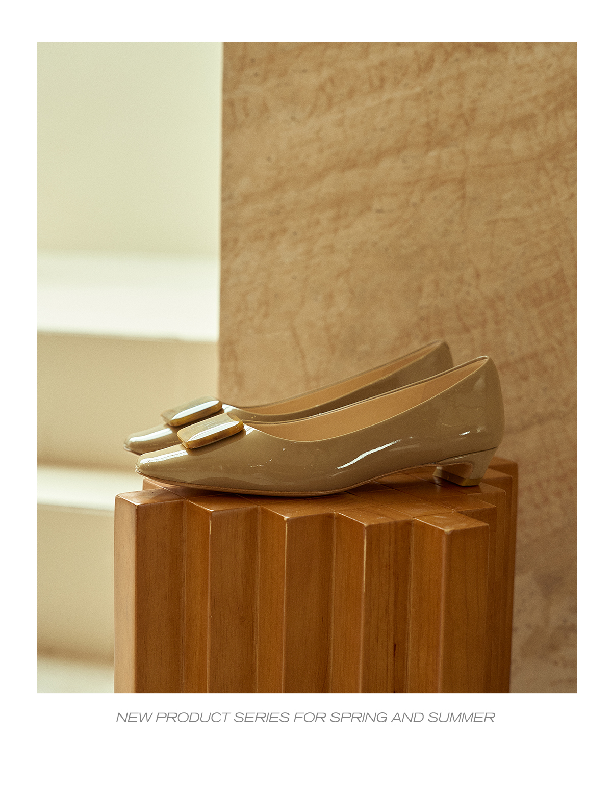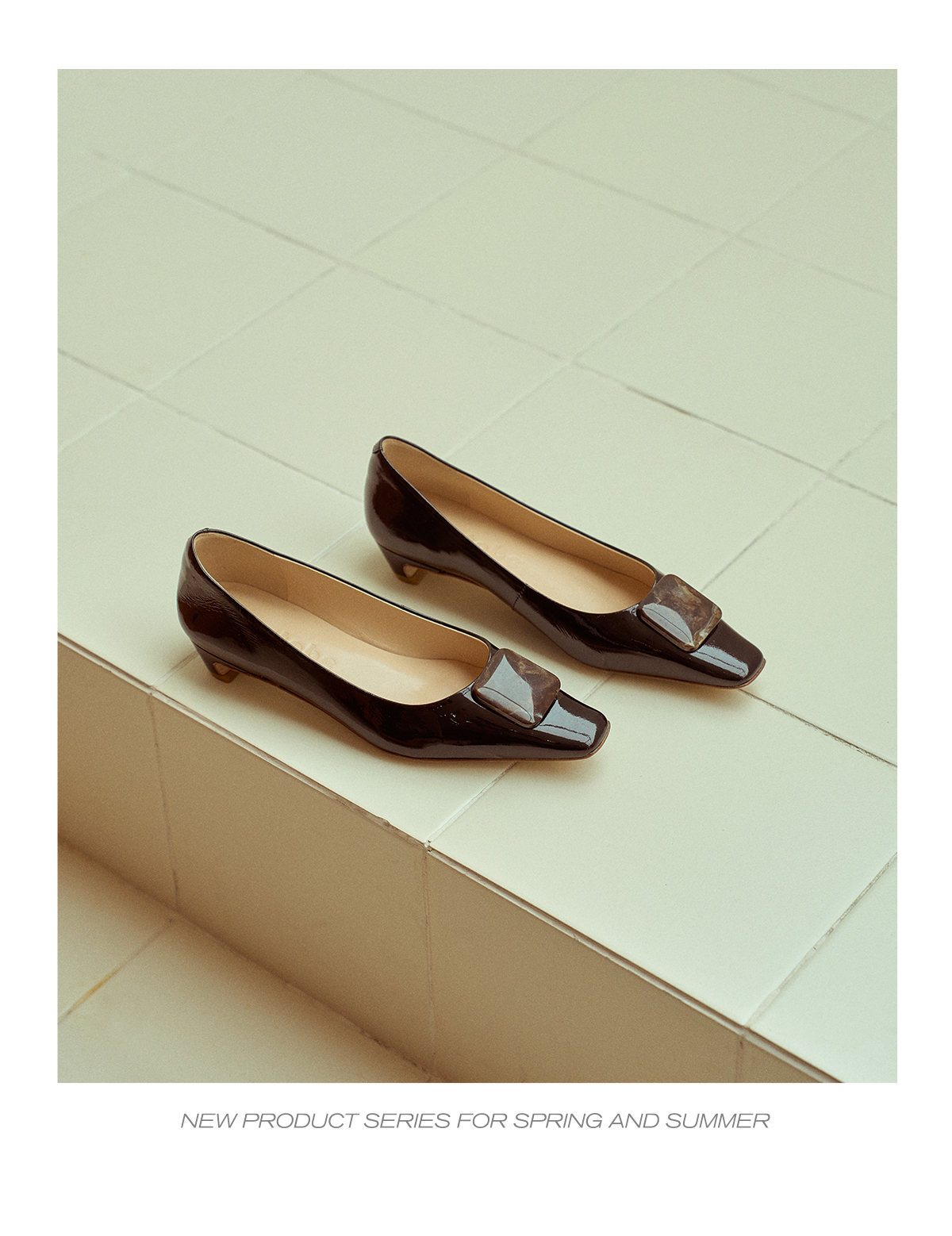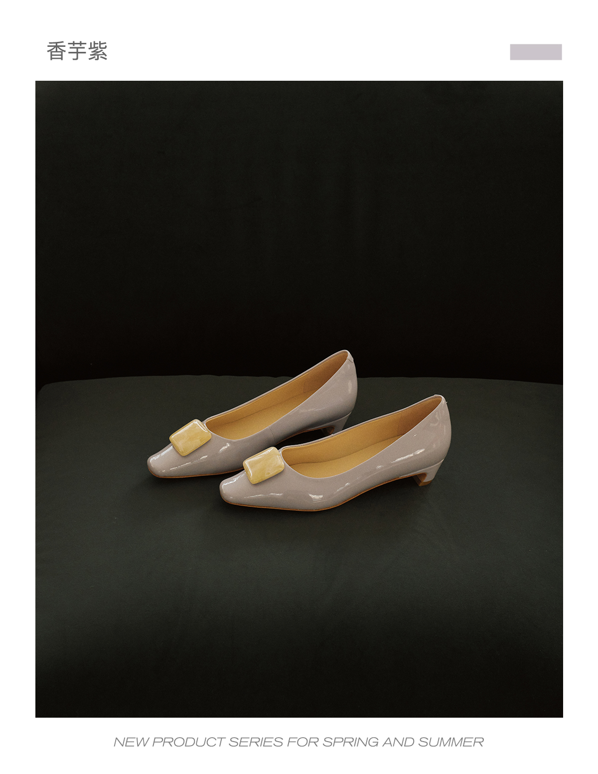 FAYTOBE 方糖漆皮单鞋方头方扣漆皮低跟鞋粗跟浅口单鞋