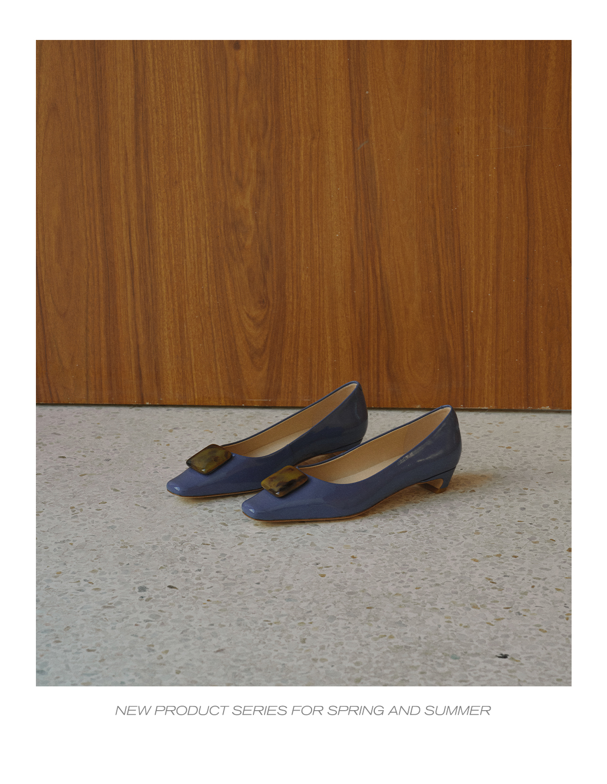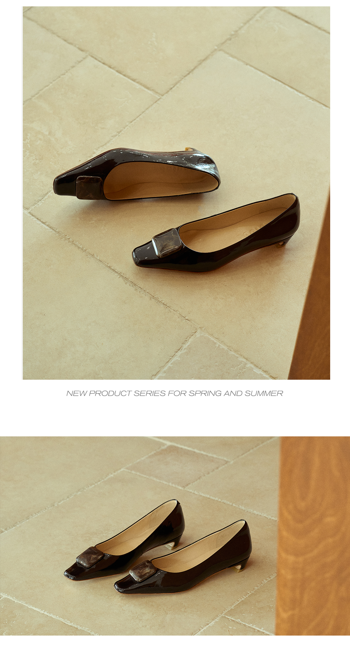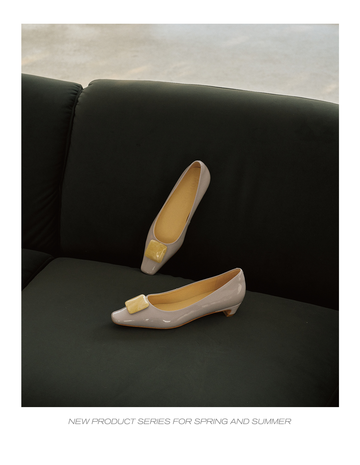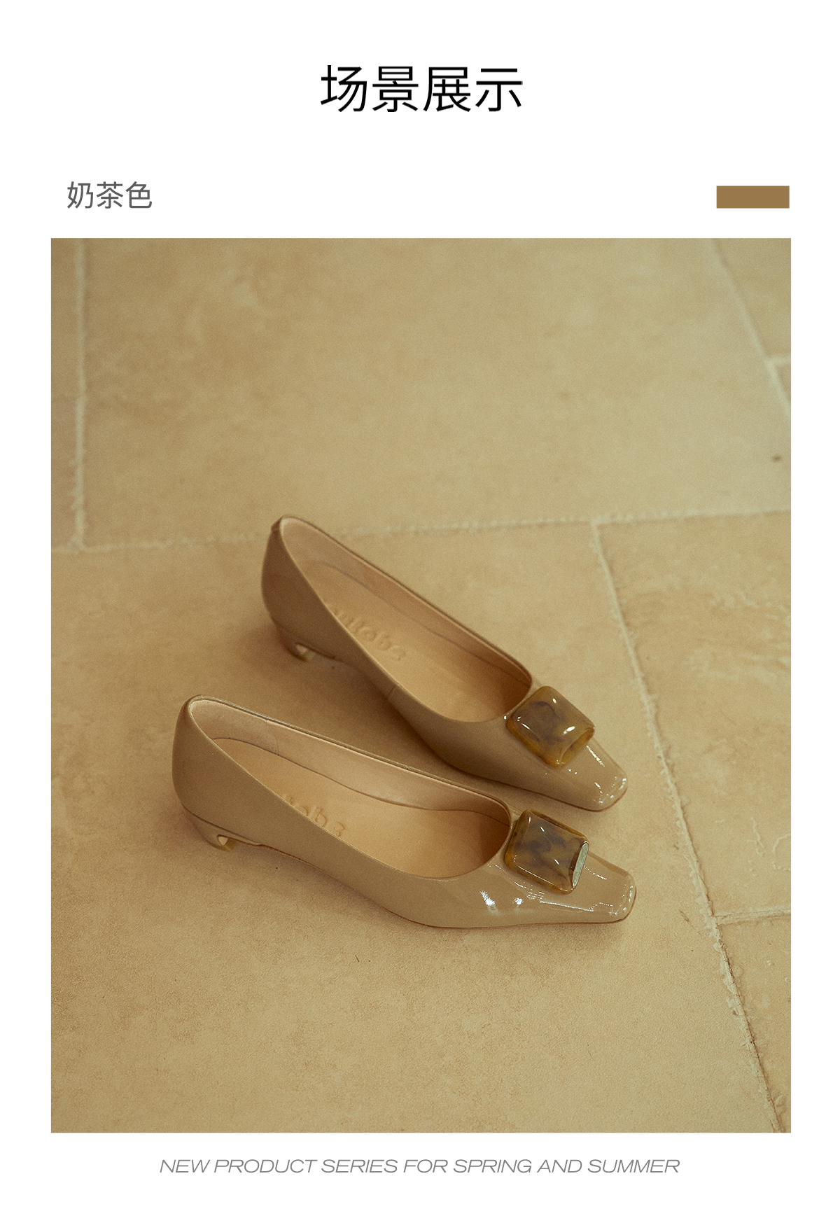 FAYTOBE 方糖漆皮单鞋方头方扣漆皮低跟鞋粗跟浅口单鞋