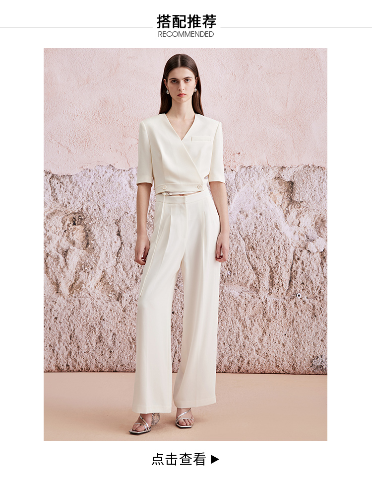 VIMAGE纬漫纪春季新款气质通勤百搭显瘦高腰直筒裤子V2105711