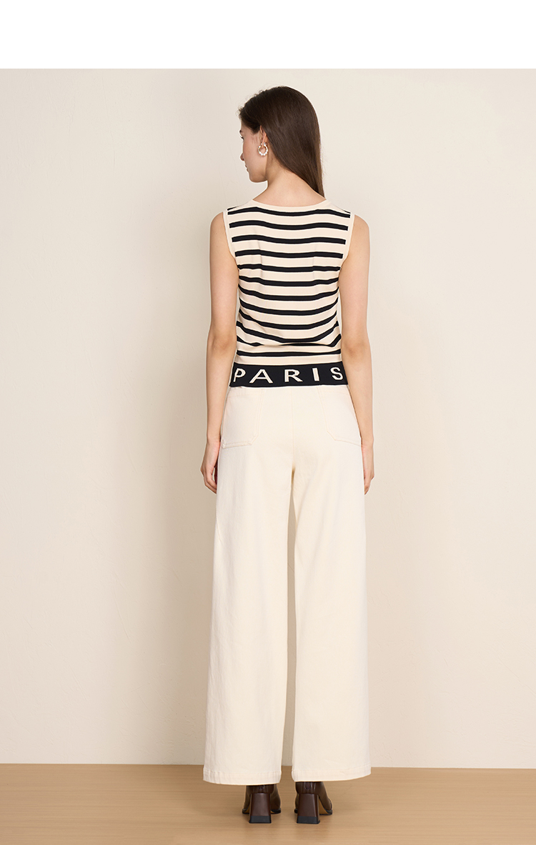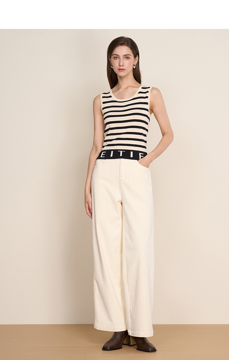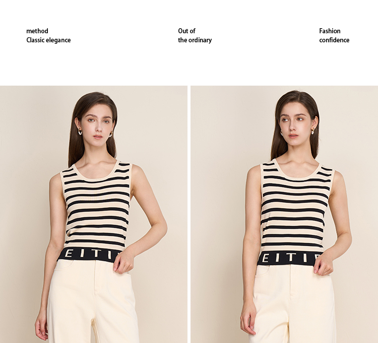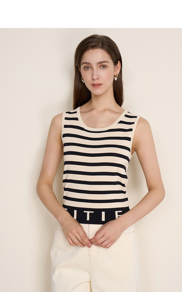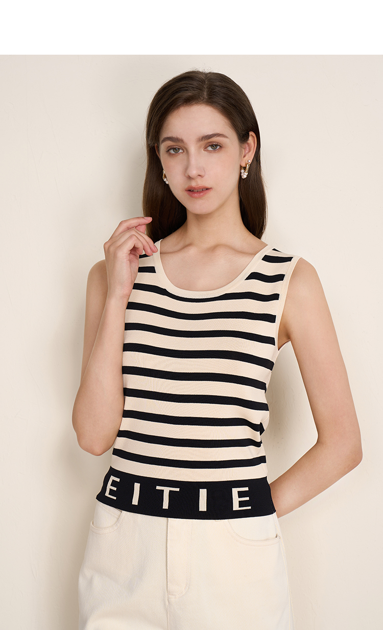 EITIE爱特爱夏新款经典黑白条纹时尚休闲显瘦百搭针织背心7701410